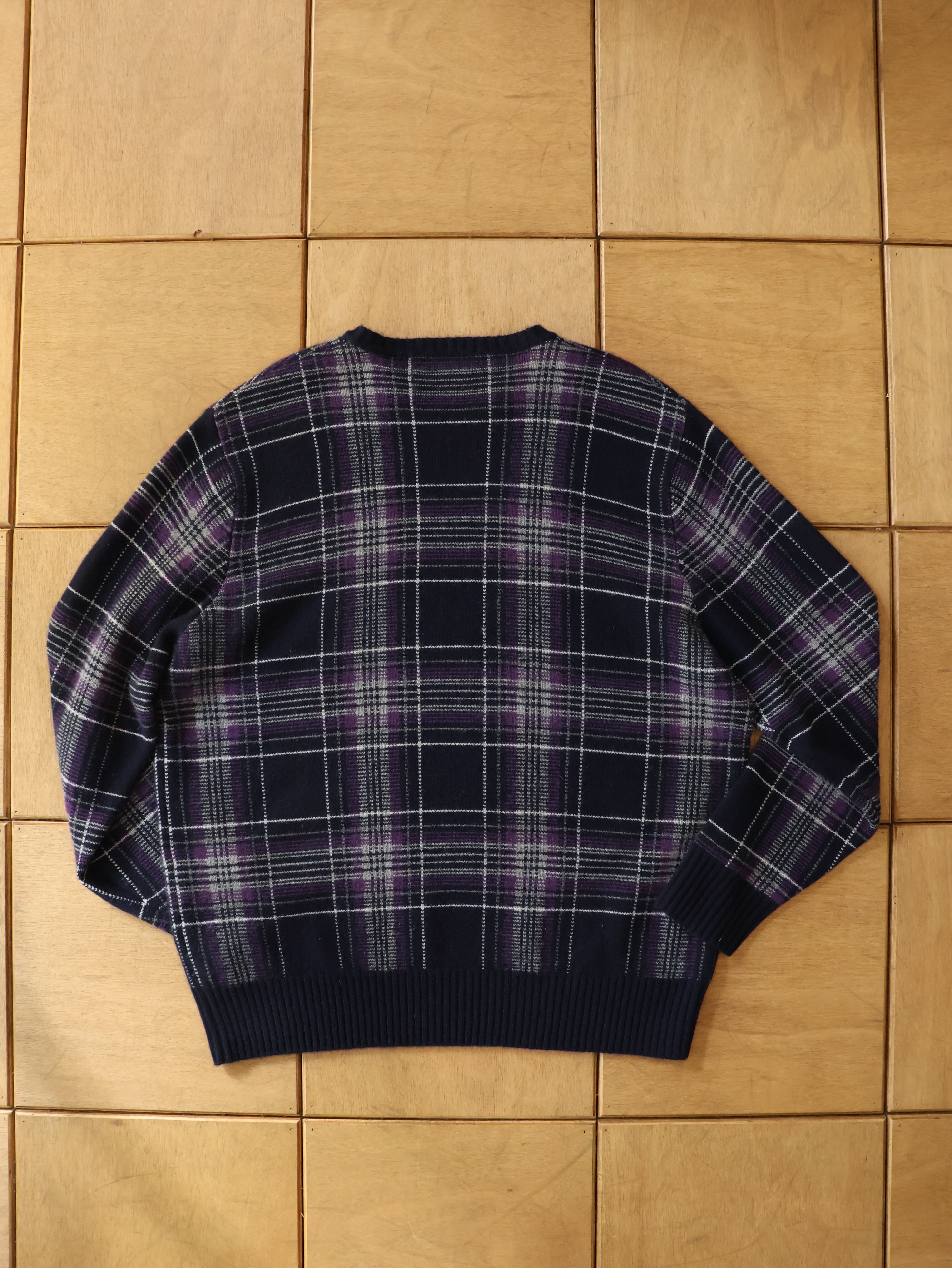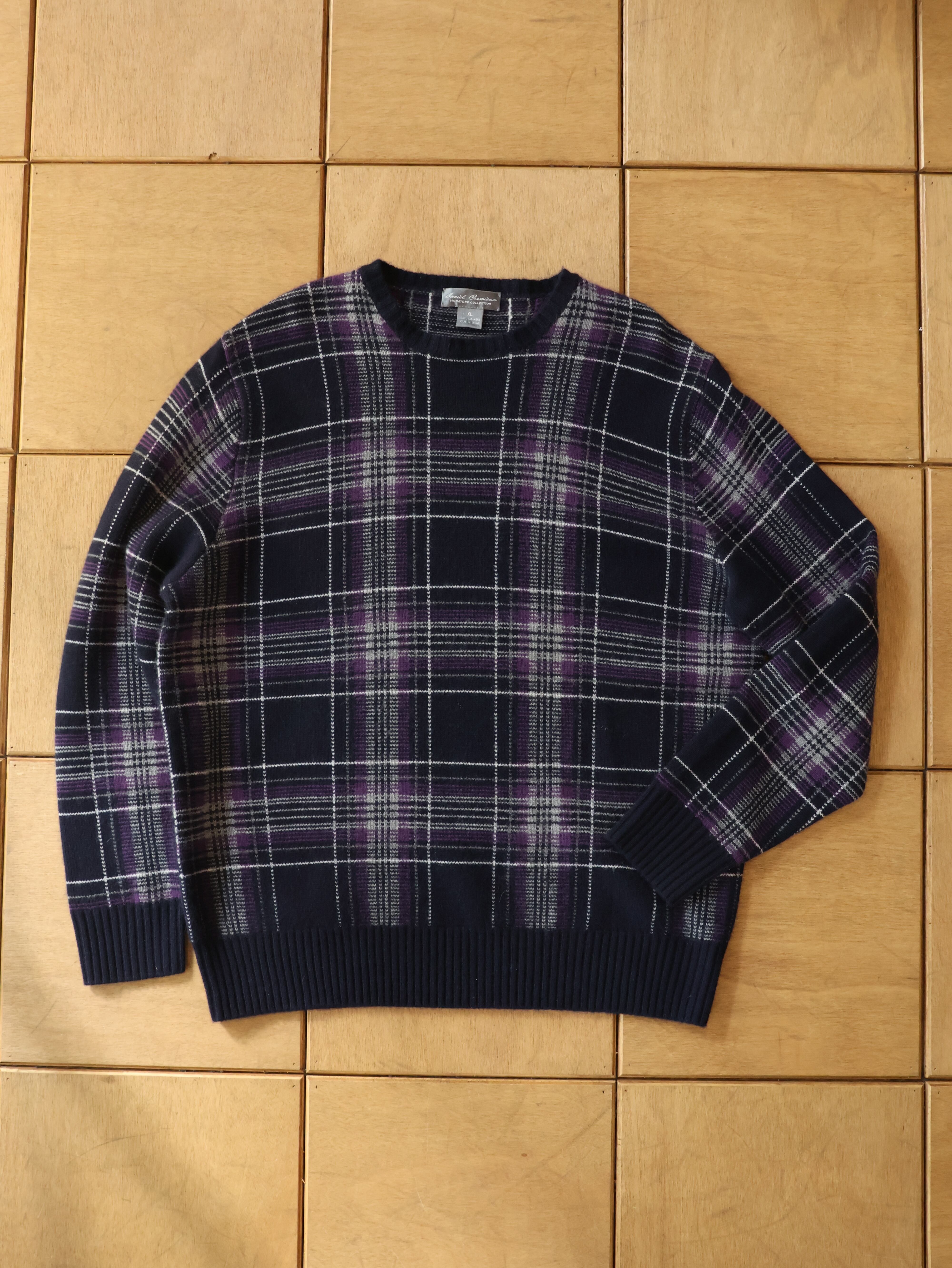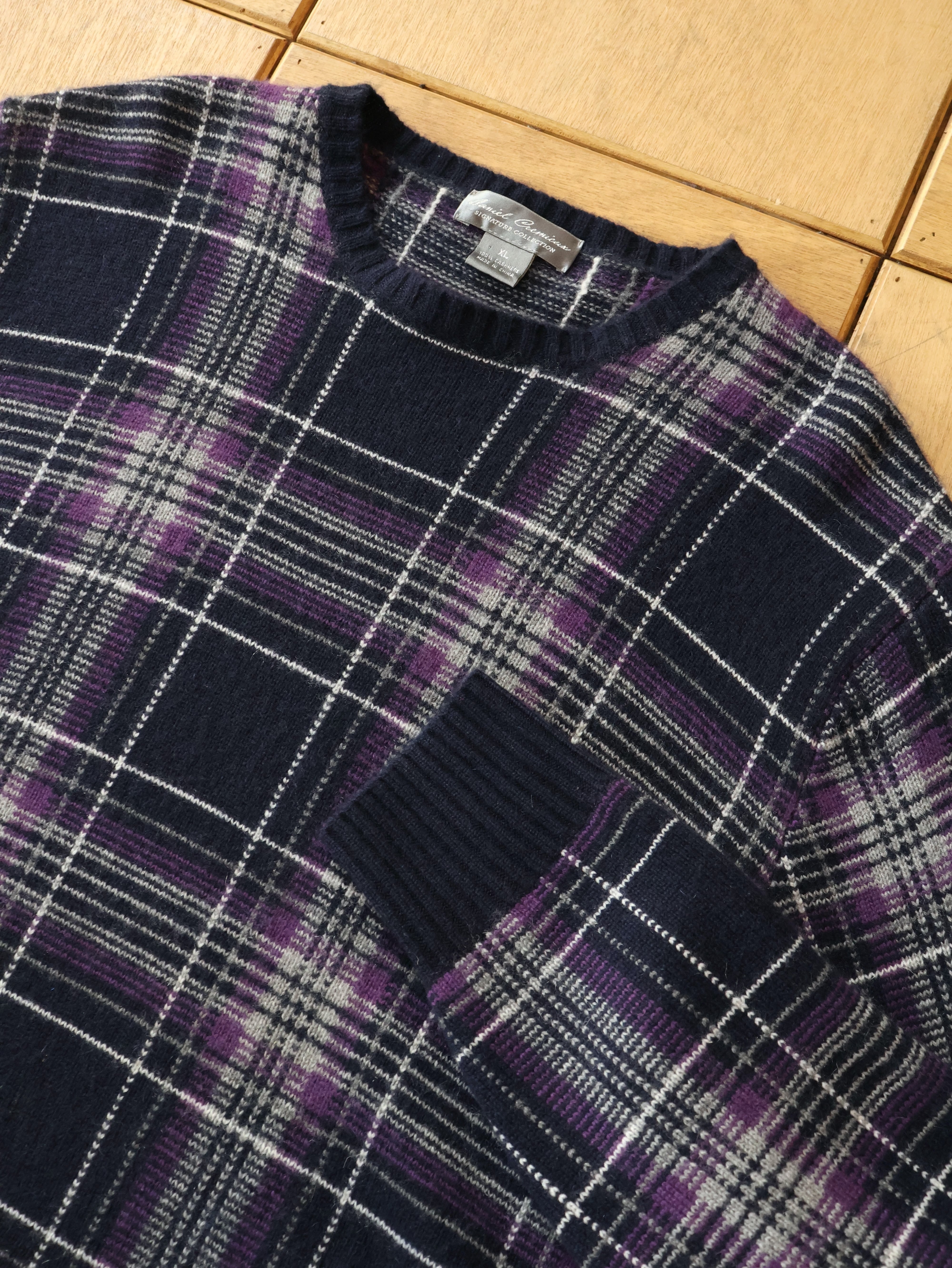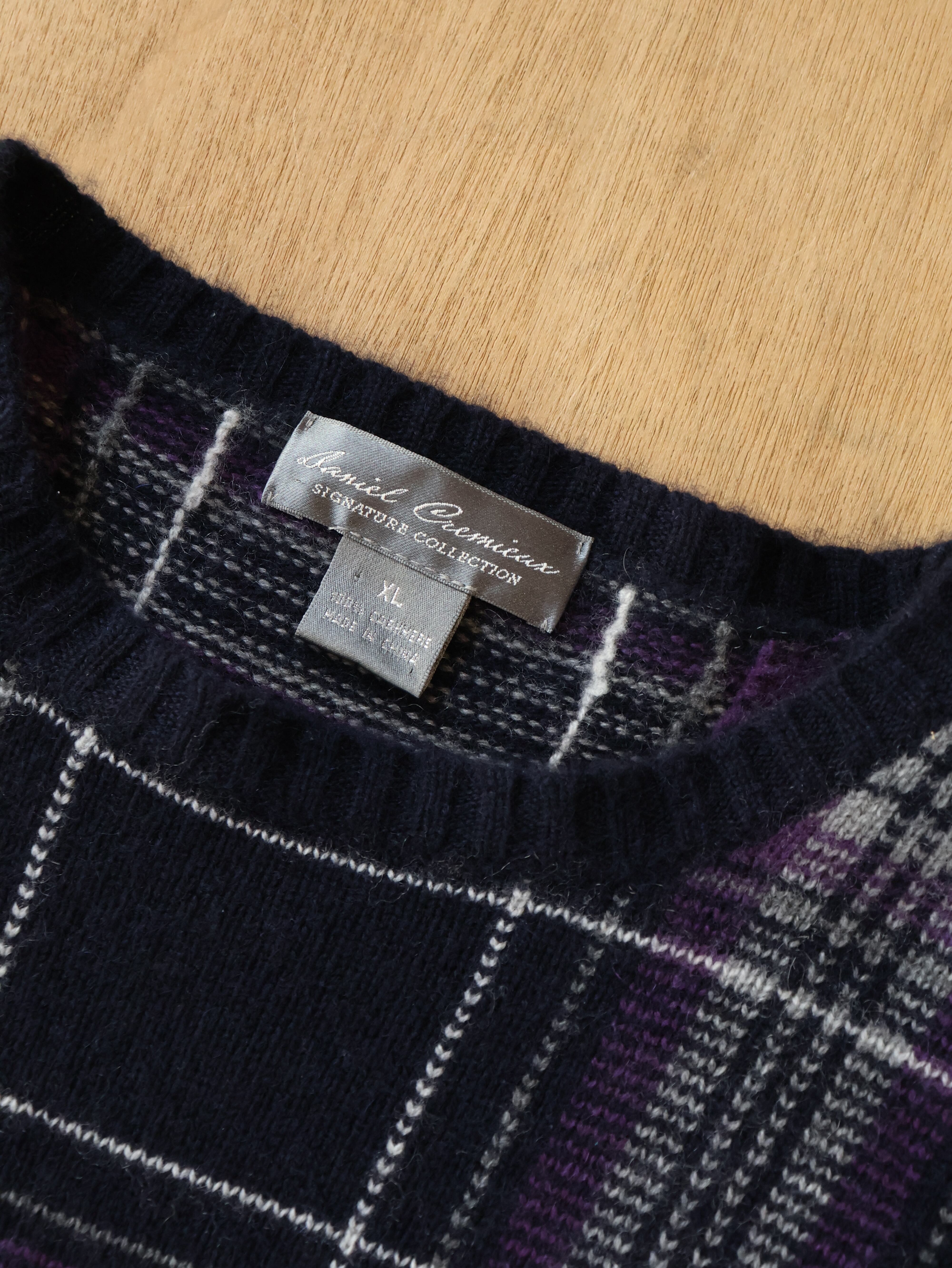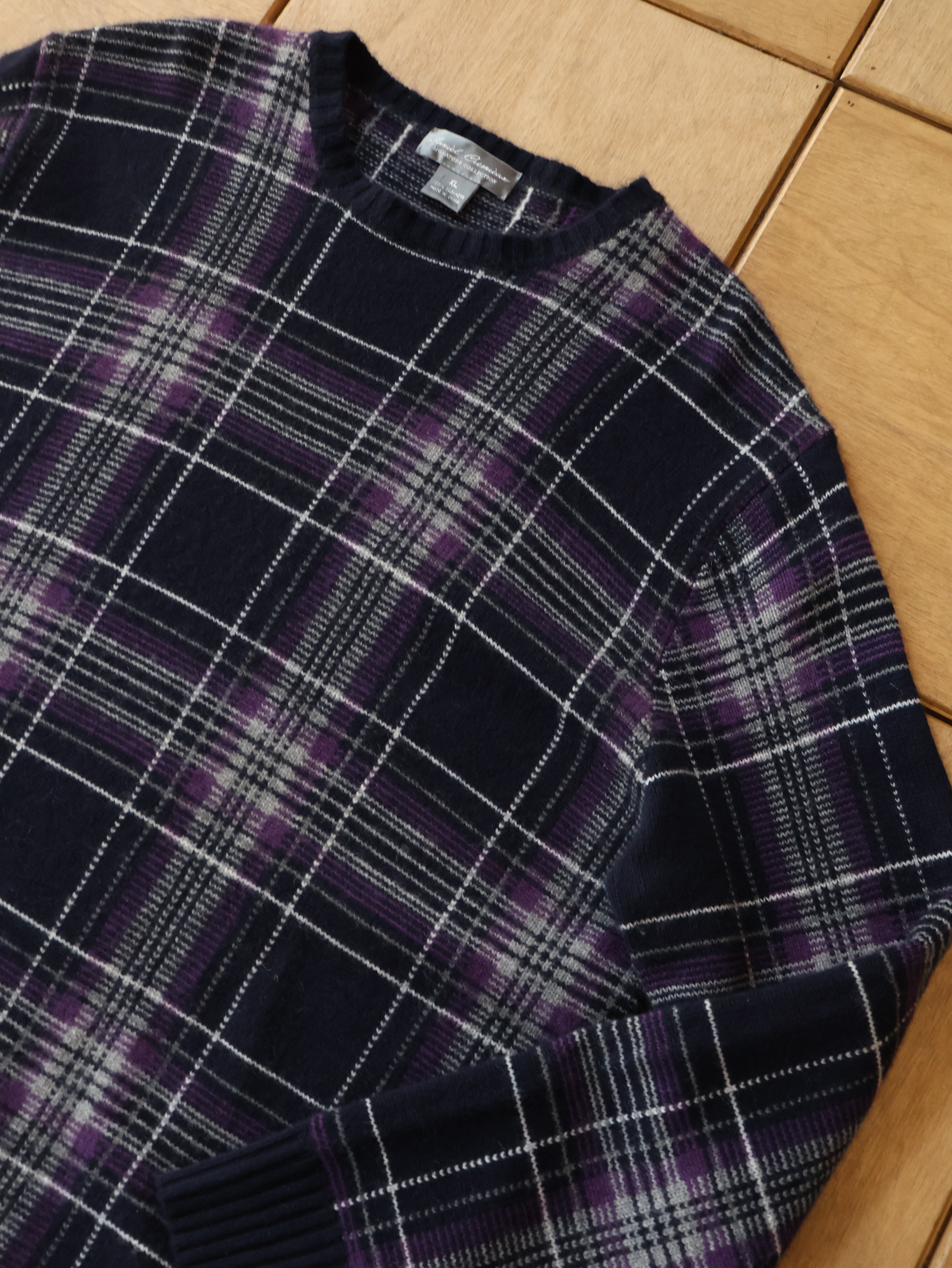 00s DANIEL CREMIEUX cashmere plaid knit 表記XL パープル チェック カシミヤニット クルーネック ダニエルクレミュ【0037】