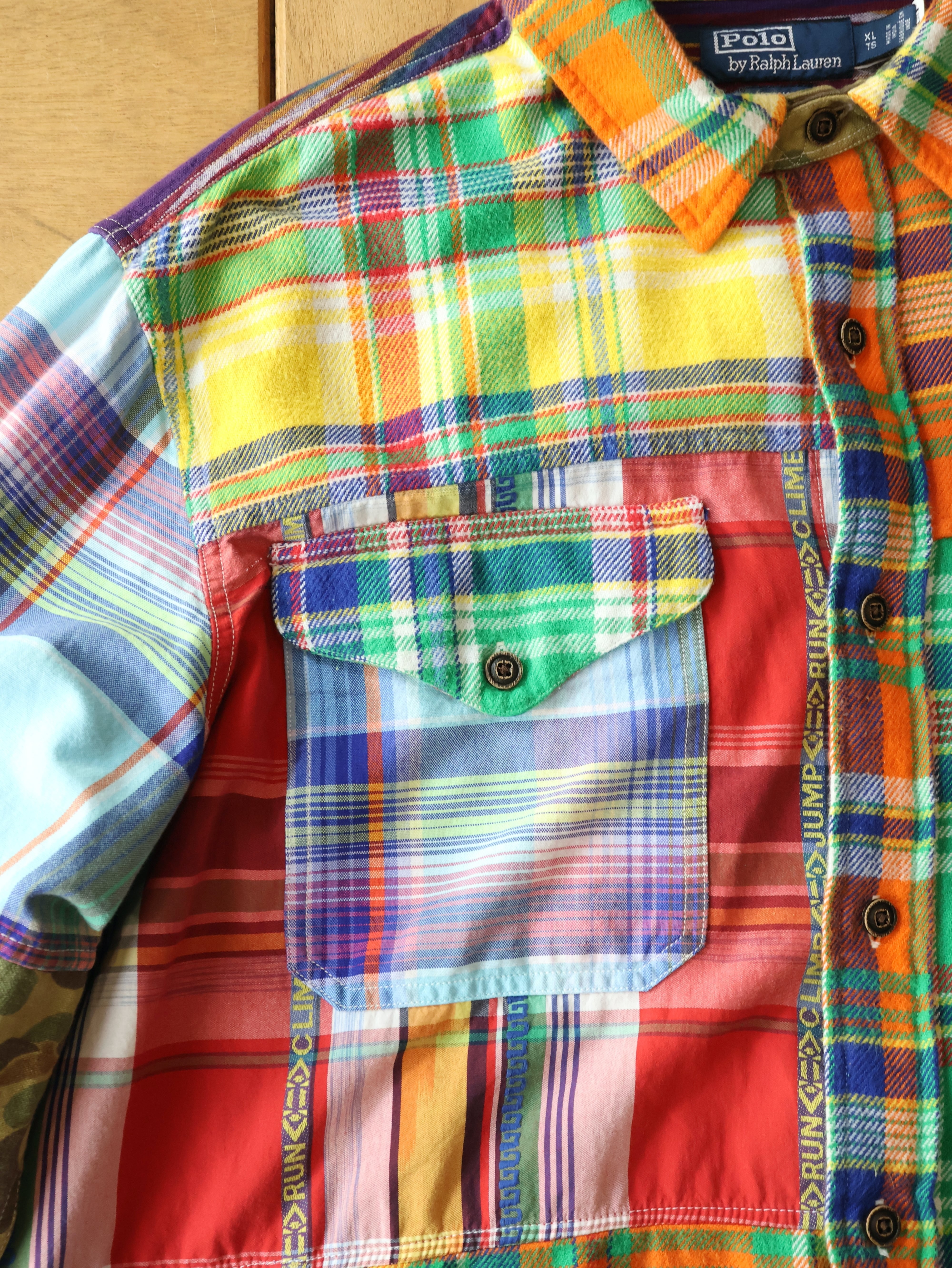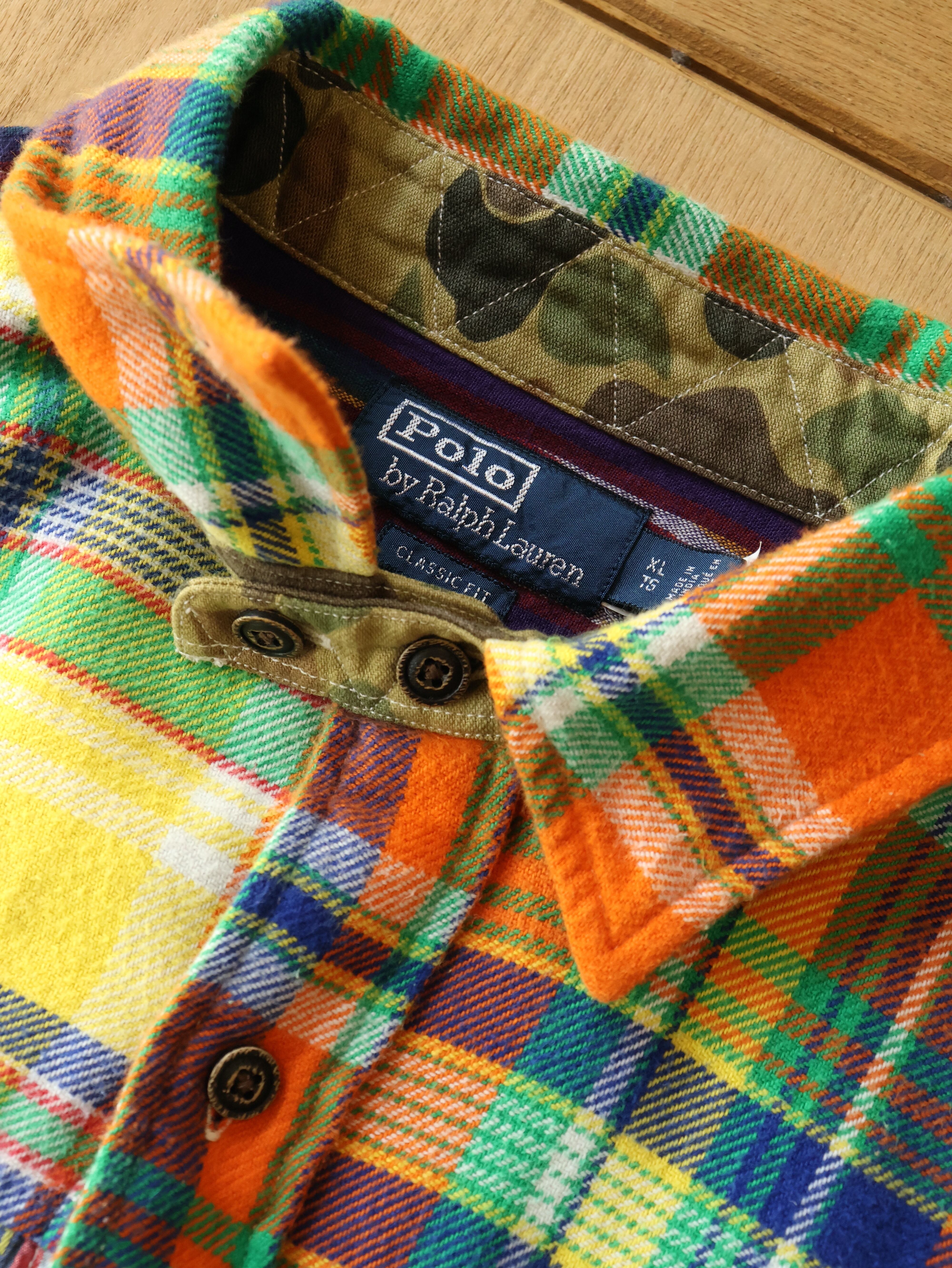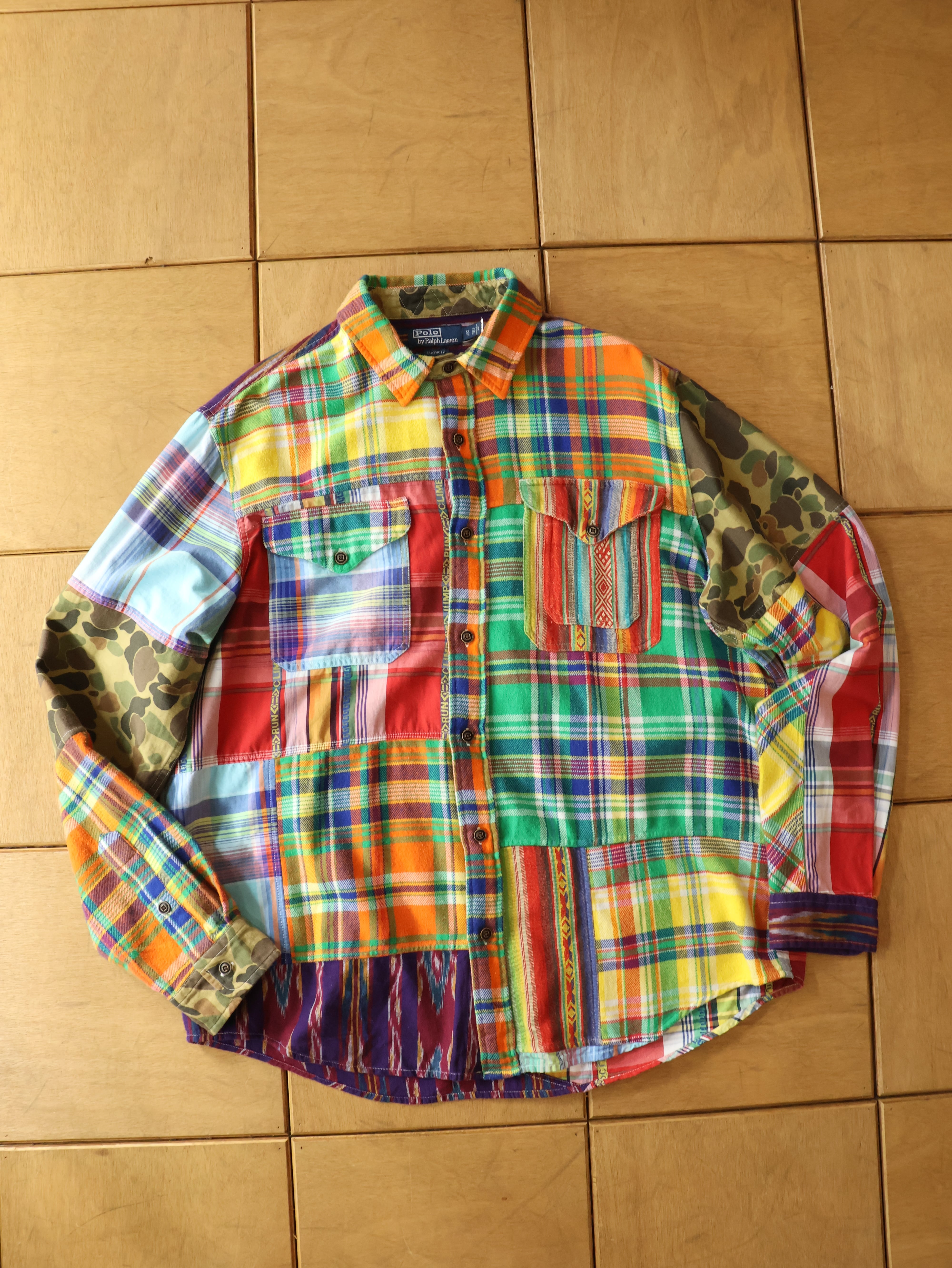 Polo by Ralph Lauren 表記XL クレイジー パッチワーク ネルシャツ チェック ダックハンターカモ 迷彩 ネイティブパターン チンストラップ ガチャポケ ポロバイラルフローレン【0015】