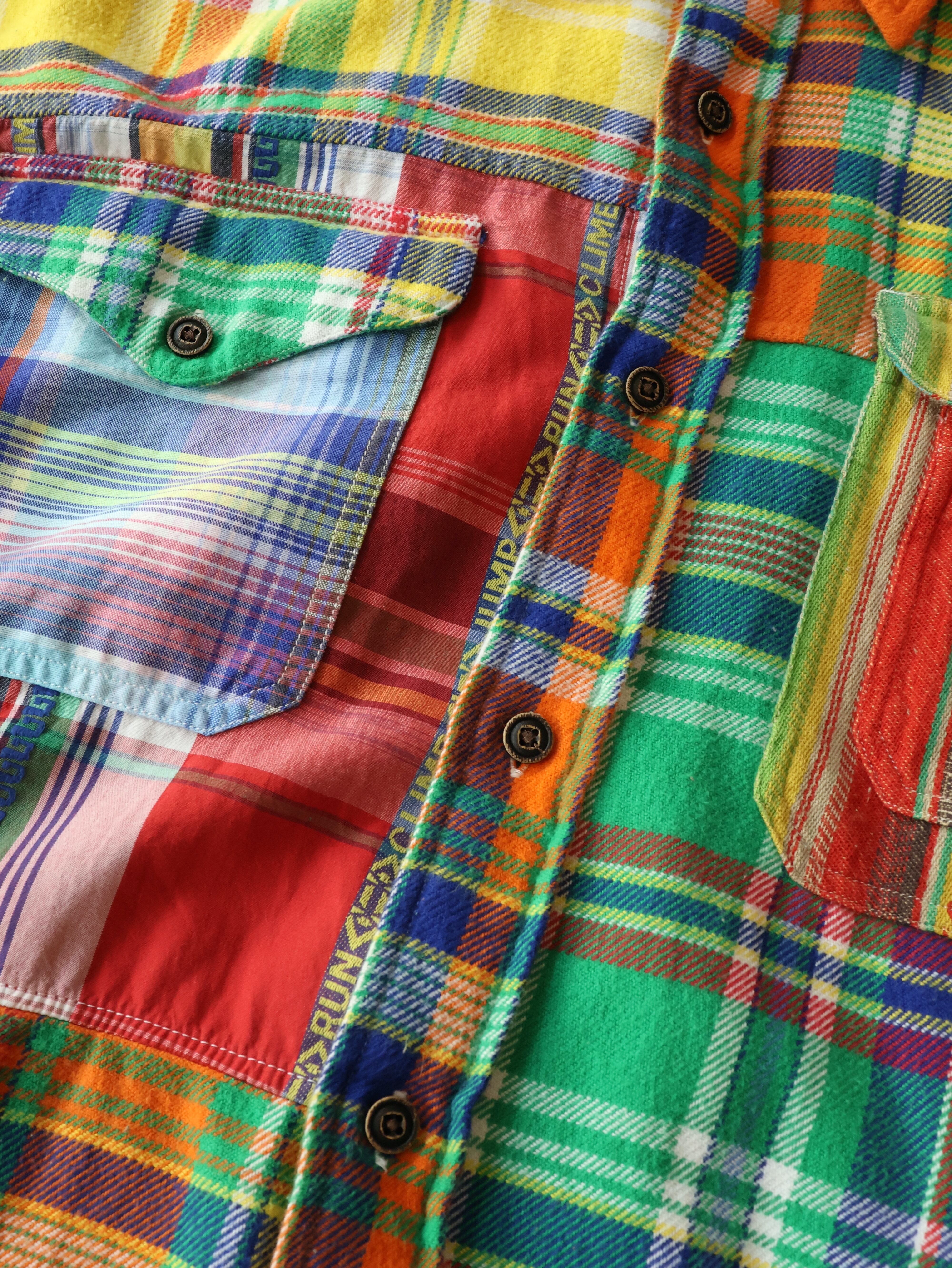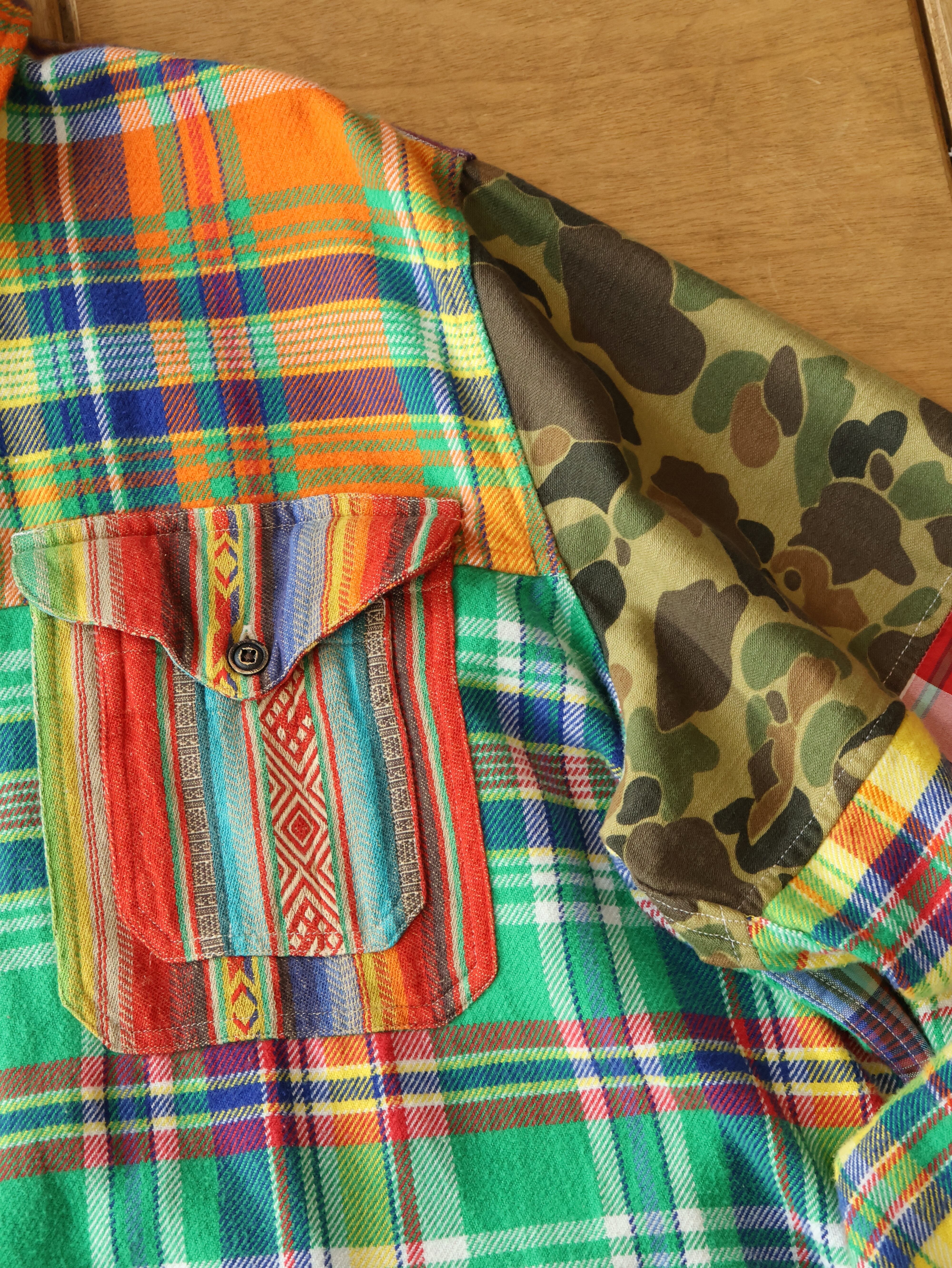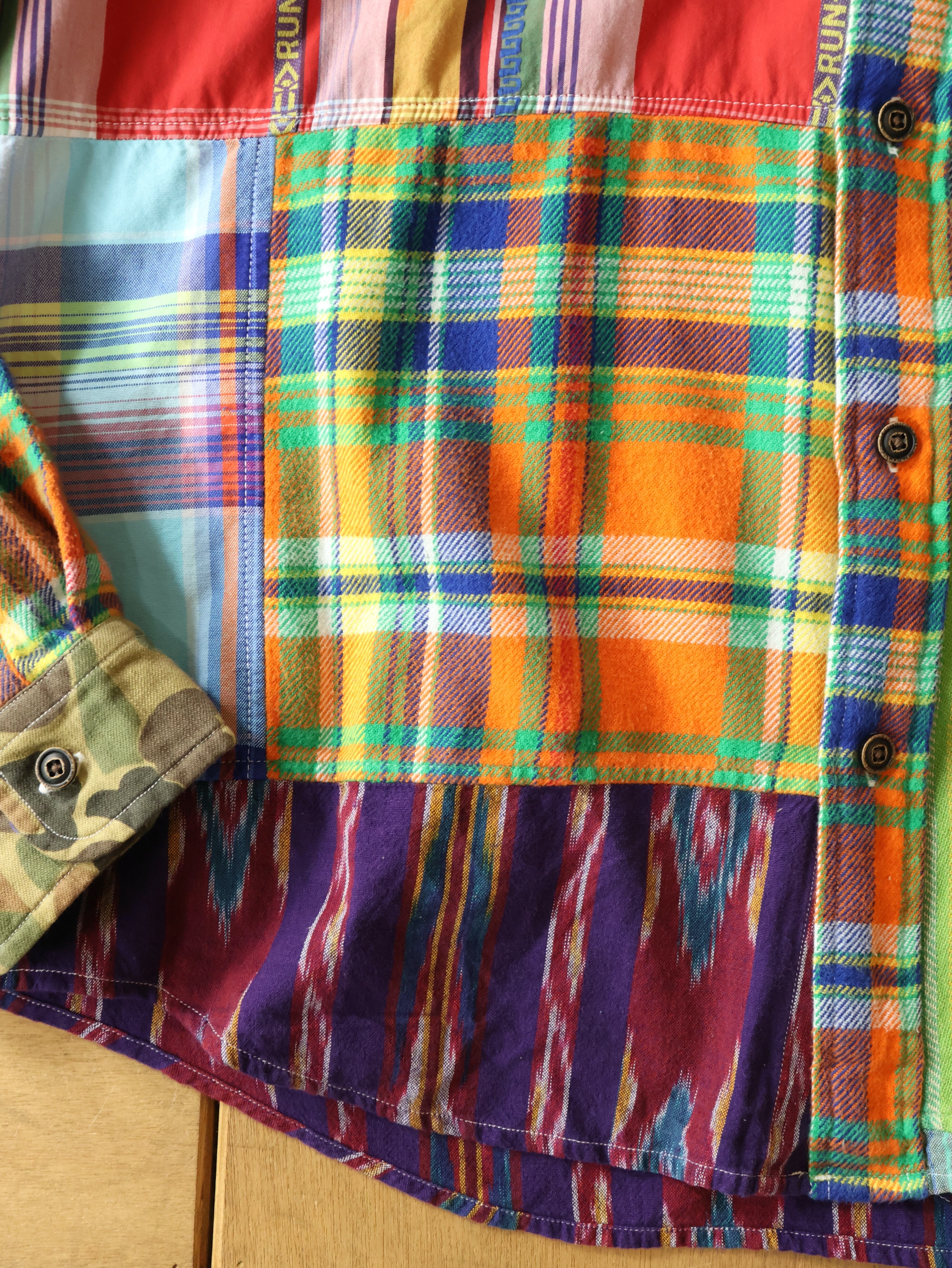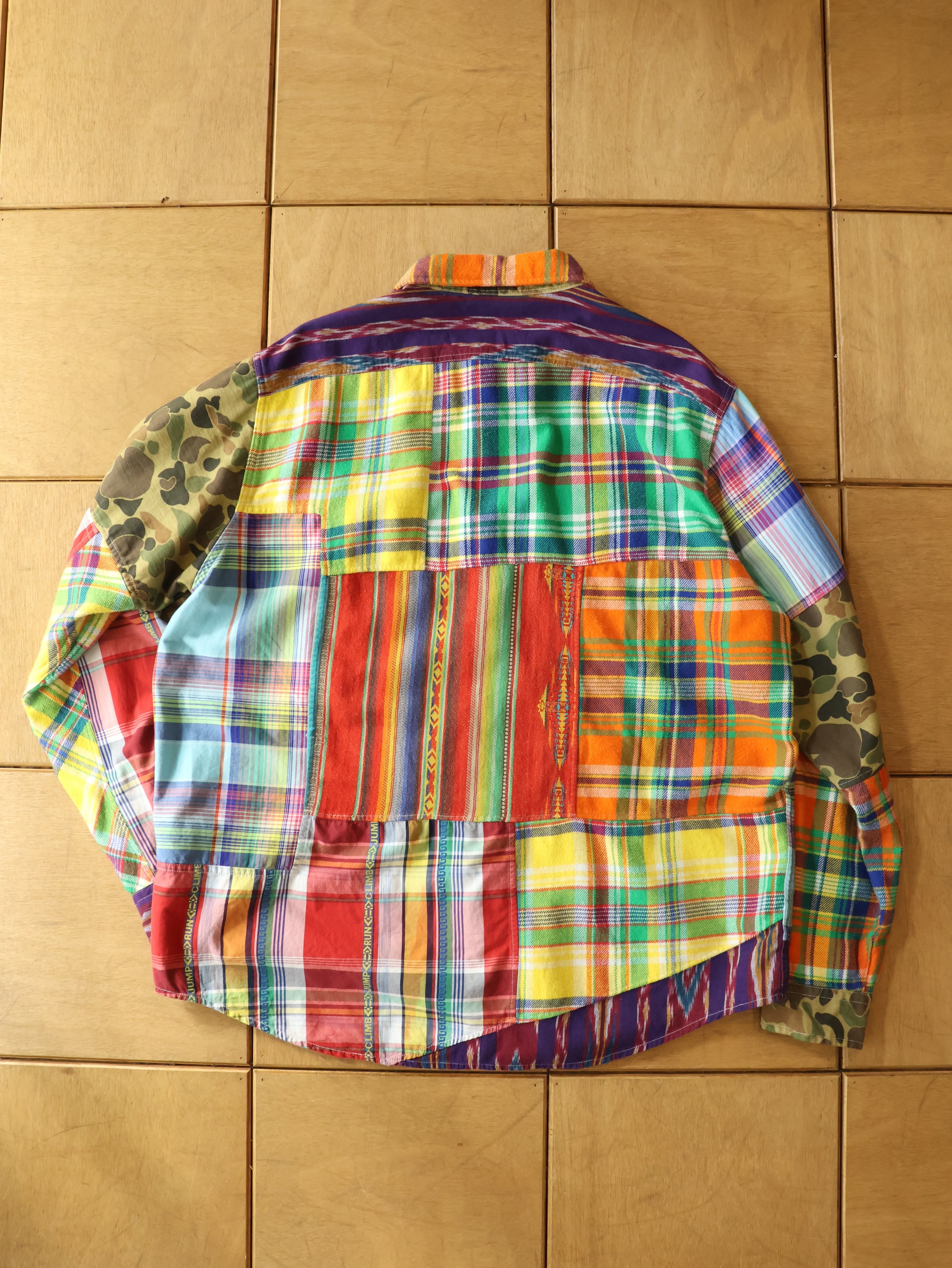 Polo by Ralph Lauren 表記XL クレイジー パッチワーク ネルシャツ チェック ダックハンターカモ 迷彩 ネイティブパターン チンストラップ ガチャポケ ポロバイラルフローレン【0015】