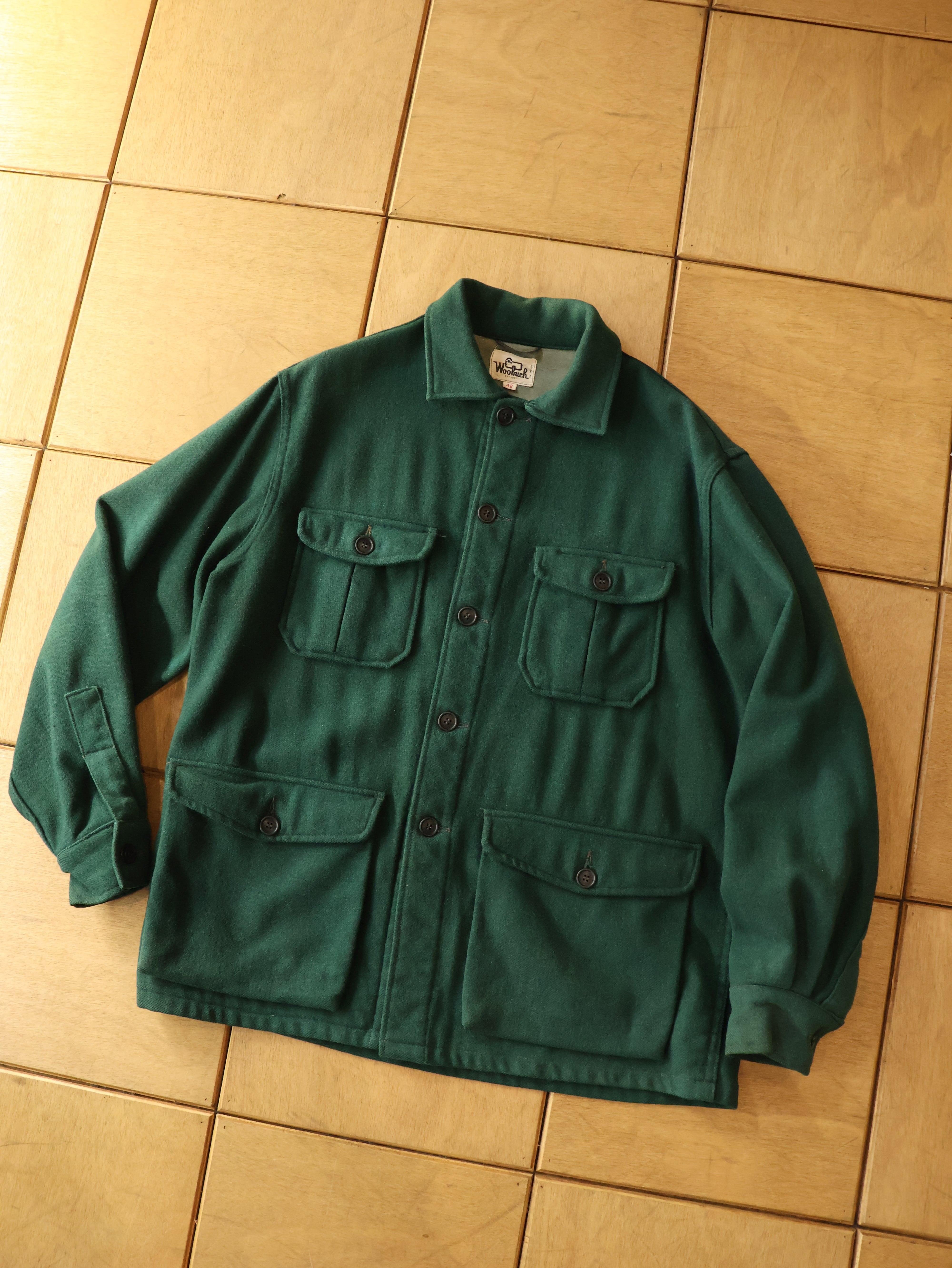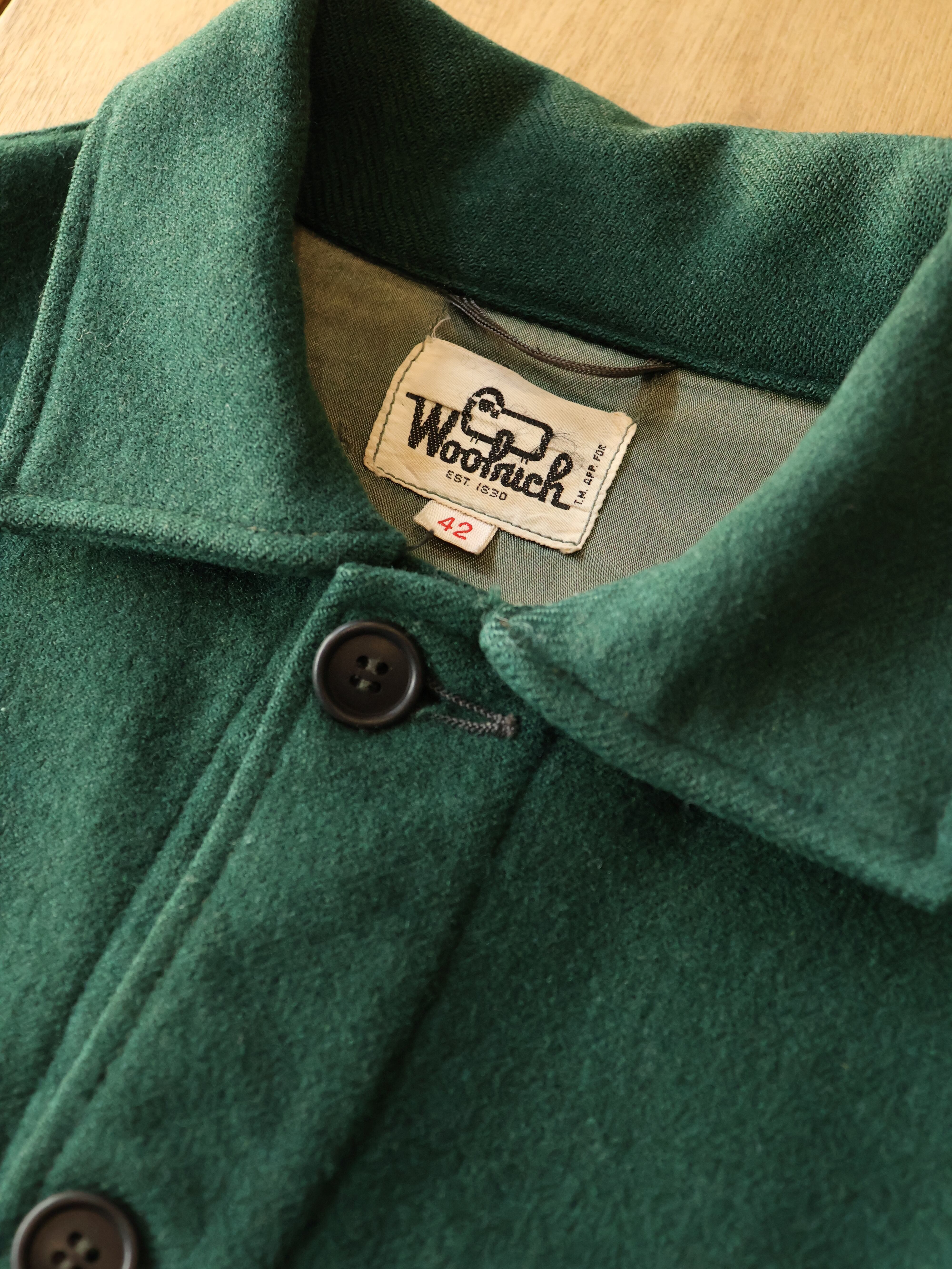70s Woolrich wool safari shirt jacket 表記42 XL グリーン ウールジャケット サファリシャツ クルーザージャケット USA製 白タグ ウールリッチ【0039】