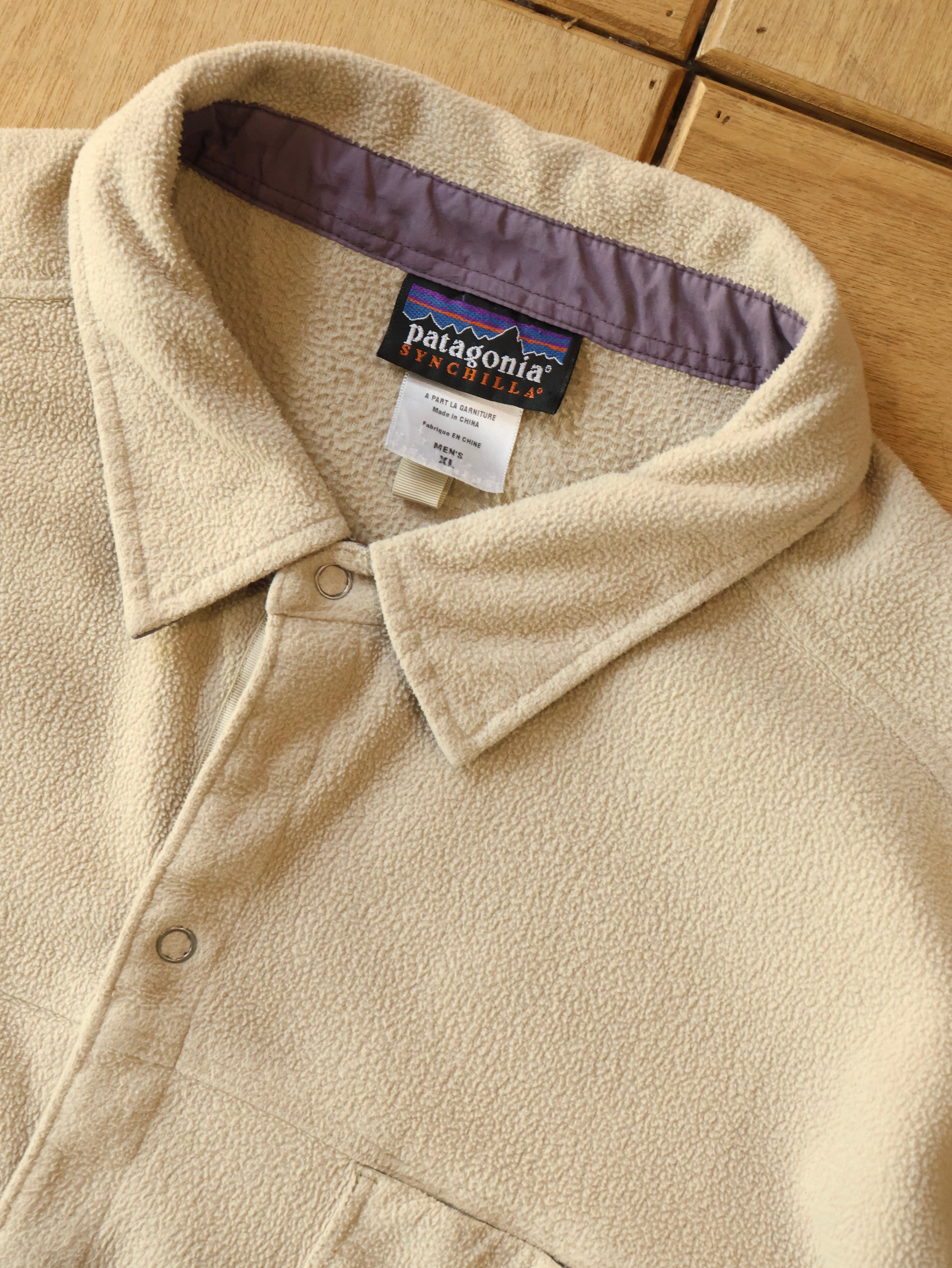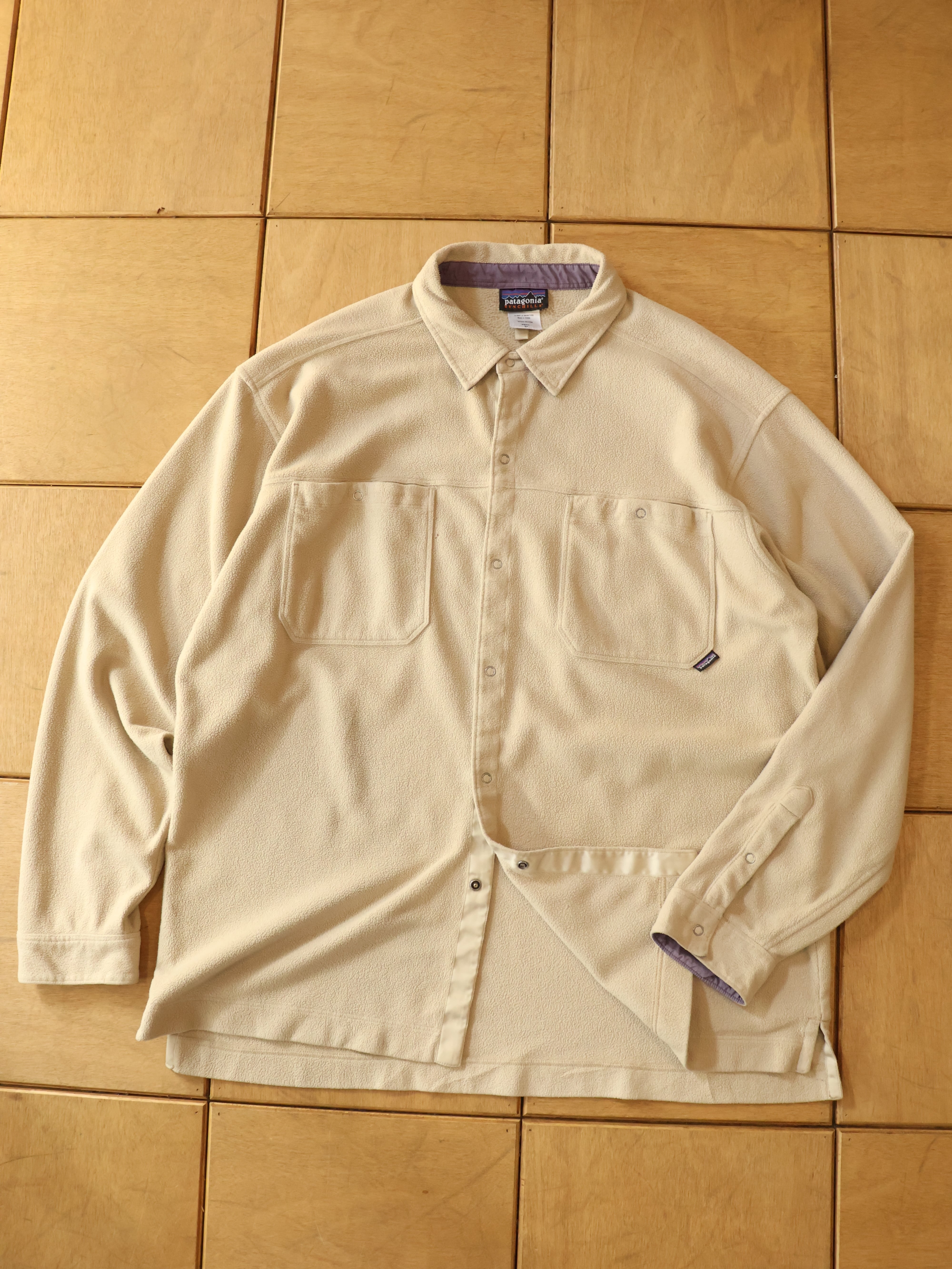 00s Patagonia synchilla fleece shirt 表記XL サンドベージュ シンチラフリース スナップシャツ F5 パタゴニア【0019】