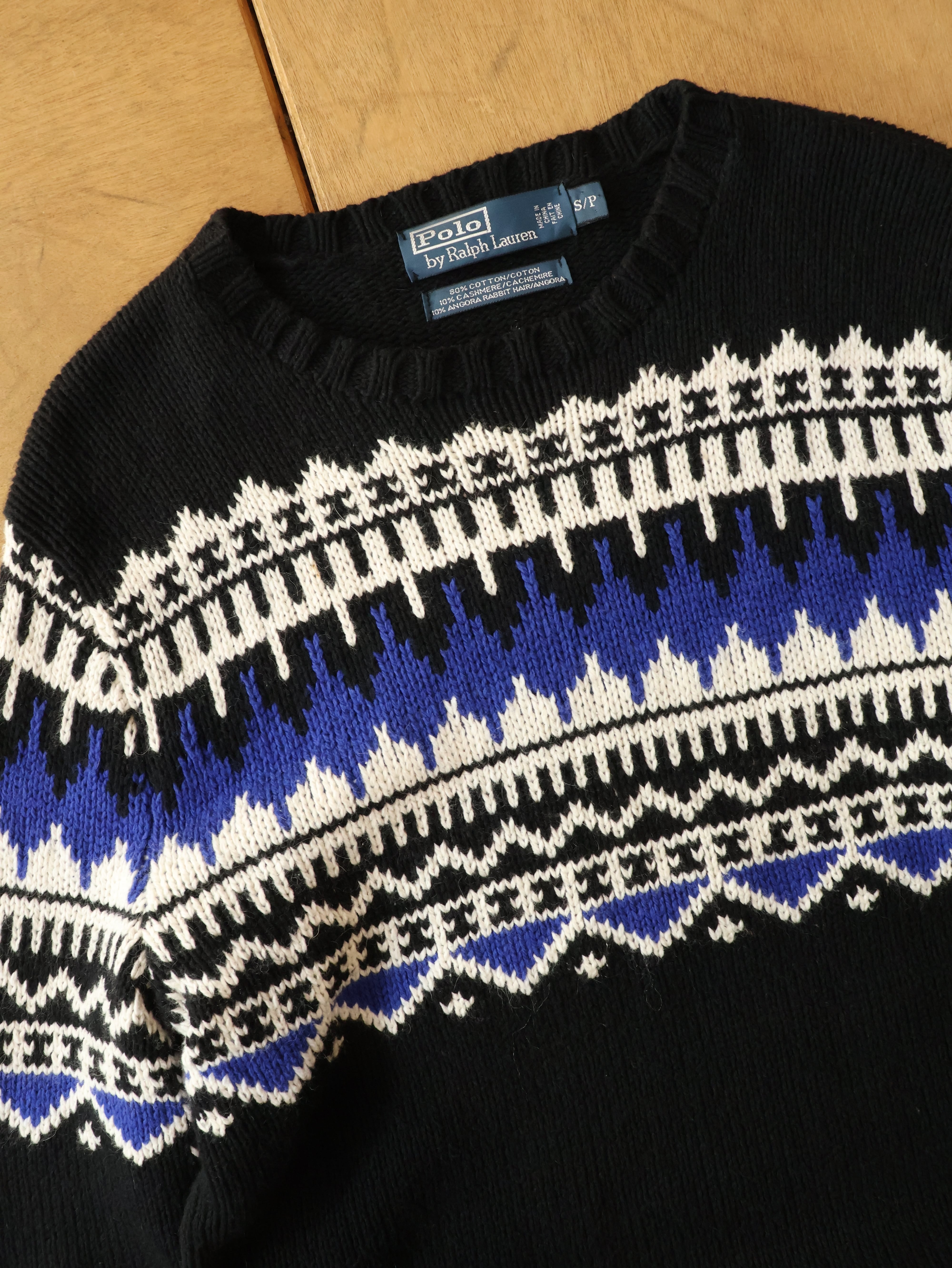 00s Polo by Ralph Lauren cashmere/angora mixed cotton knit 表記S ブラック ノルディック カシミヤ アンゴラ コットンニット ポロバイラルフローレン【0029】