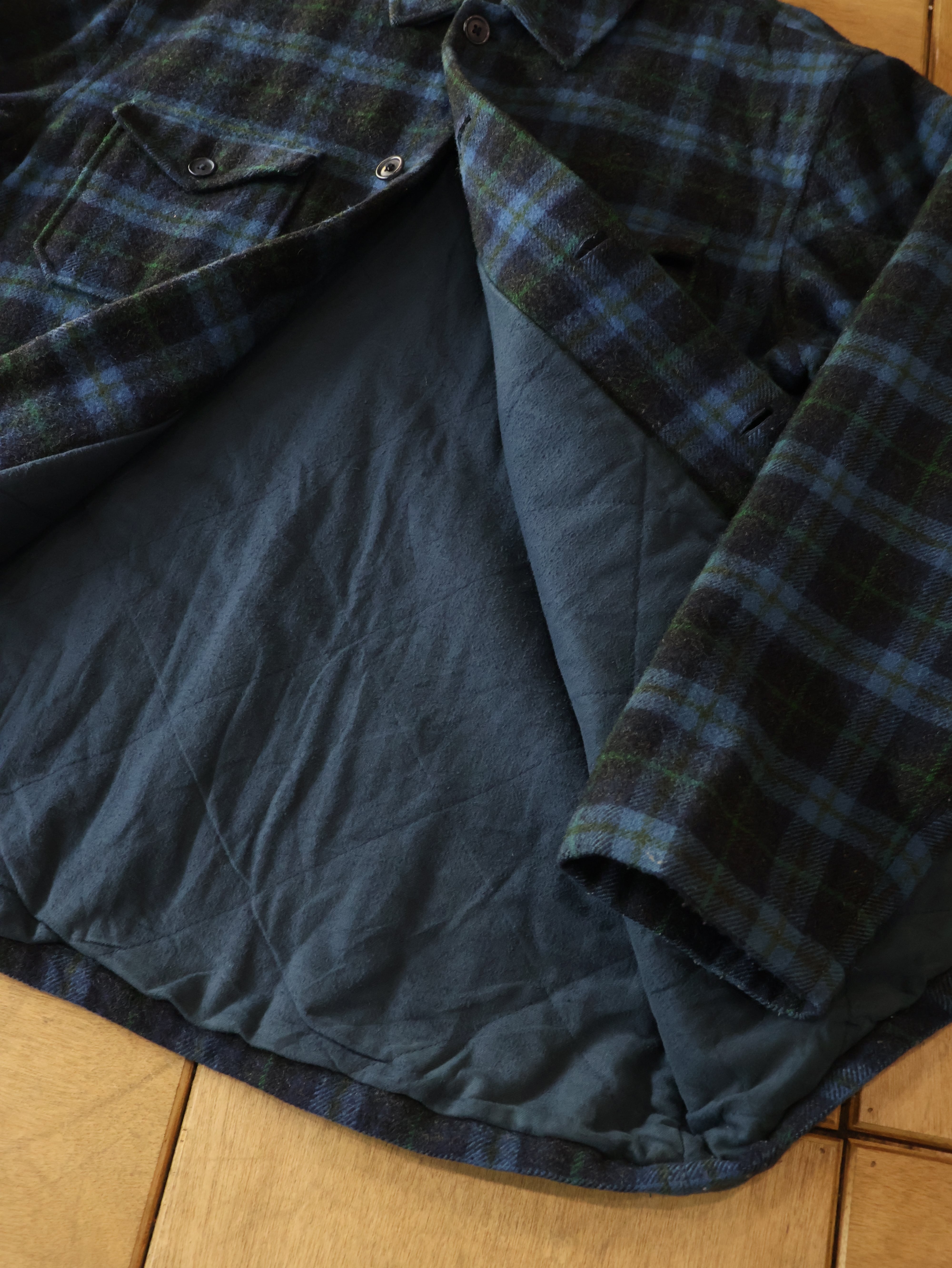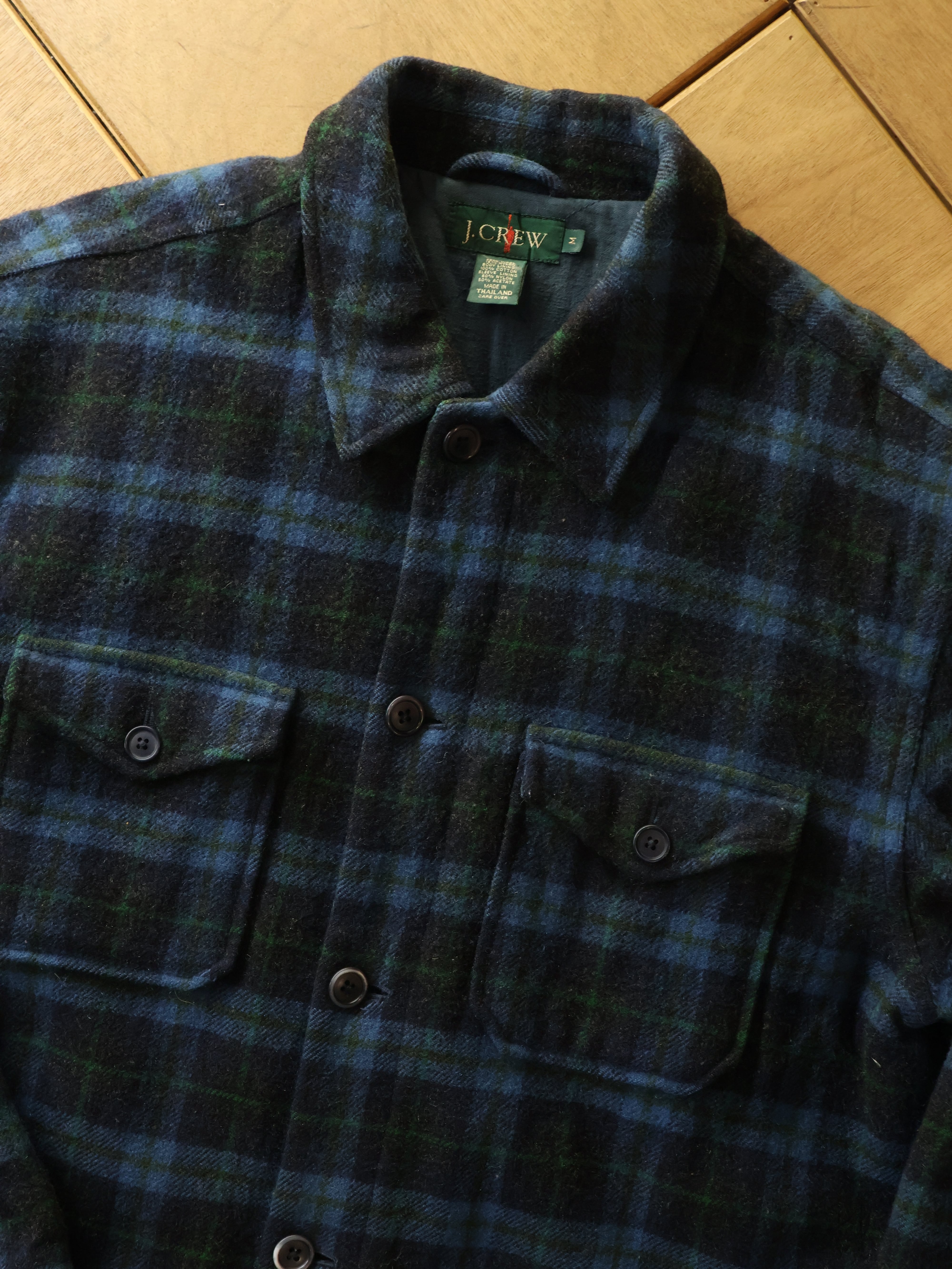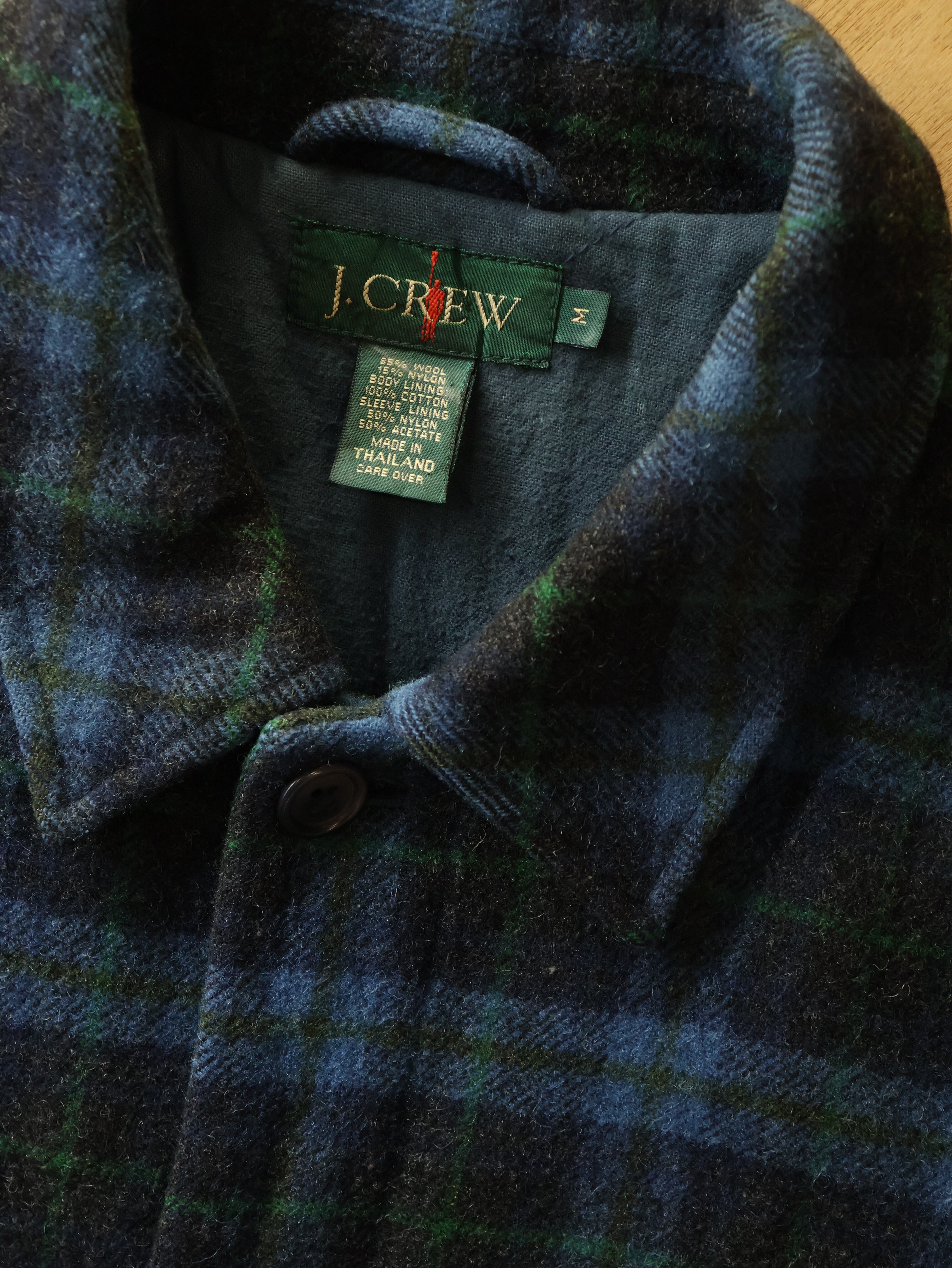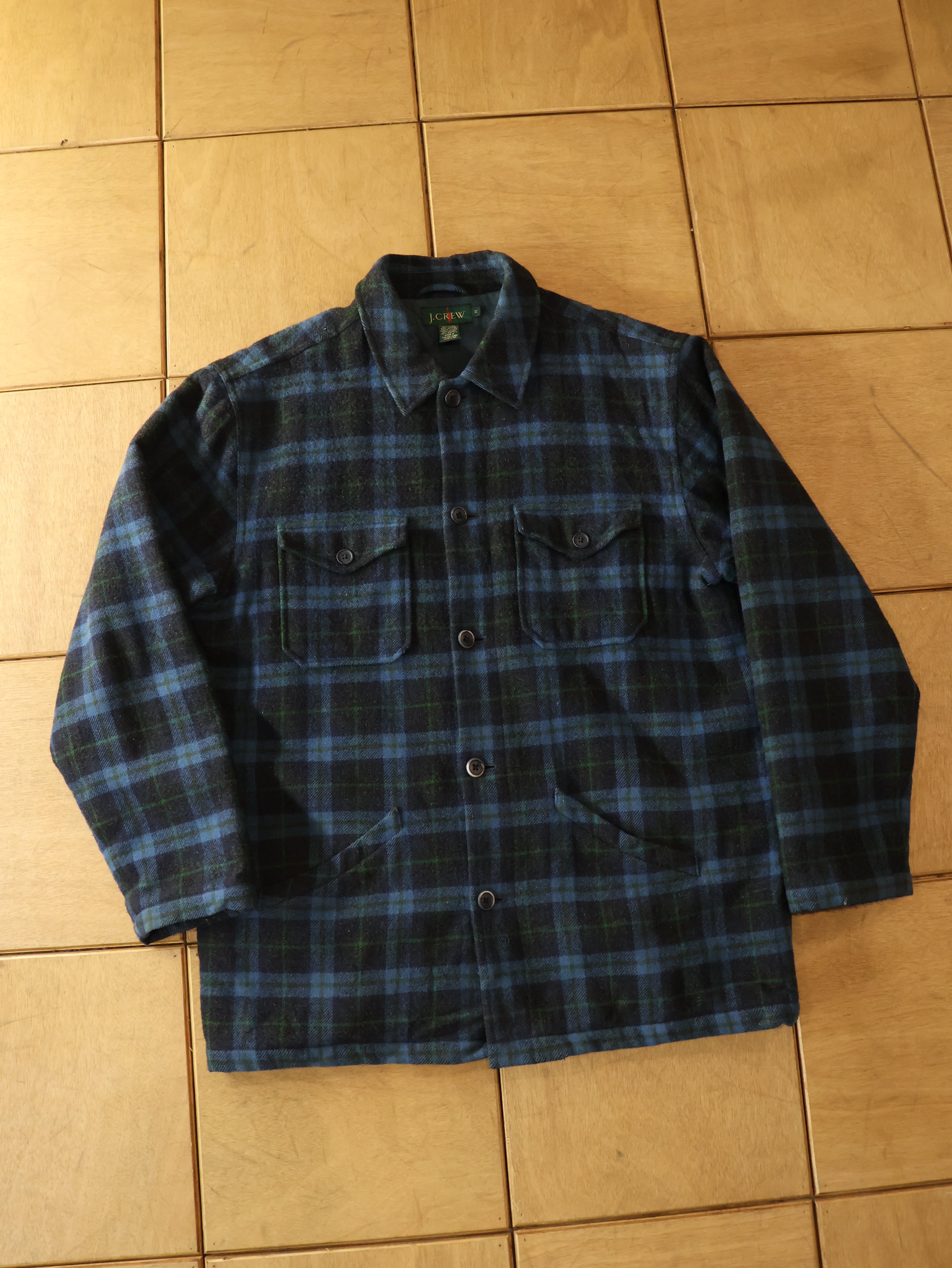 90s J.CREW plaid wool jacket 表記M ブルー チェック ウールジャケット 巨人タグ ジェイクルー【0020】
