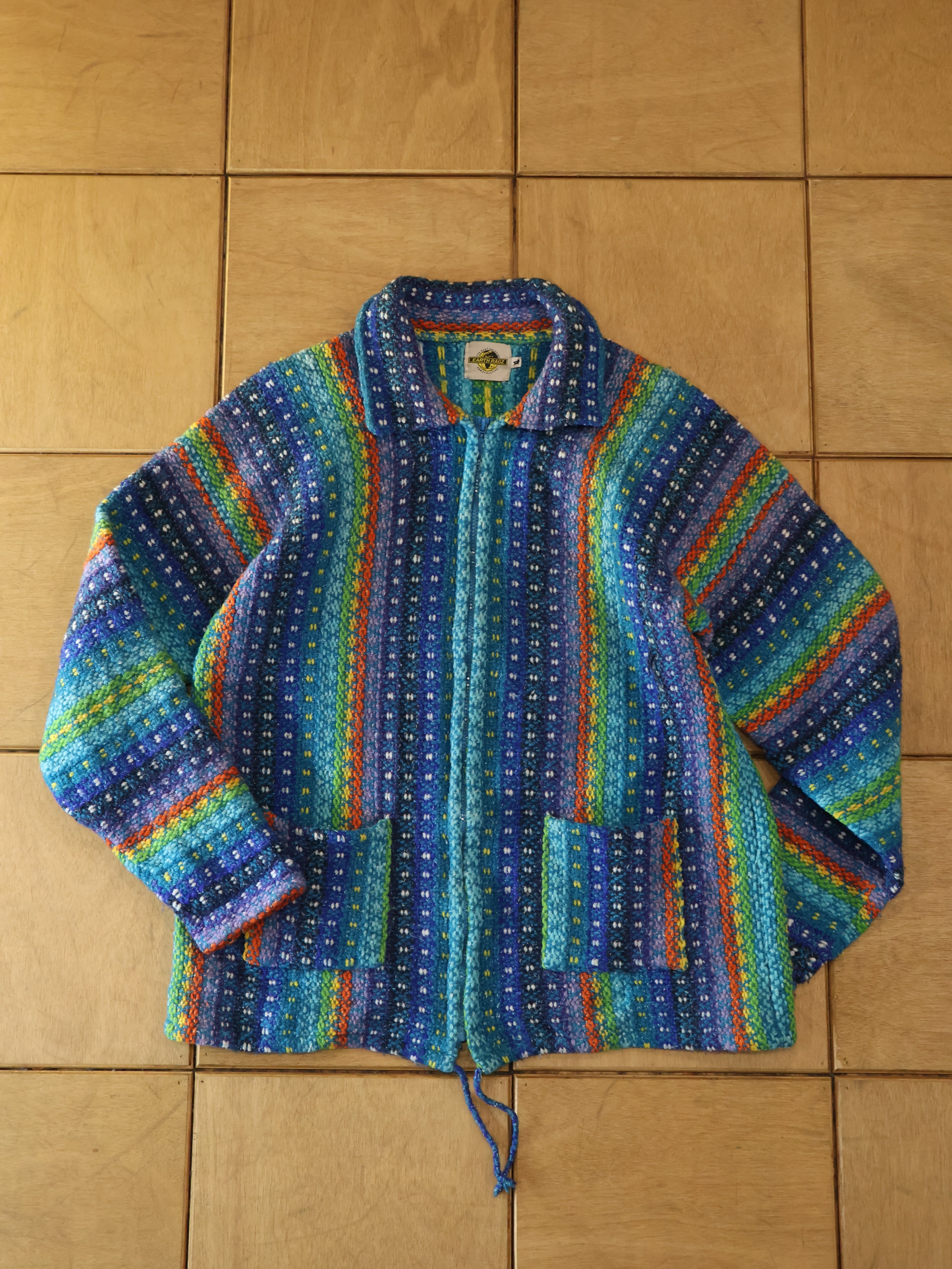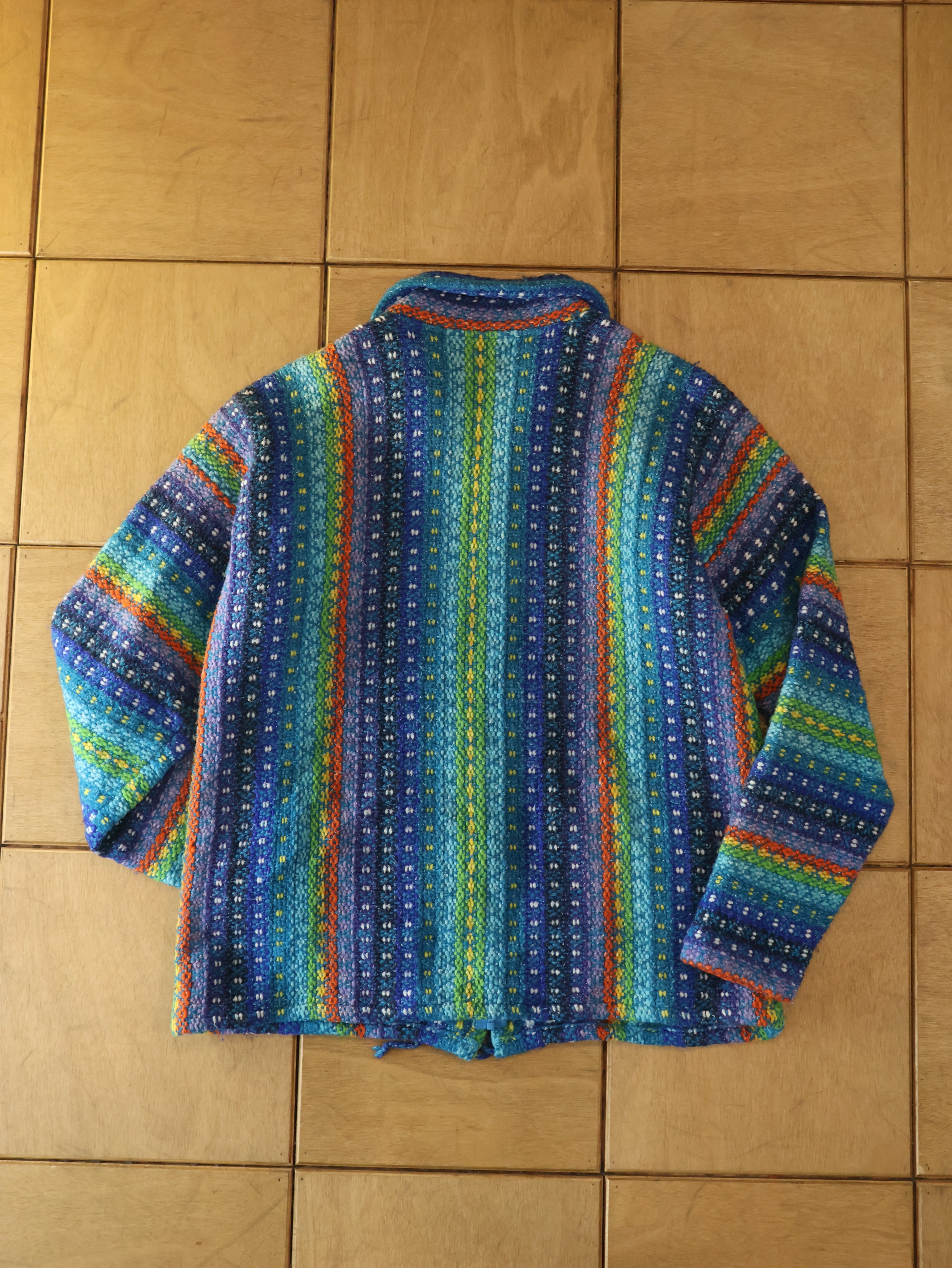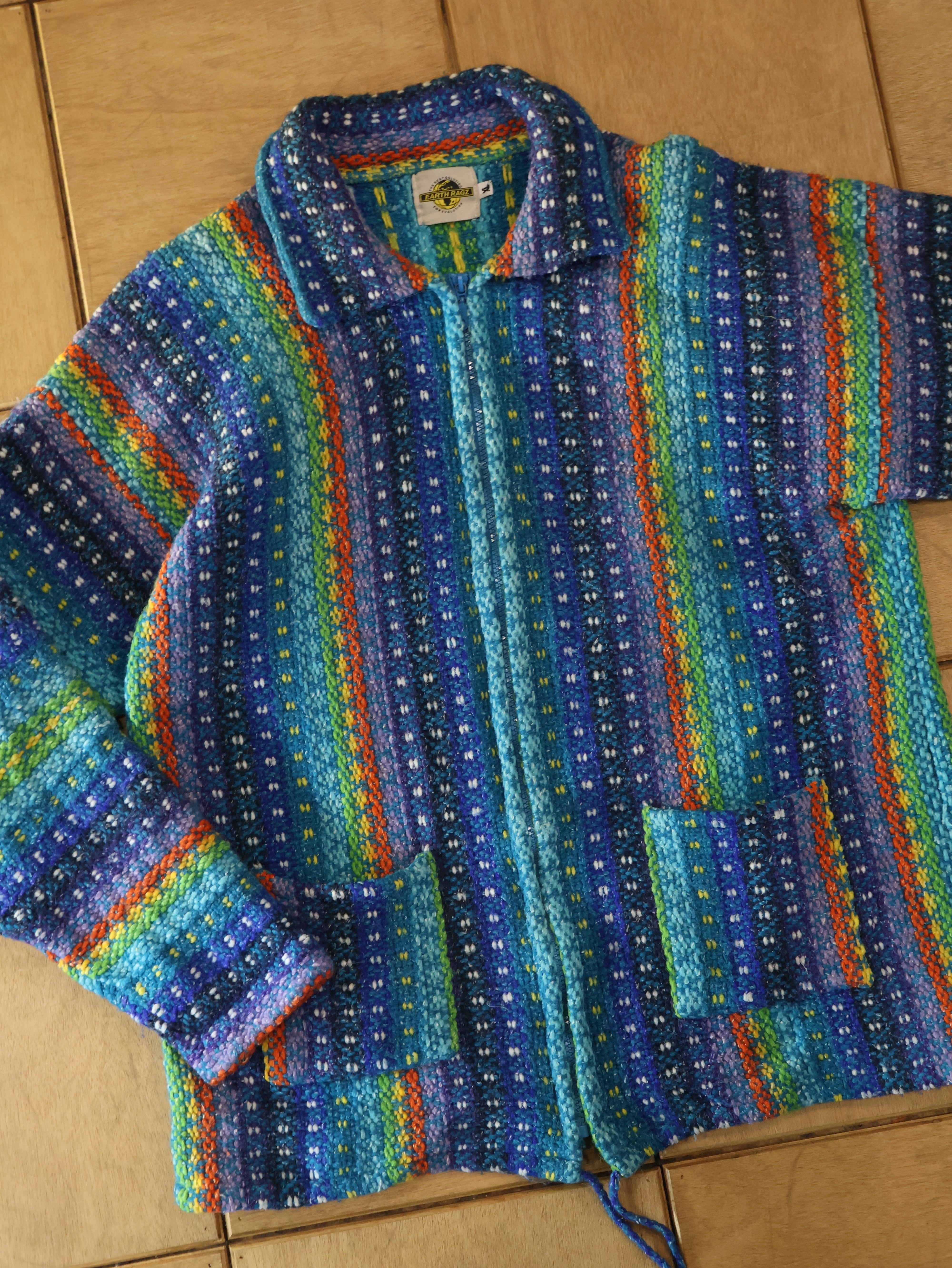 90s EARTH RAGZ wool jacket 表記XL マルチカラー ウール ブルゾン メキシカンパーカー アースラグス【0005】
