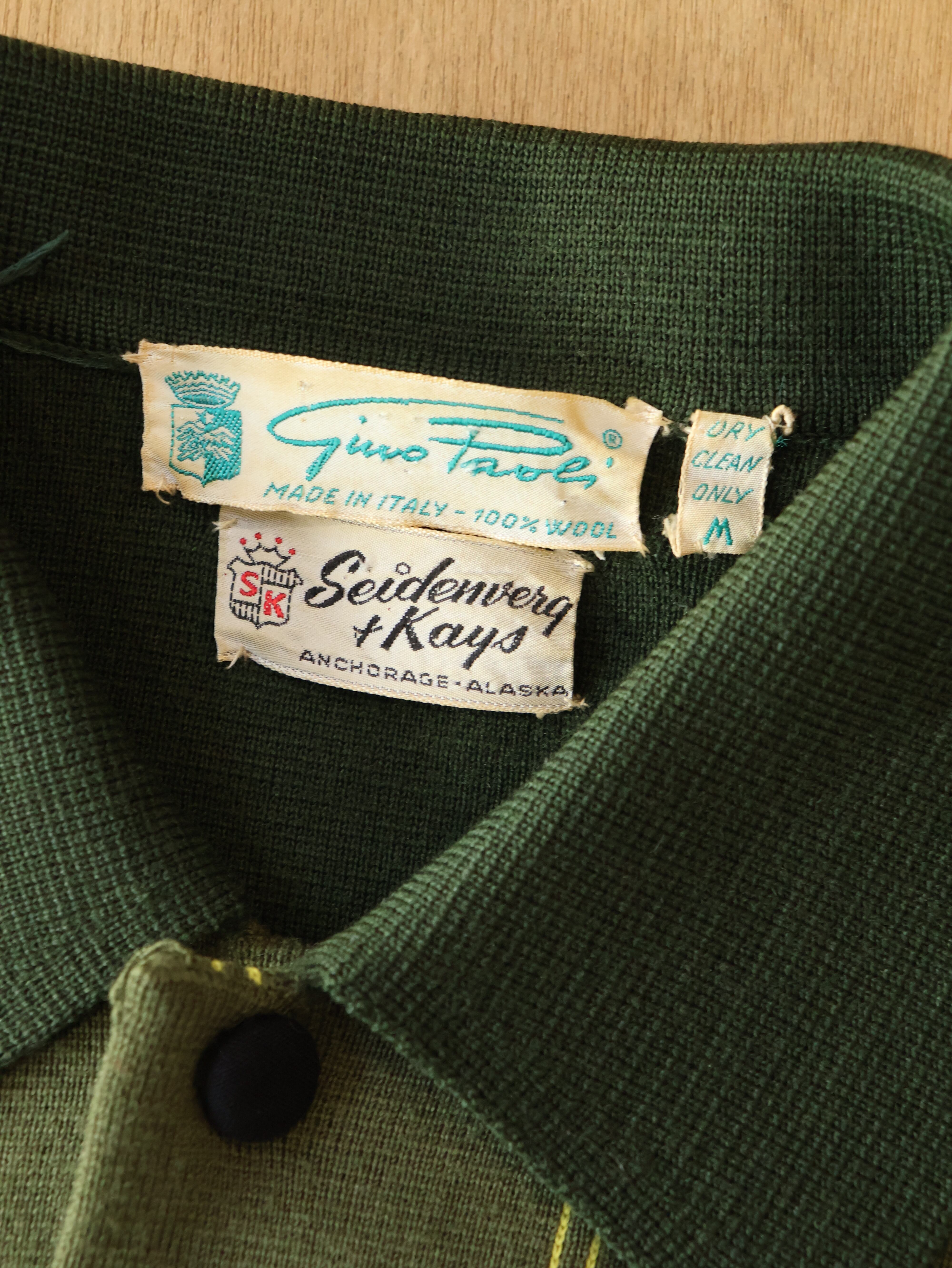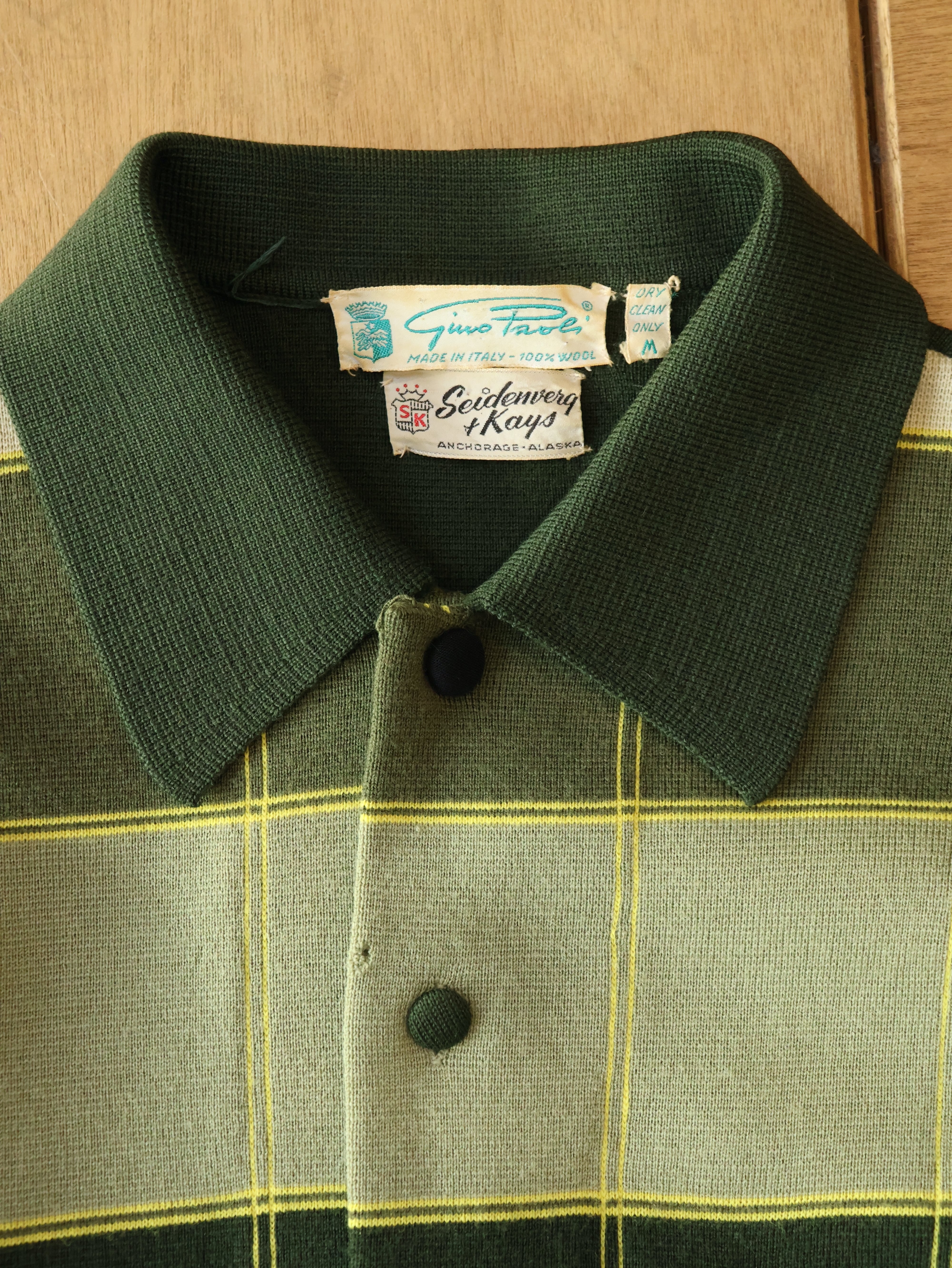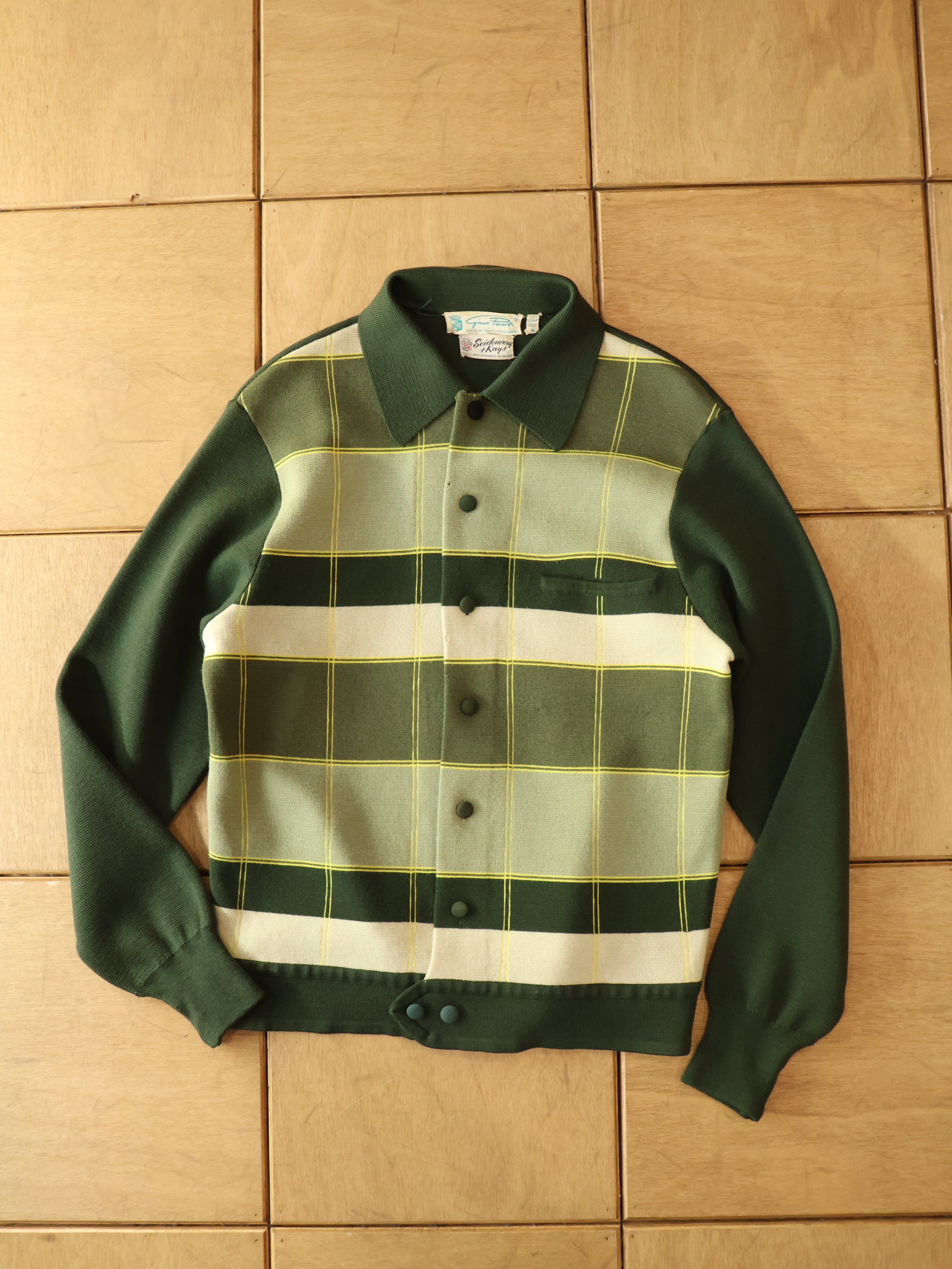 60s Gino Paoli × Seidenverg & Kays knit jacket 表記M グリーン チェック ニットジャケット イタリア製【0018】