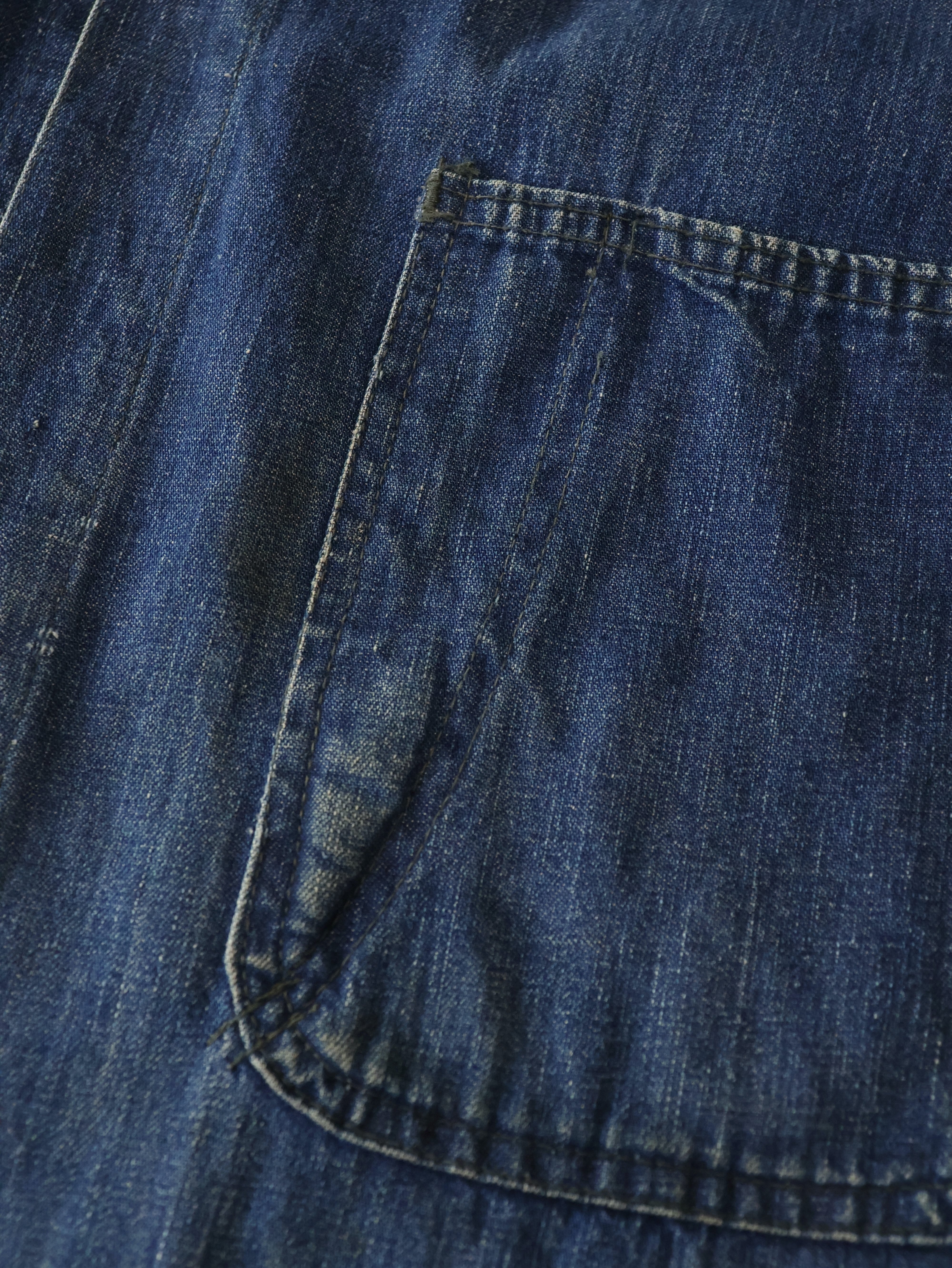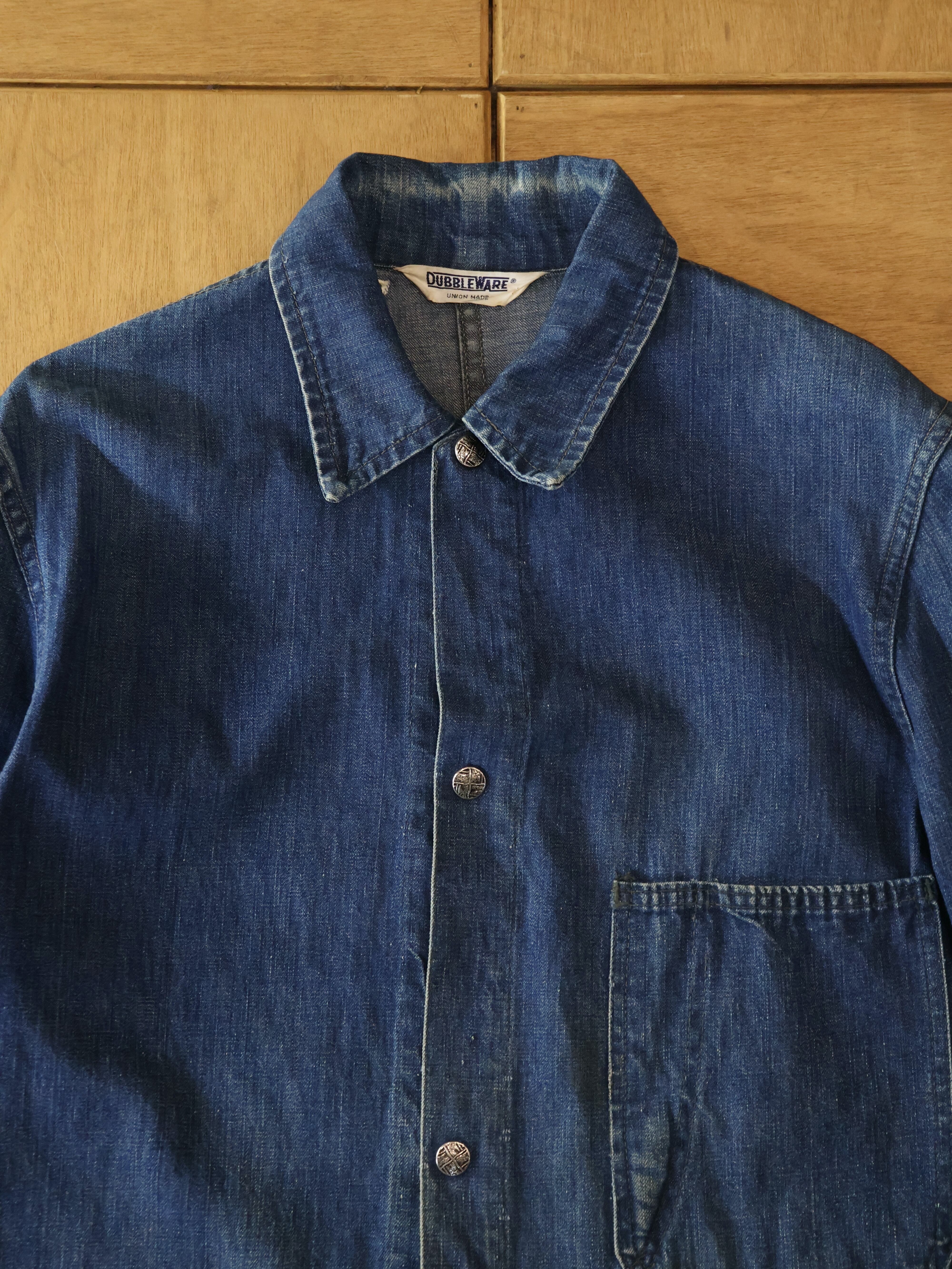 50s DUBBLE WARE denim coverall L程 インディゴブルー デニム カバーオール 卍スナップ ビンテージワーク 三角タグ ダブルウェア【0011】