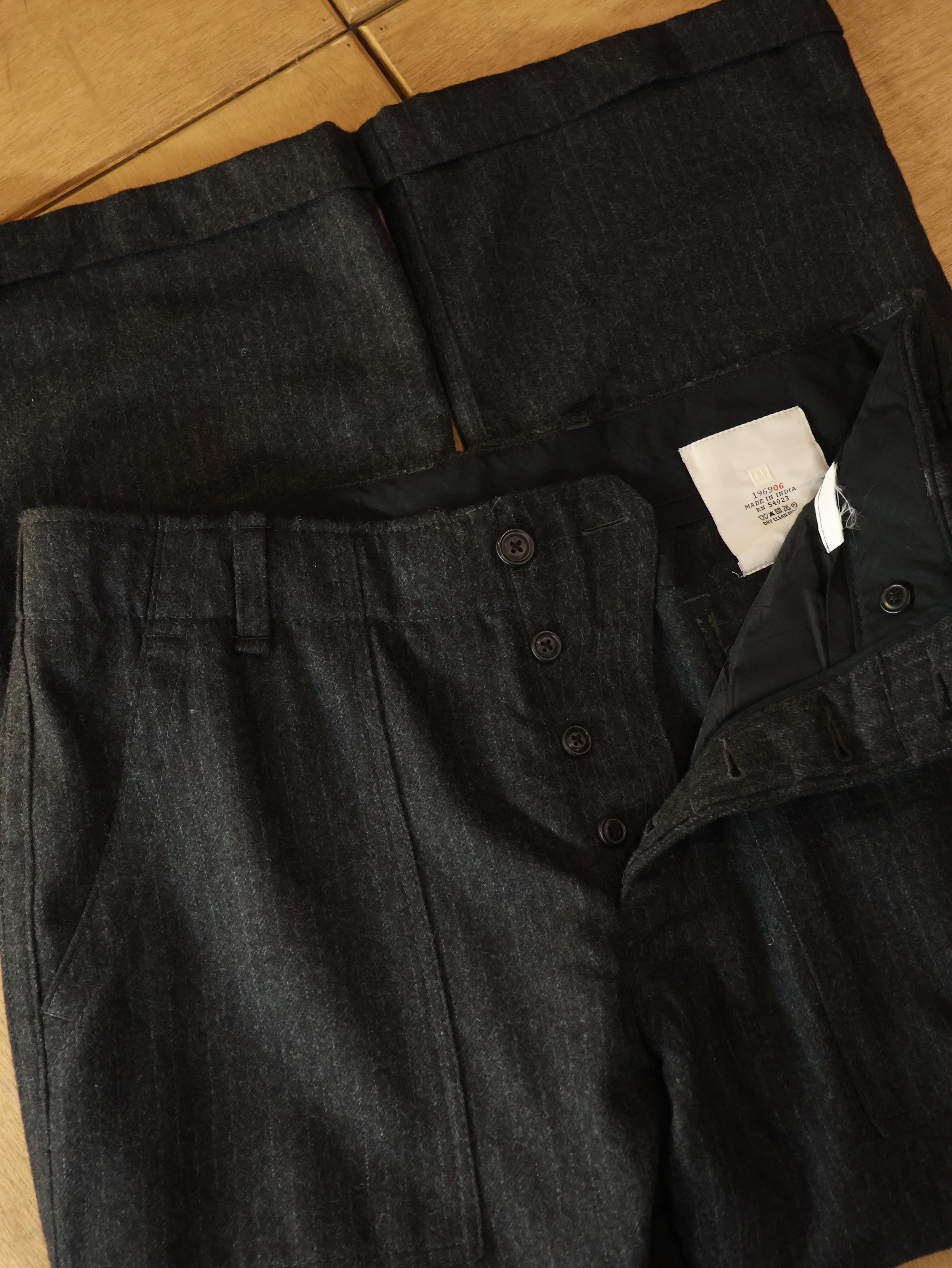 00s GAP wool striped baker pants 表記W36 チャコールグレー ウール ベイカーパンツ チョークストライプ ギャップ【0001】
