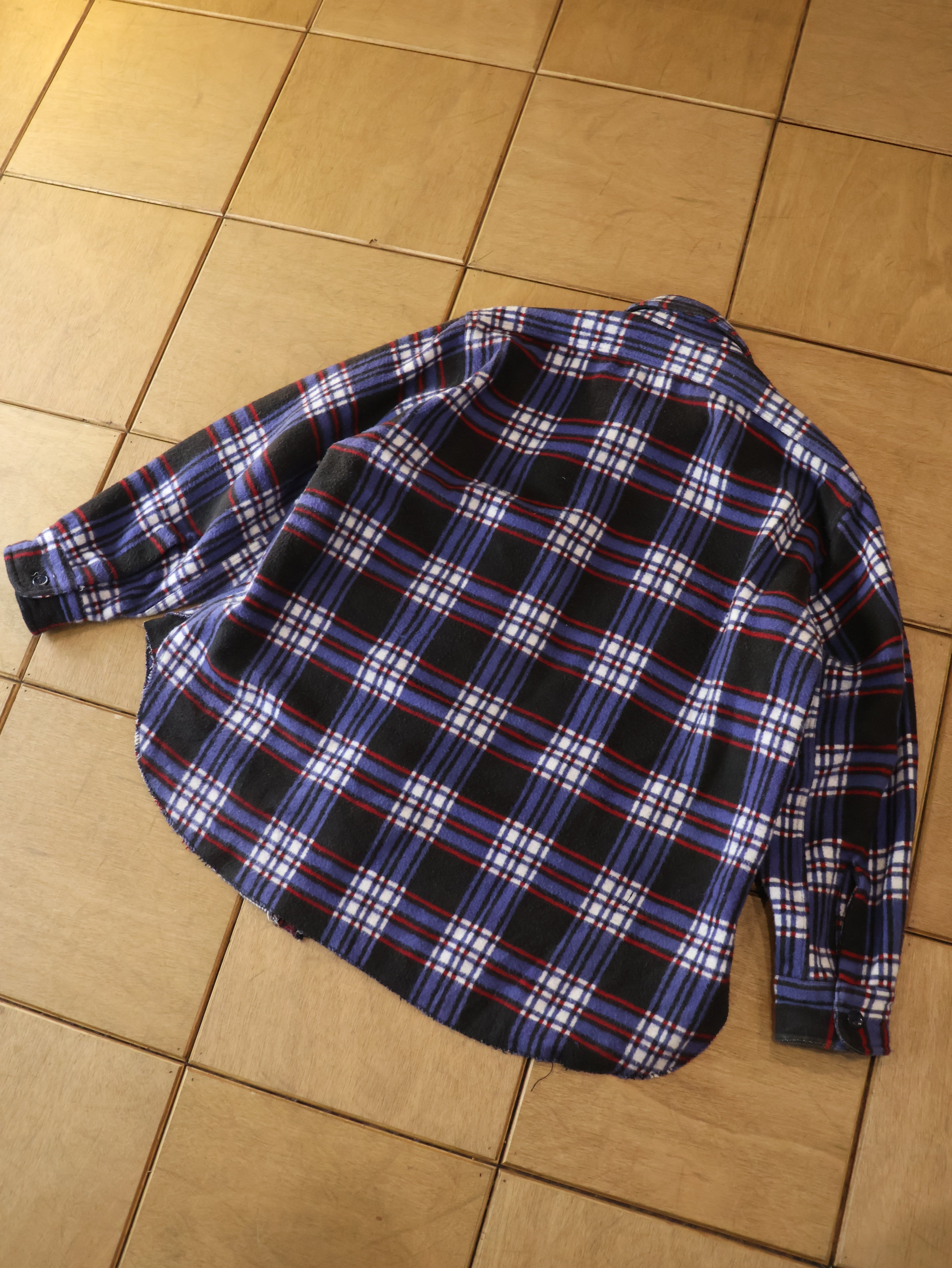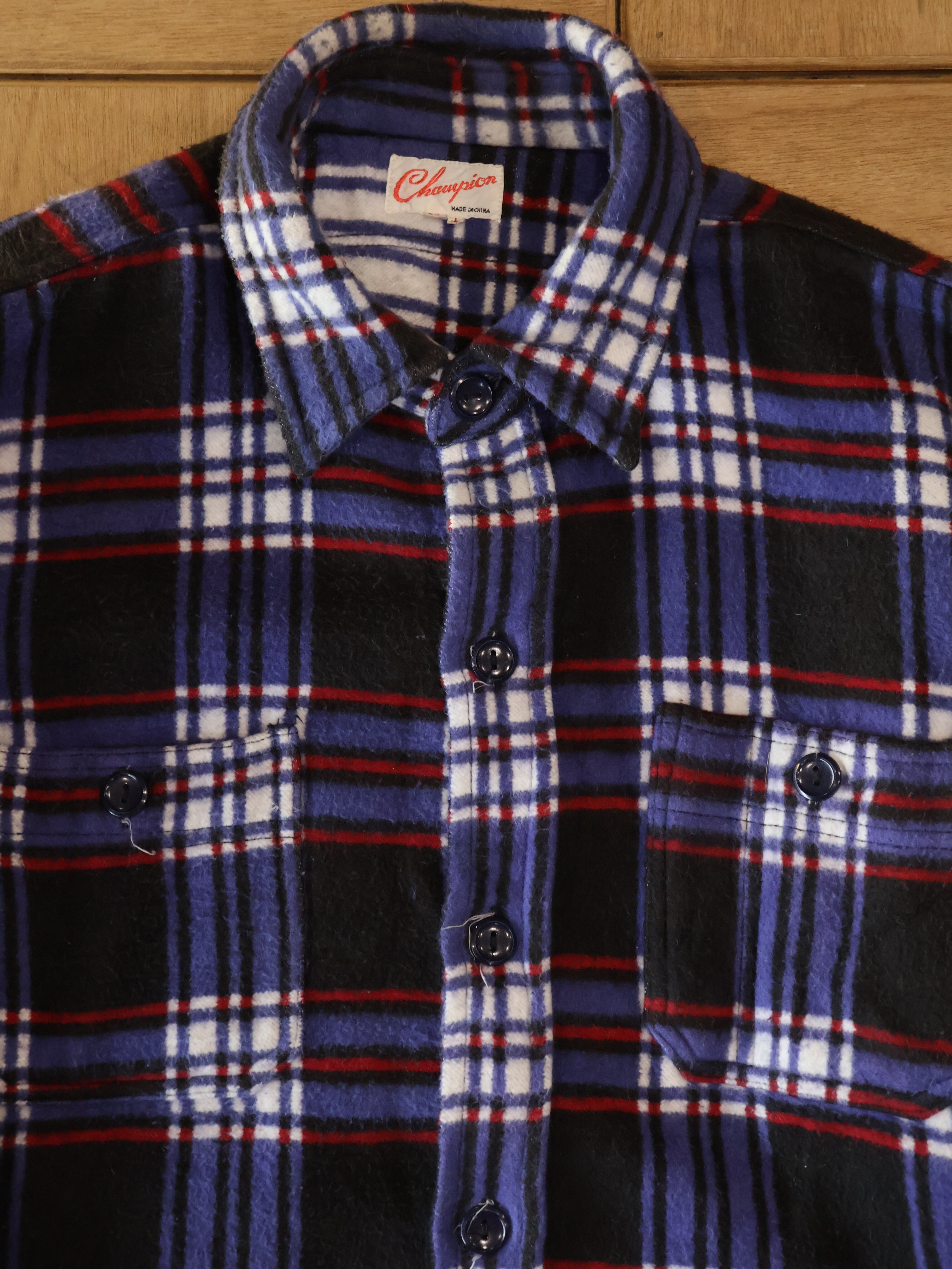 70s Champion heavy flannel shirt 表記L チェック パープル マチ付き ヘビネル チャンピオン【0034】