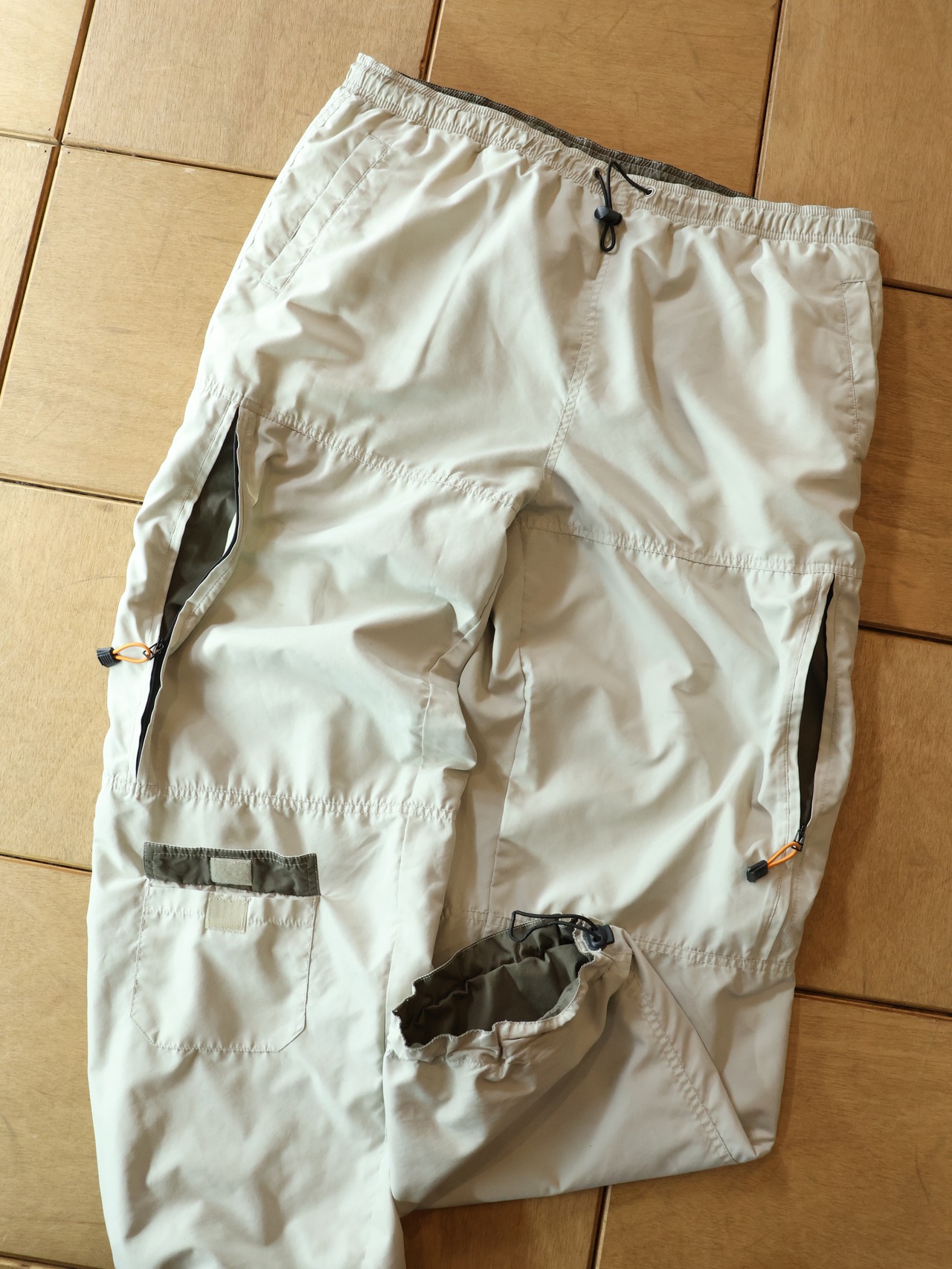 00s double face gimmick cargo 表記L オリーブ×オフホワイト ダブルフェイス ギミックカーゴ イージーパンツ リバーシブル 【0077】