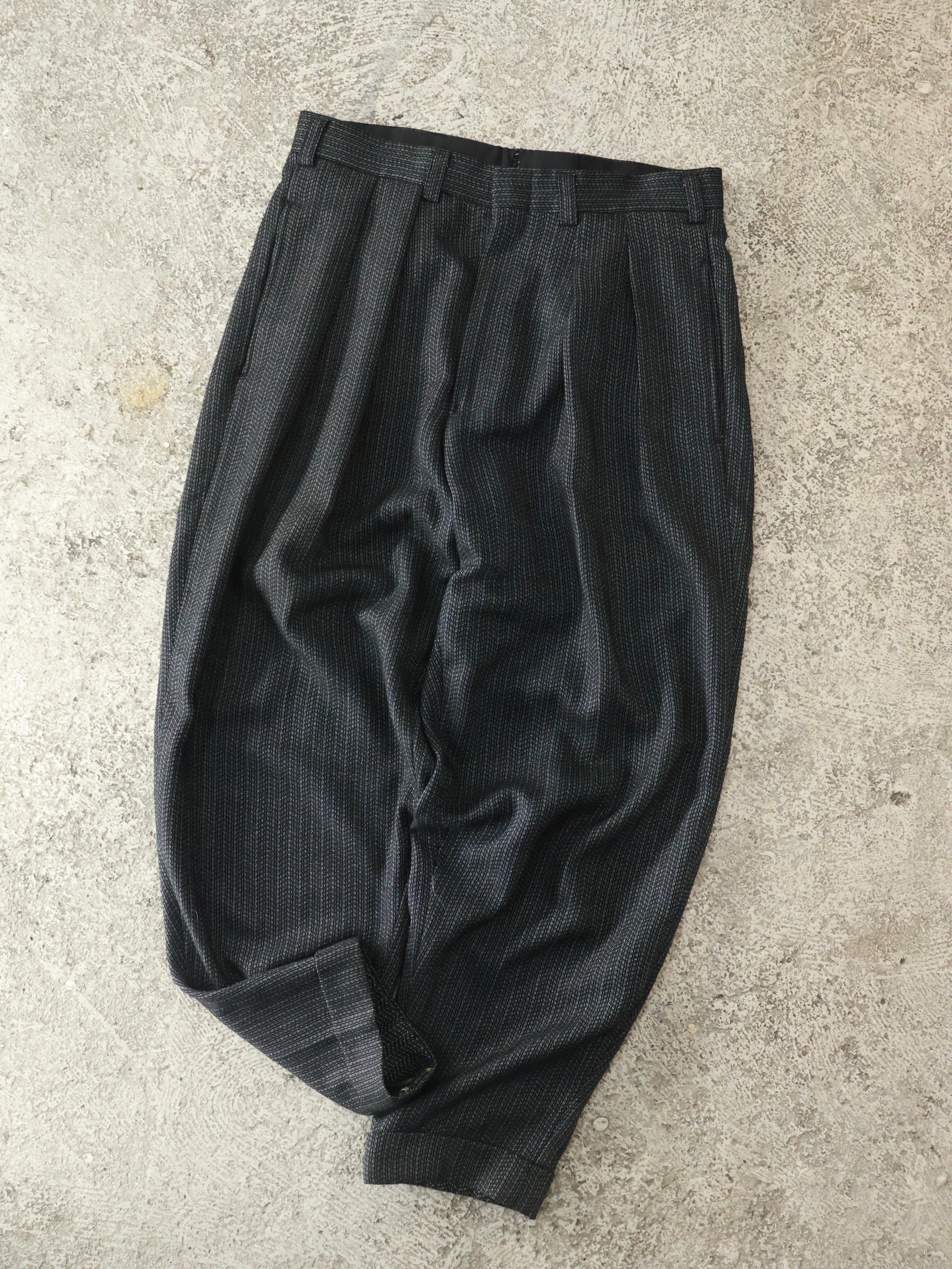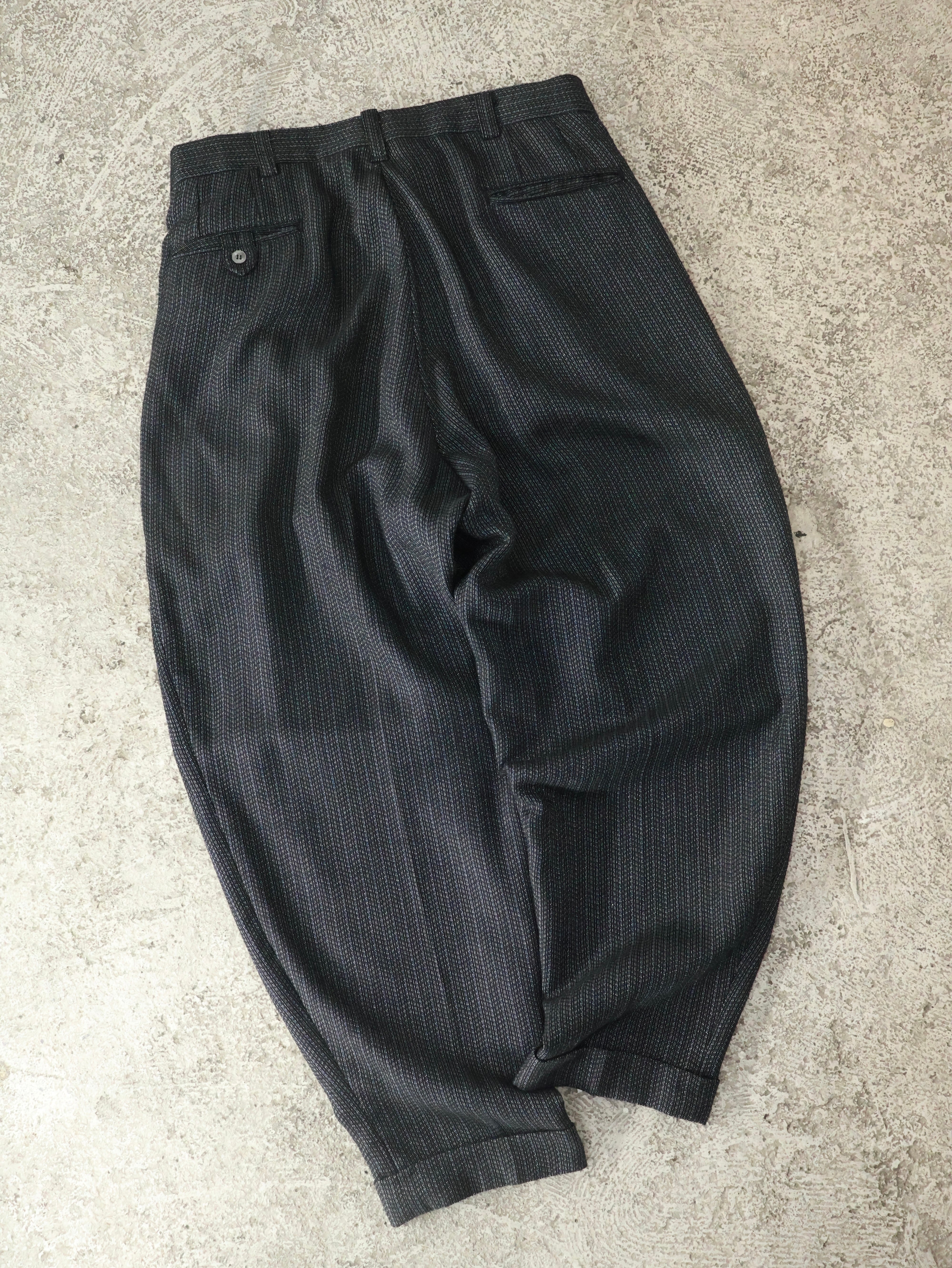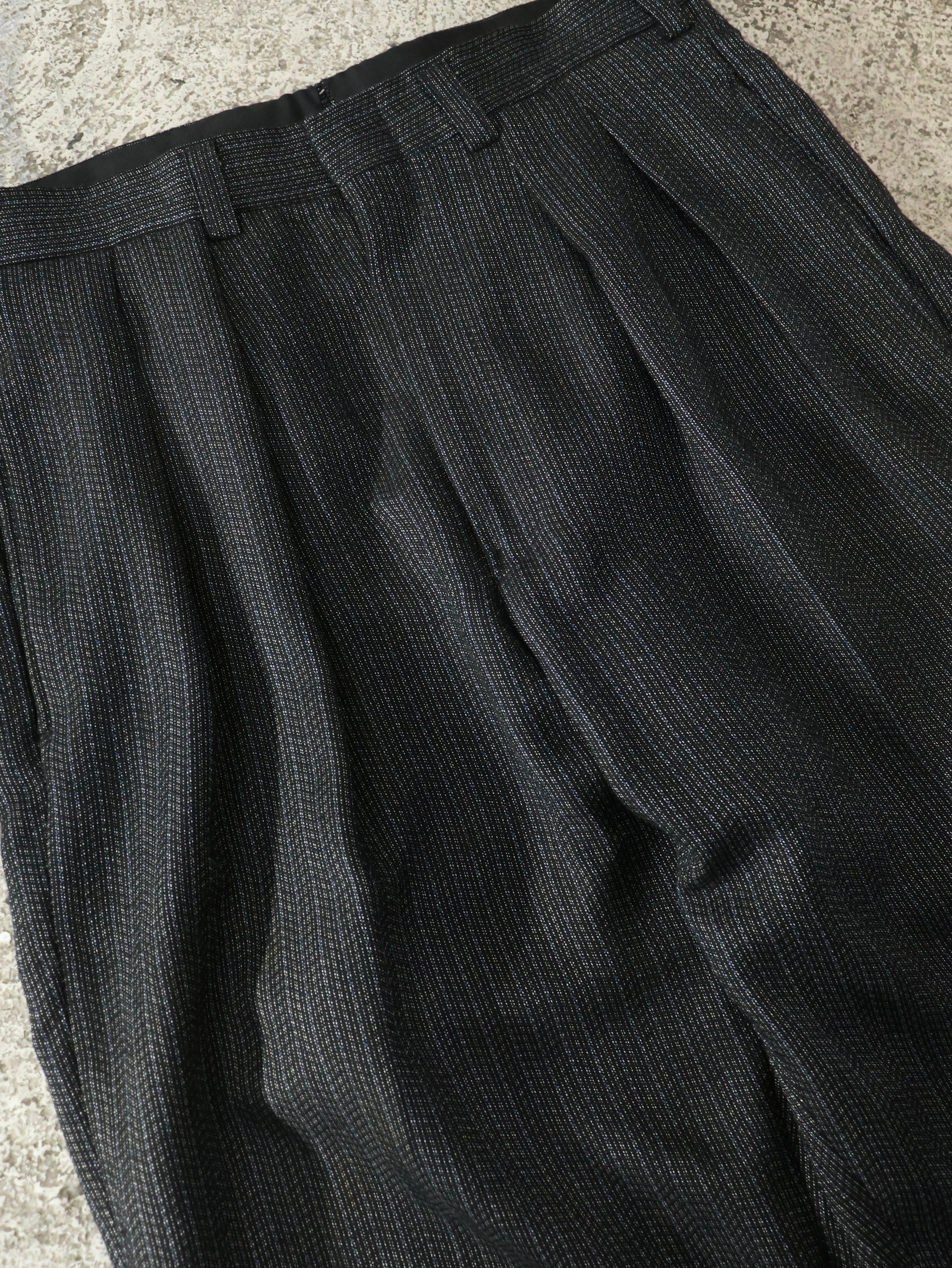 80s black jacquard cotton/rayon? trousers W34程 ブラック 織り柄 スラックス タックパンツ 42TALON【0090】