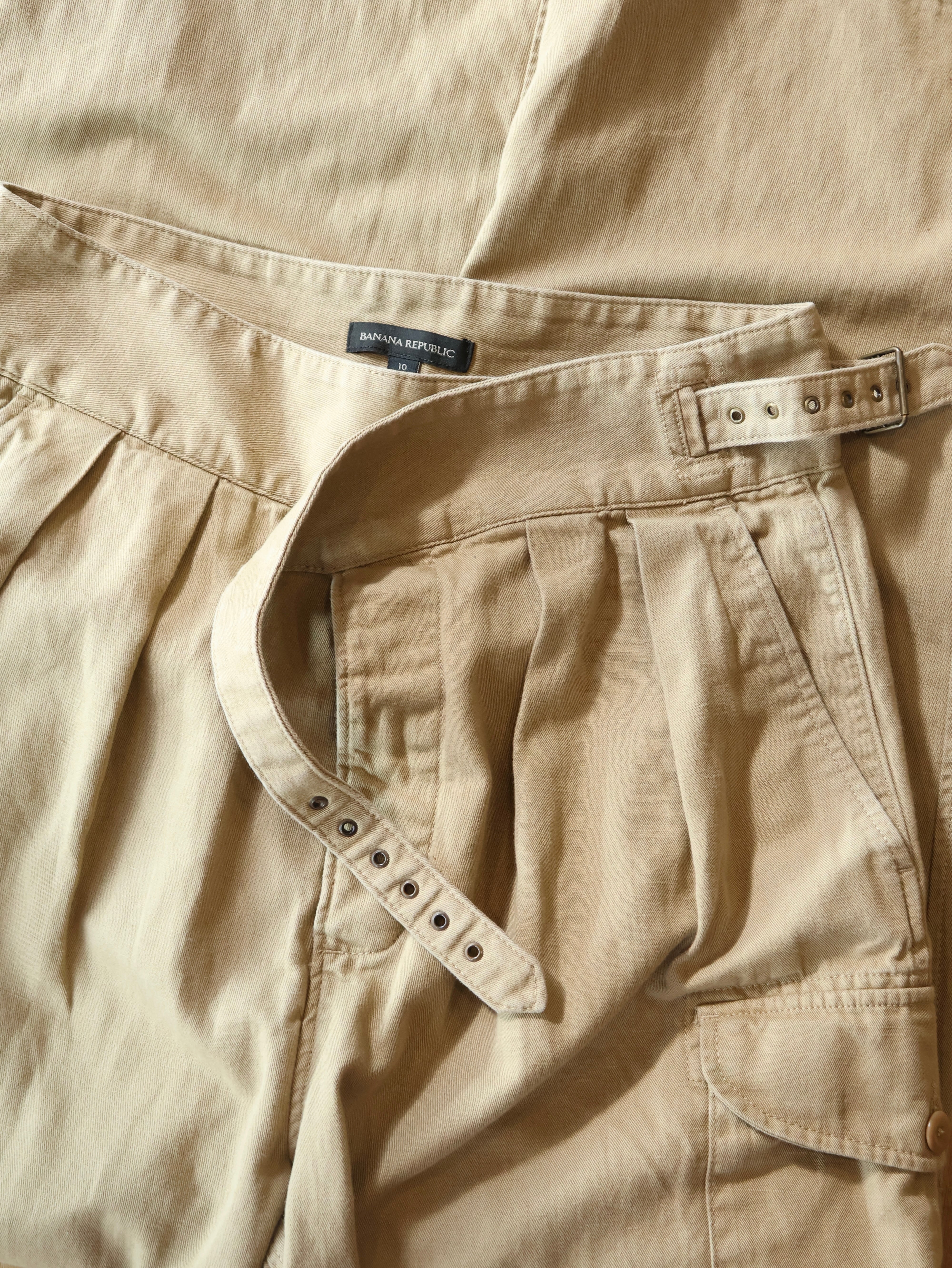 BANANA REPUBLIC リネン混コットンドリル グルカパンツ 実寸W31-34 カーゴパンツ バナナリパブリック【0108】