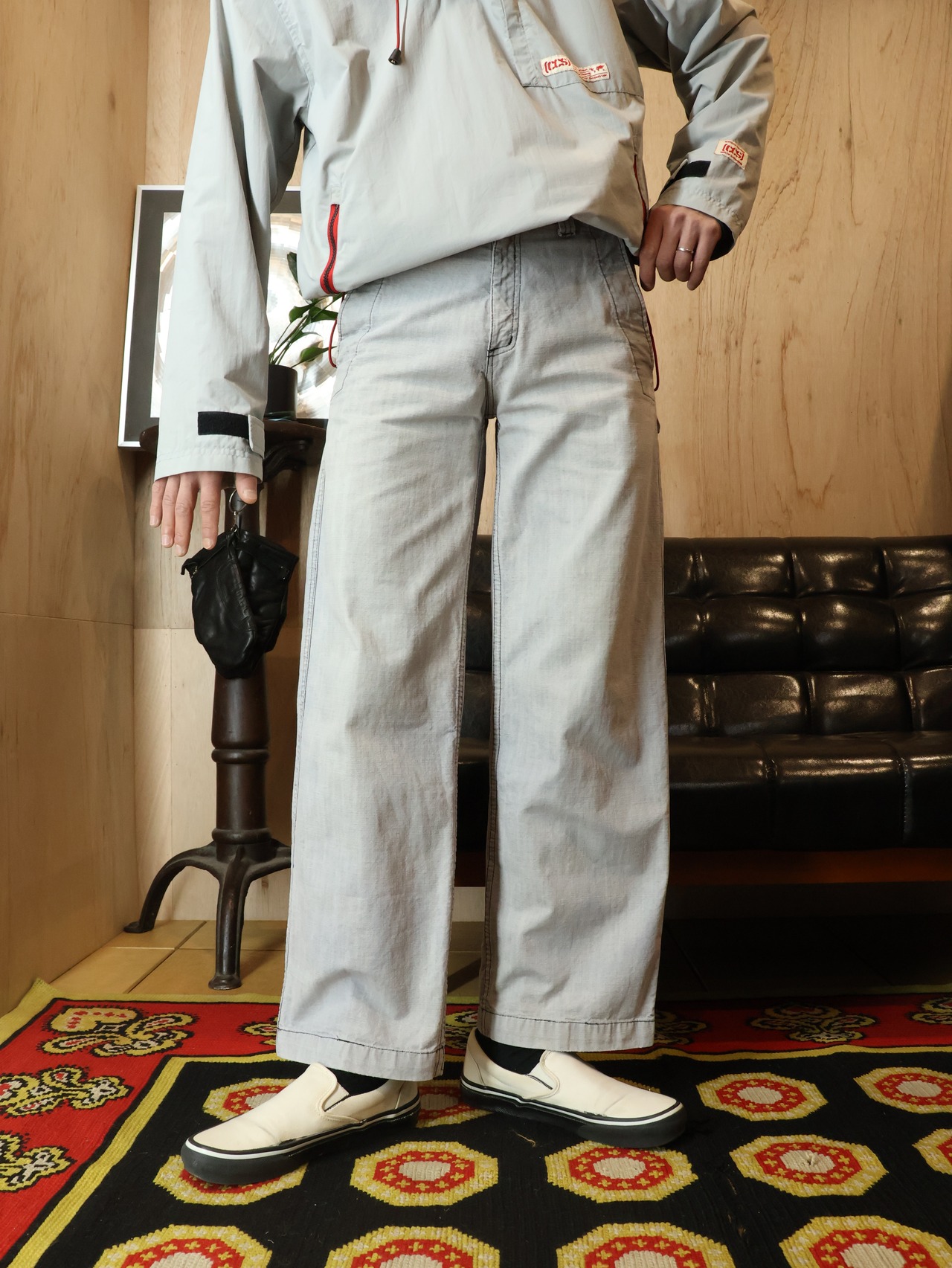 実寸 : ウエスト76cm / 股上28cm / 股下72cm / 渡幅29cm / 裾幅24cm / 総丈98cm