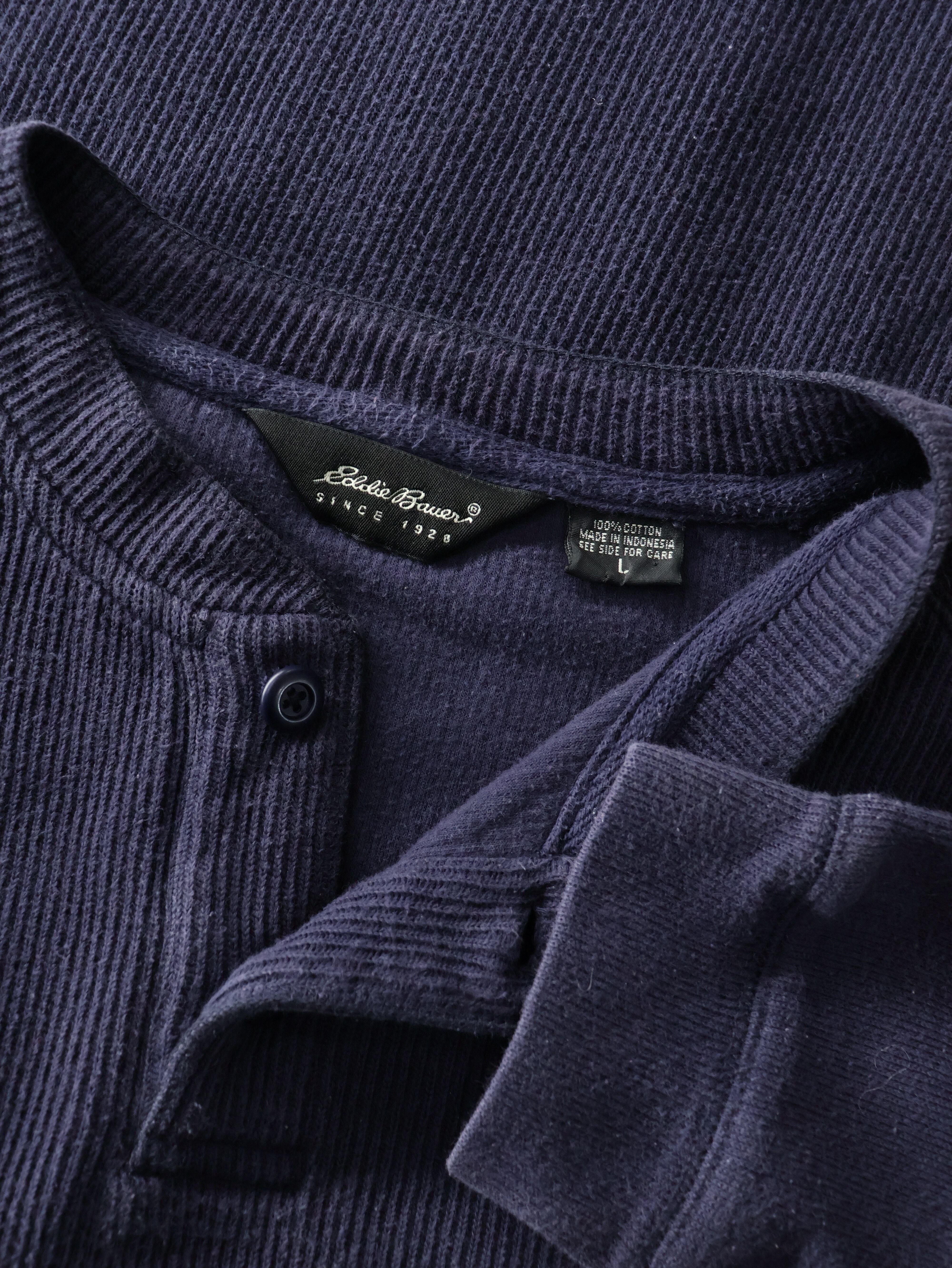 00s EDDIE BAUER 茄子紺 ヘンリーネックカットソー 表記L エディーバウアー 【0115】