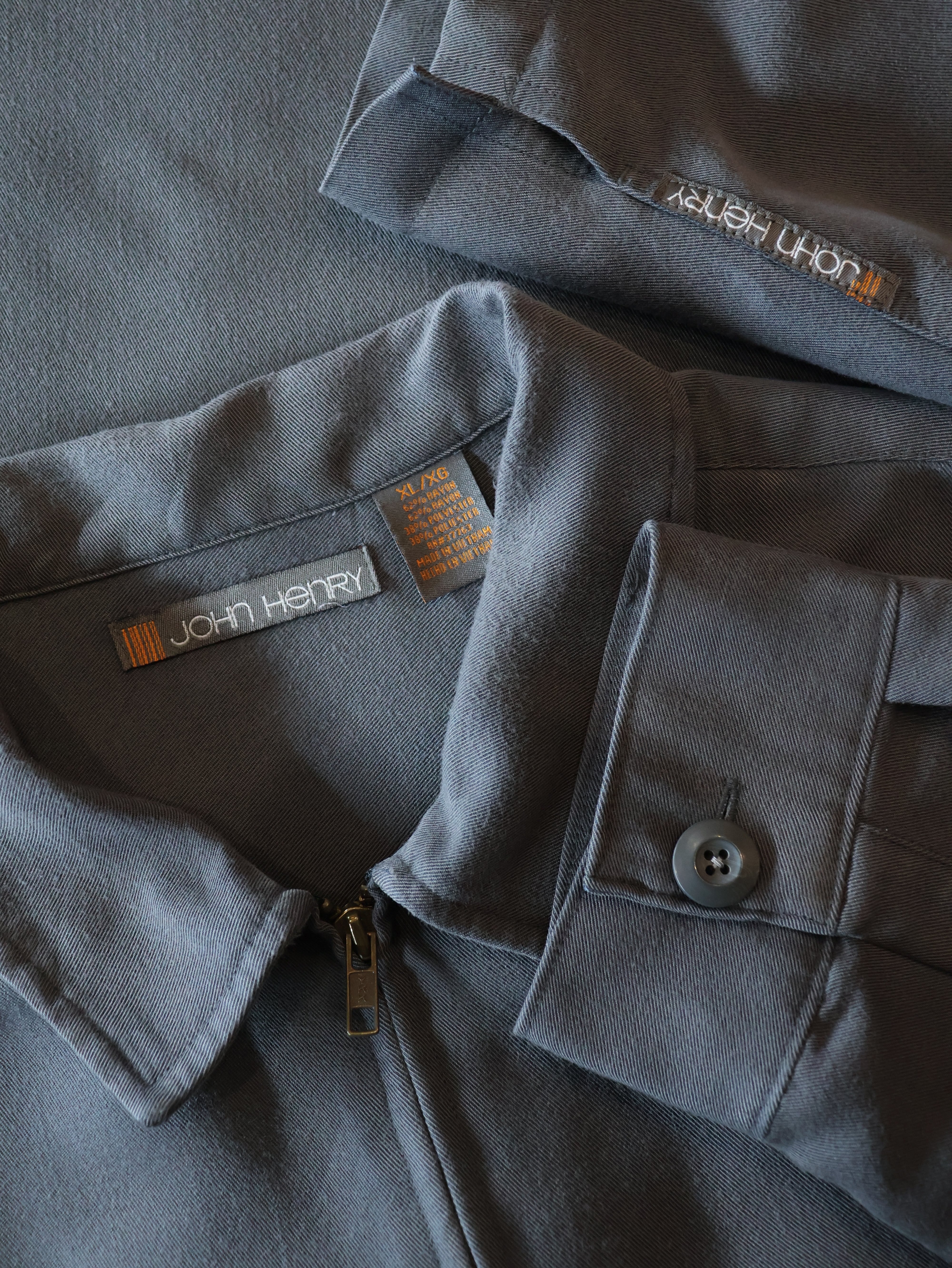 00s ポリ/レーヨン ギャバジンジャケット 表記XL ジップシャツ JOHN HENRY 【0128】