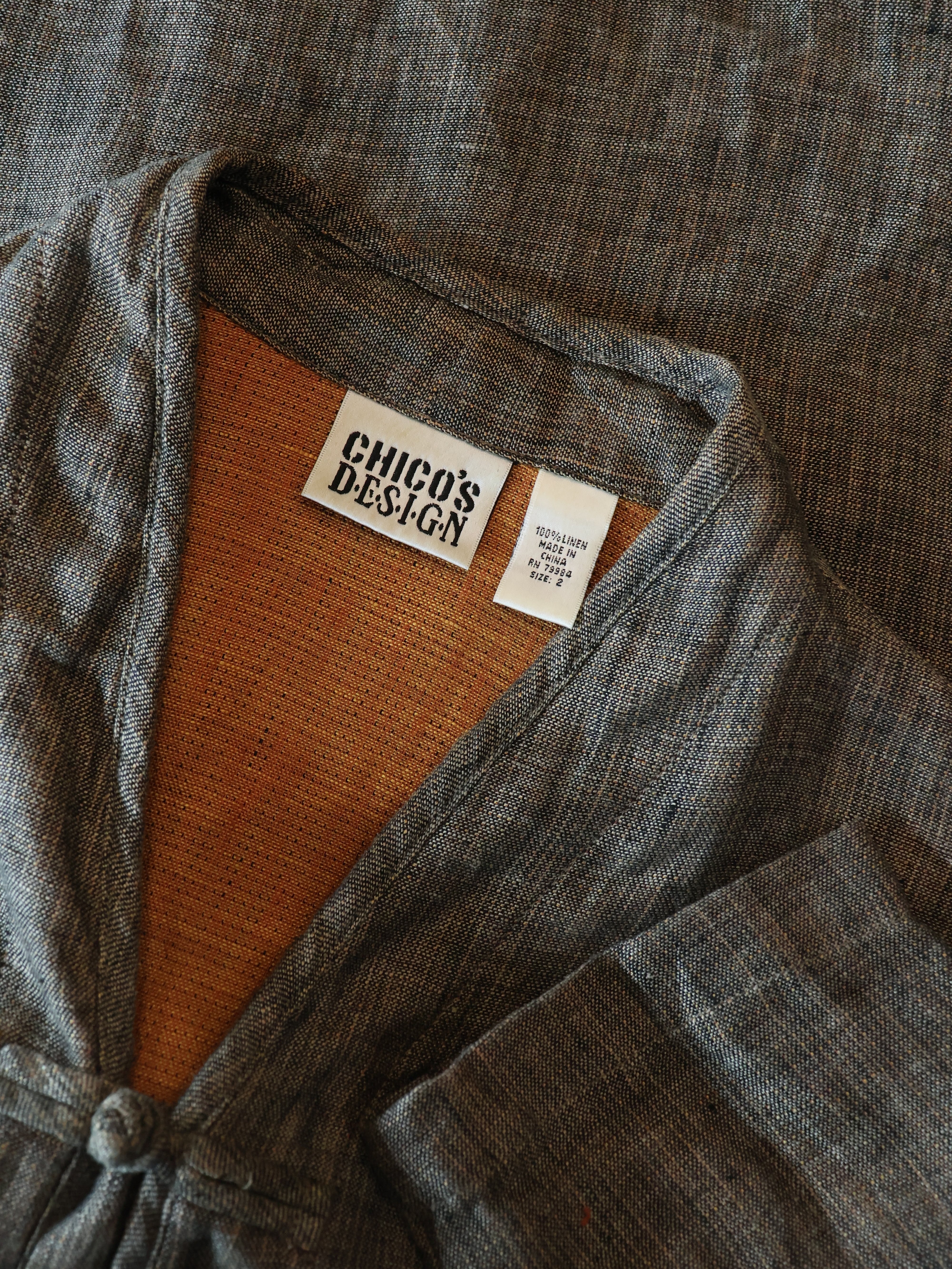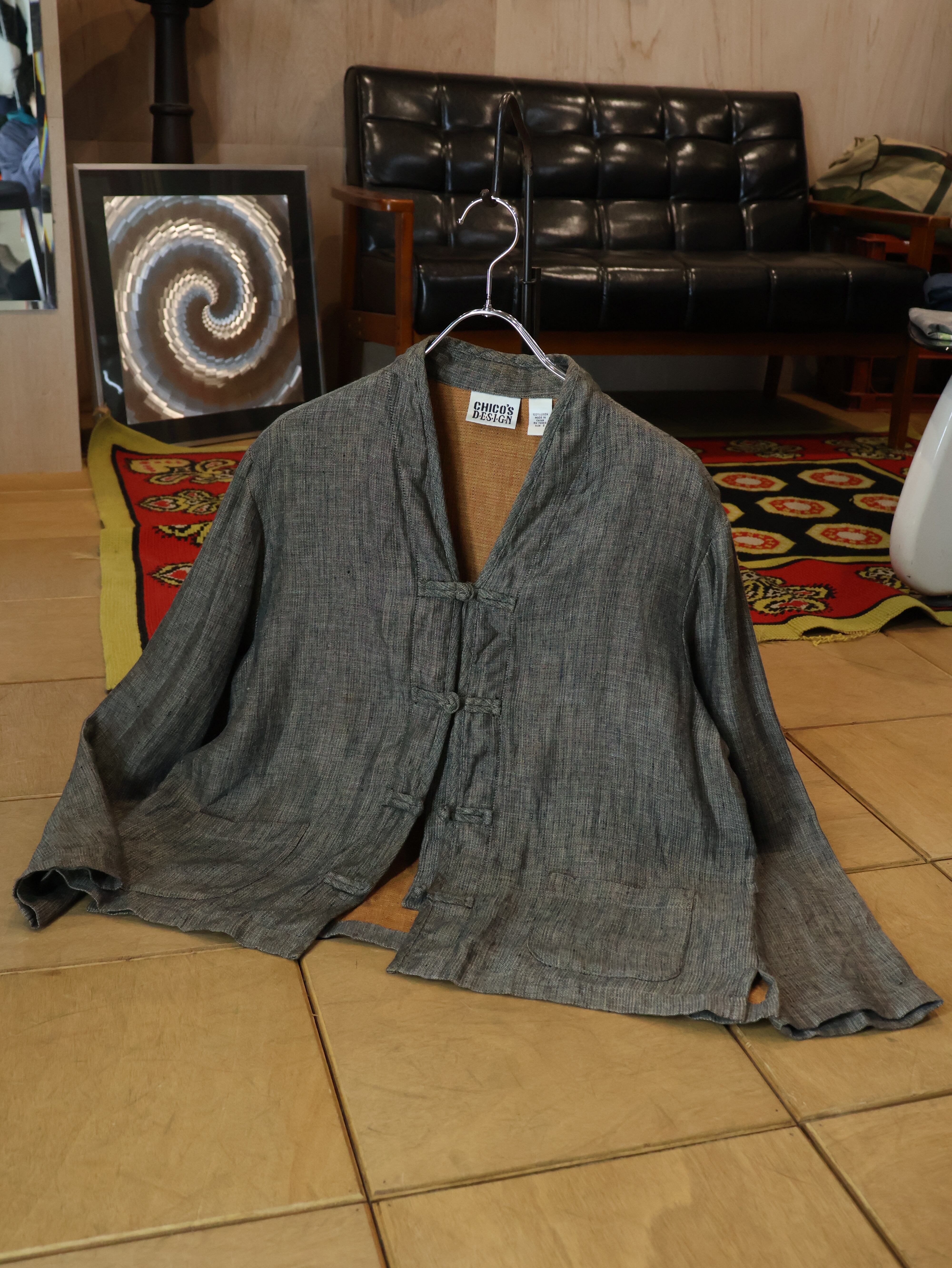 90s CHICO'S DESIGN リネンチャイナジャケット 表記2 ツートン シャツジャケット 作務衣 チコズデザイン【0138】