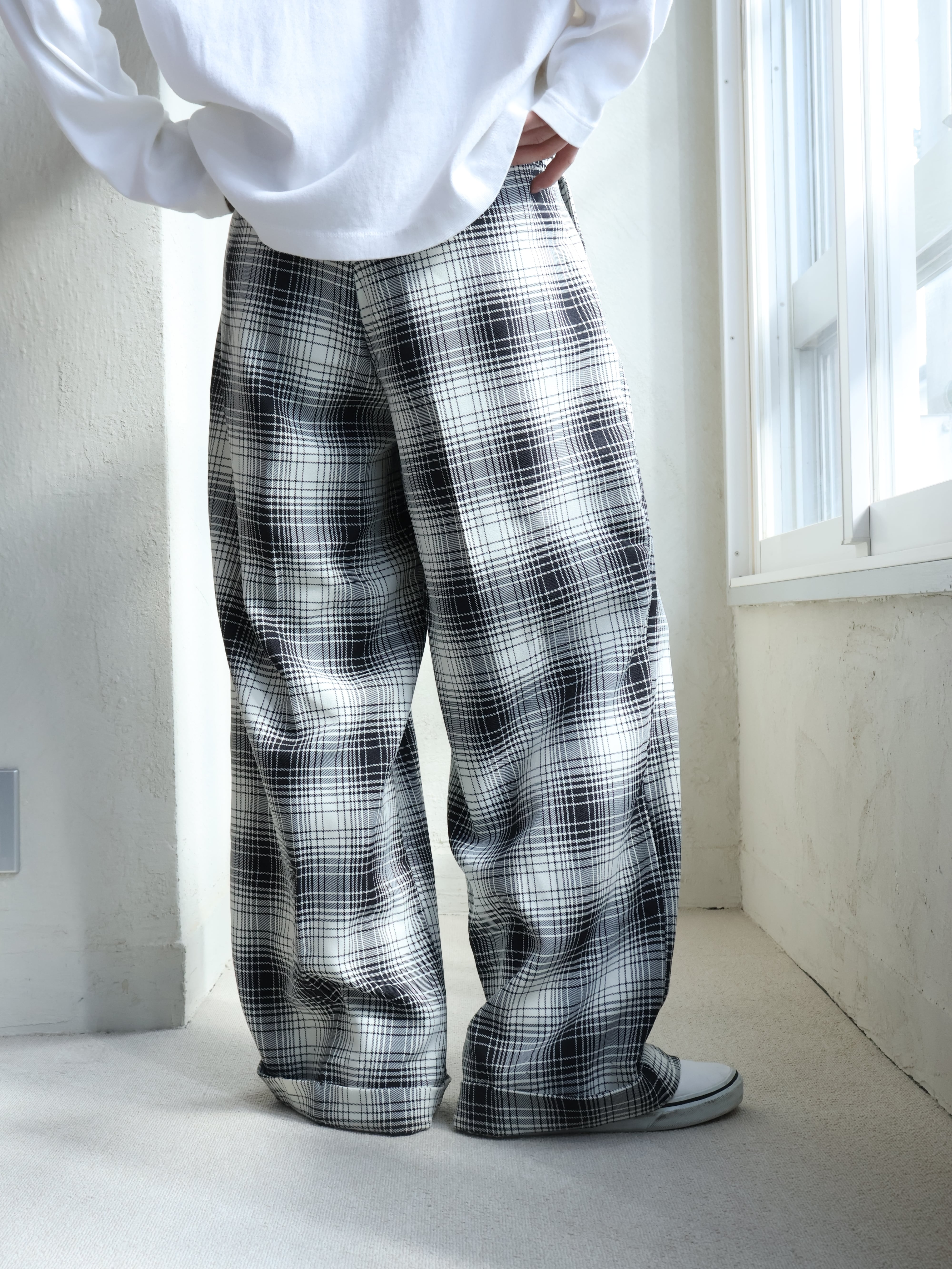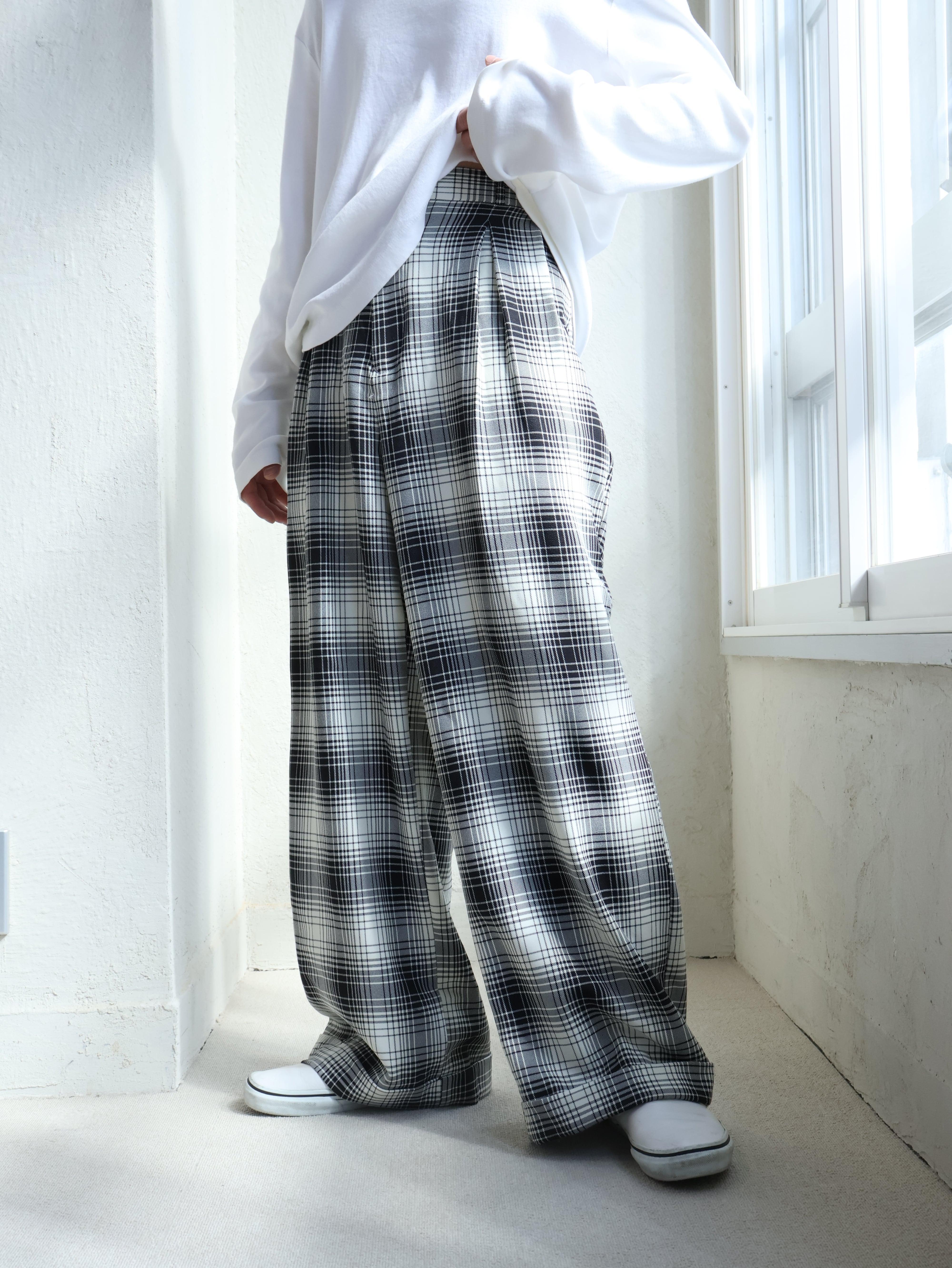 90s オンブレバギースラックス 表記W32/L30 ワイドパンツ シャドーチェック【0146】