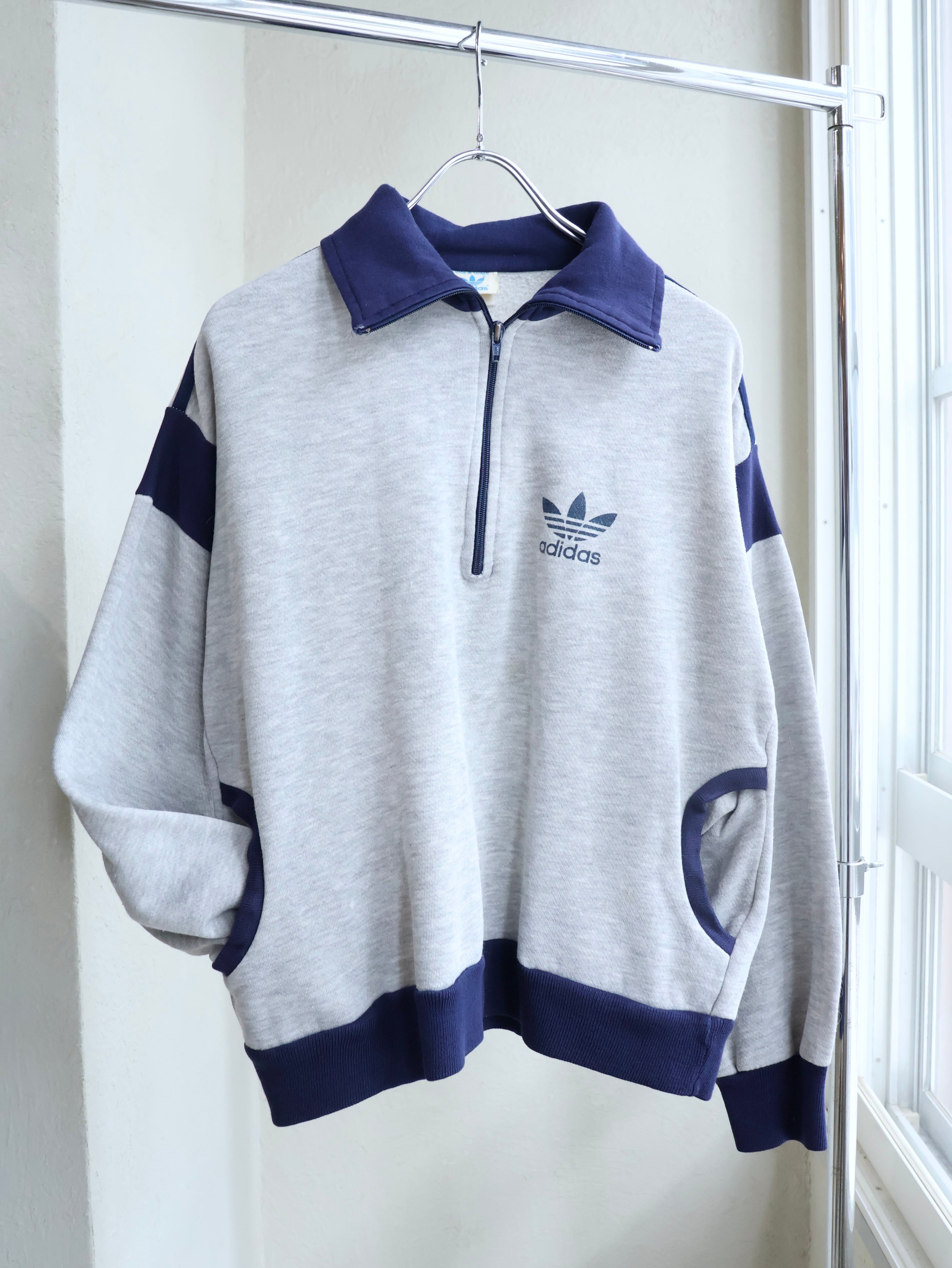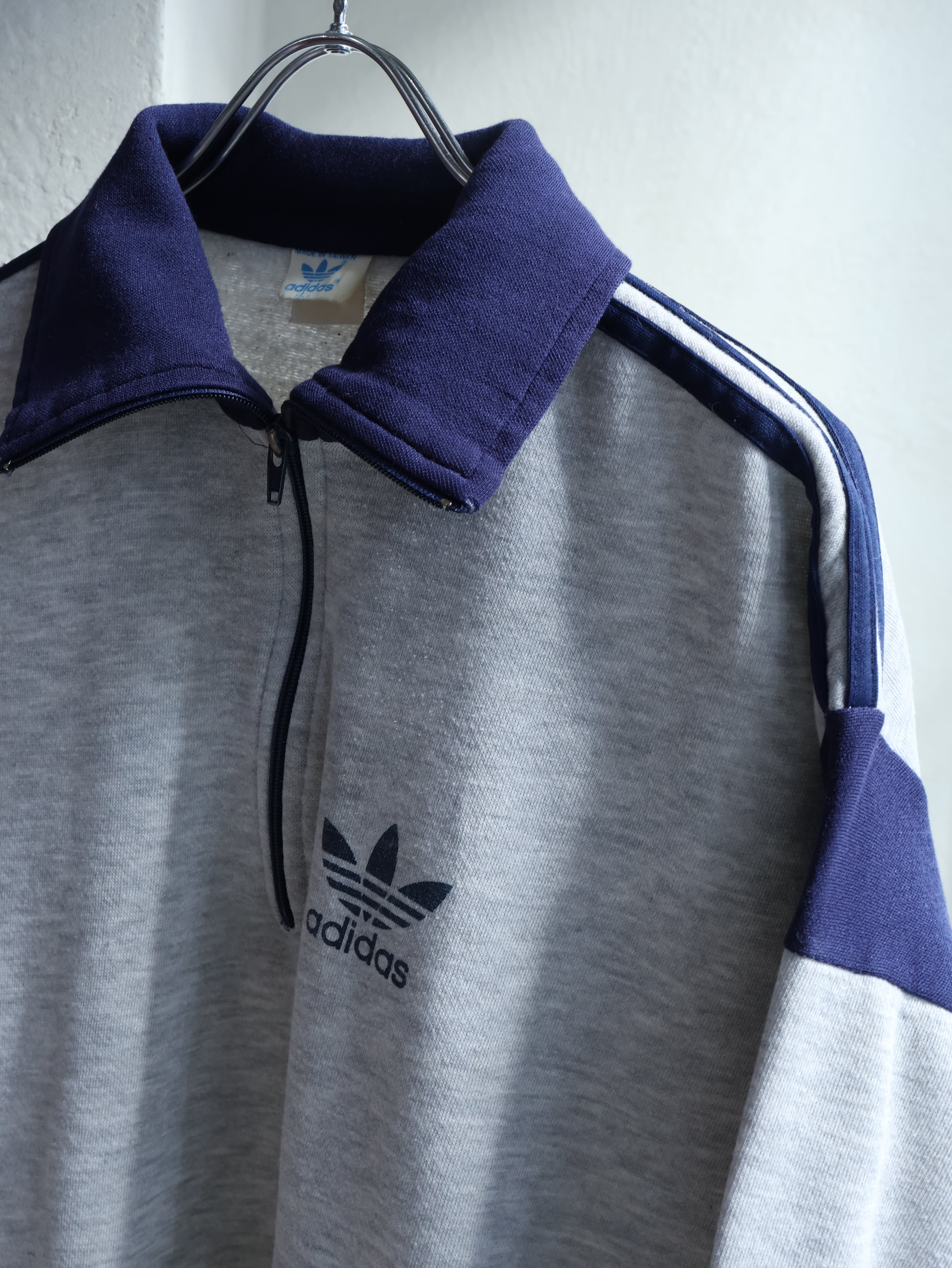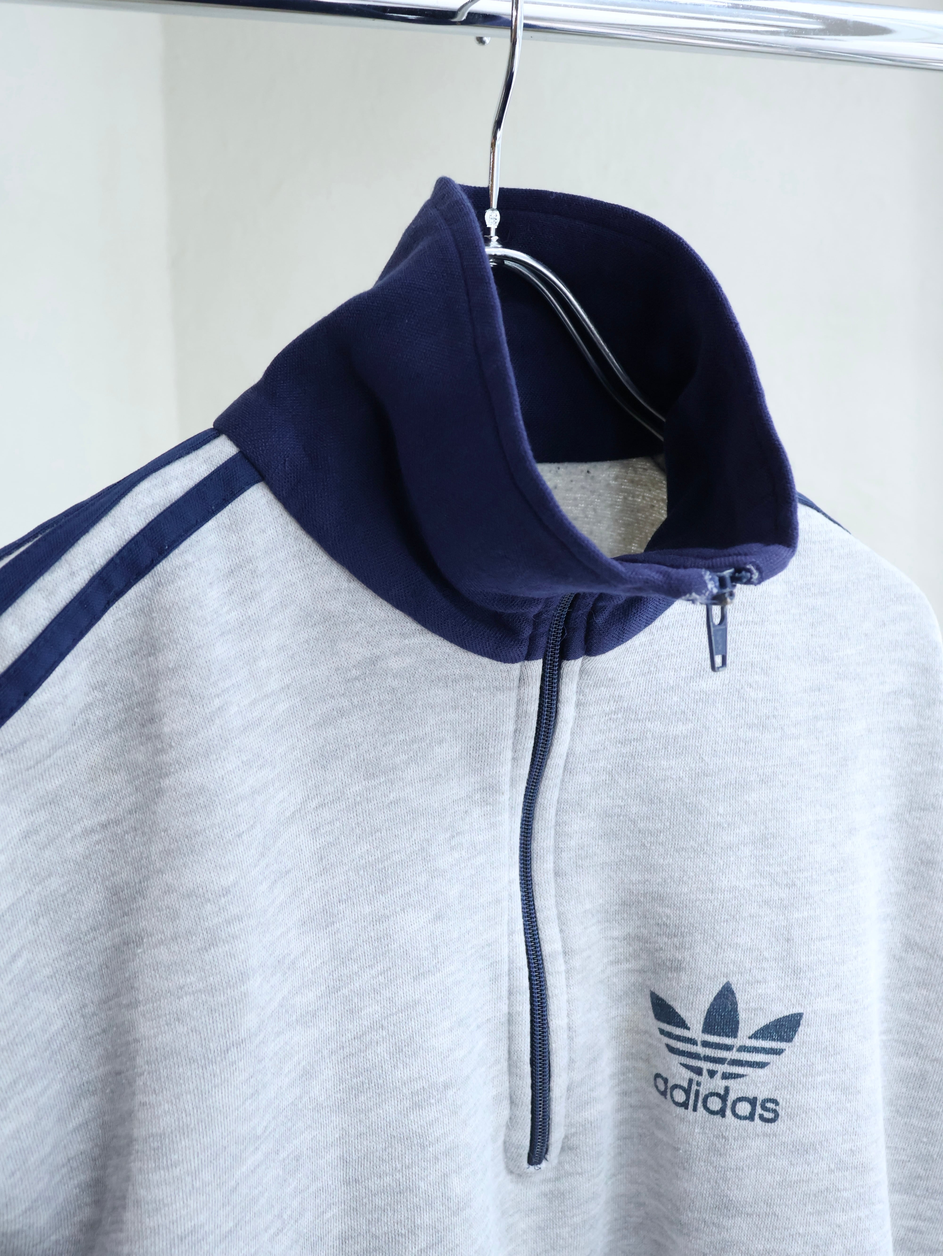 80s adidas スウェットプルオーバー 表記L トレフォイル ハーフジップ 台湾製 アディダス【0149】
