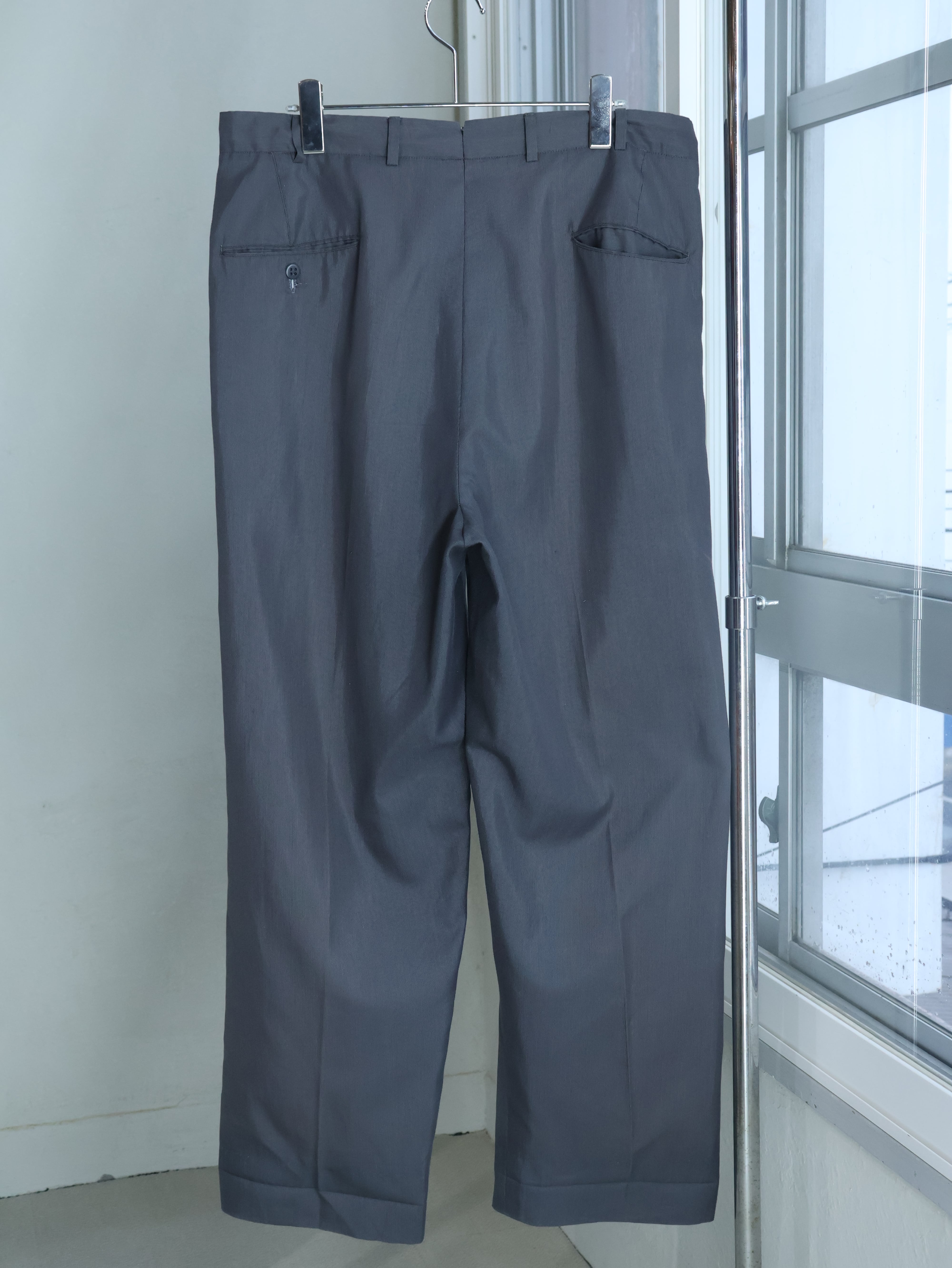 60s ピンストライプスラックス W34L30程 CONMAR アルミジッパー タックパンツ【0150】