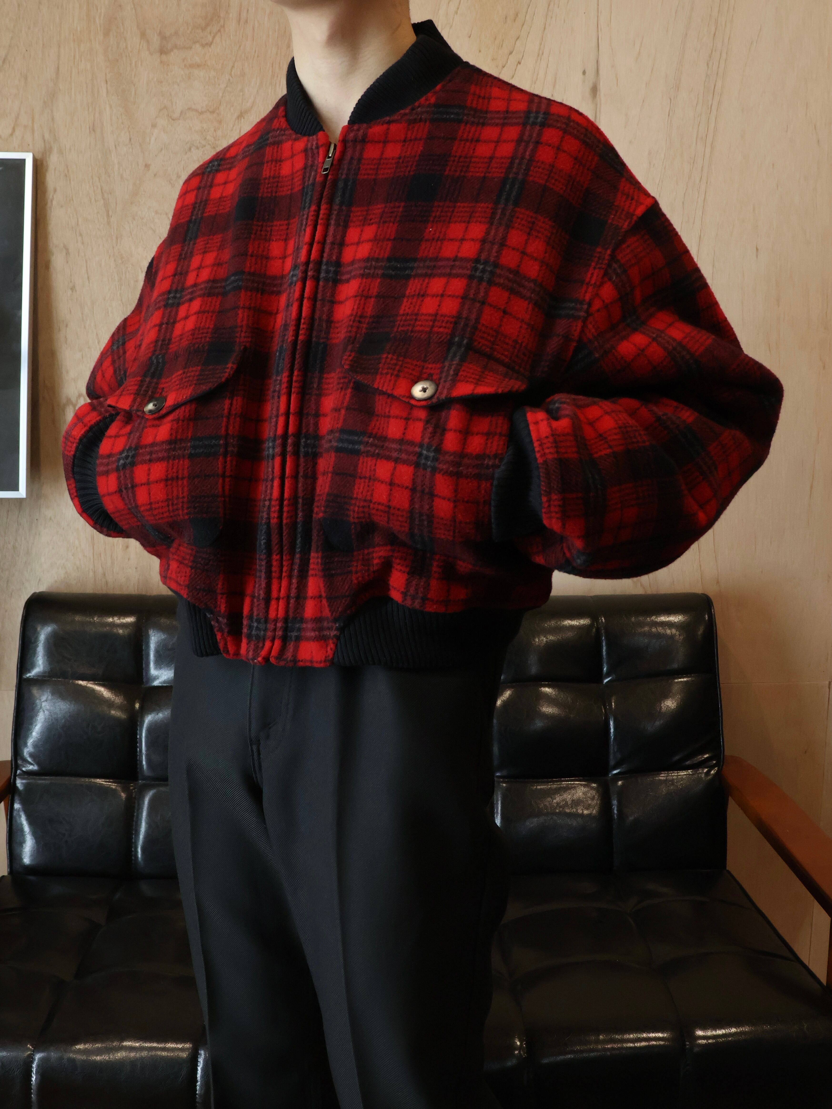 90s GAP ボンバージャケット 表記L ウールブルゾン シャドーチェック オールドギャップ【0155】