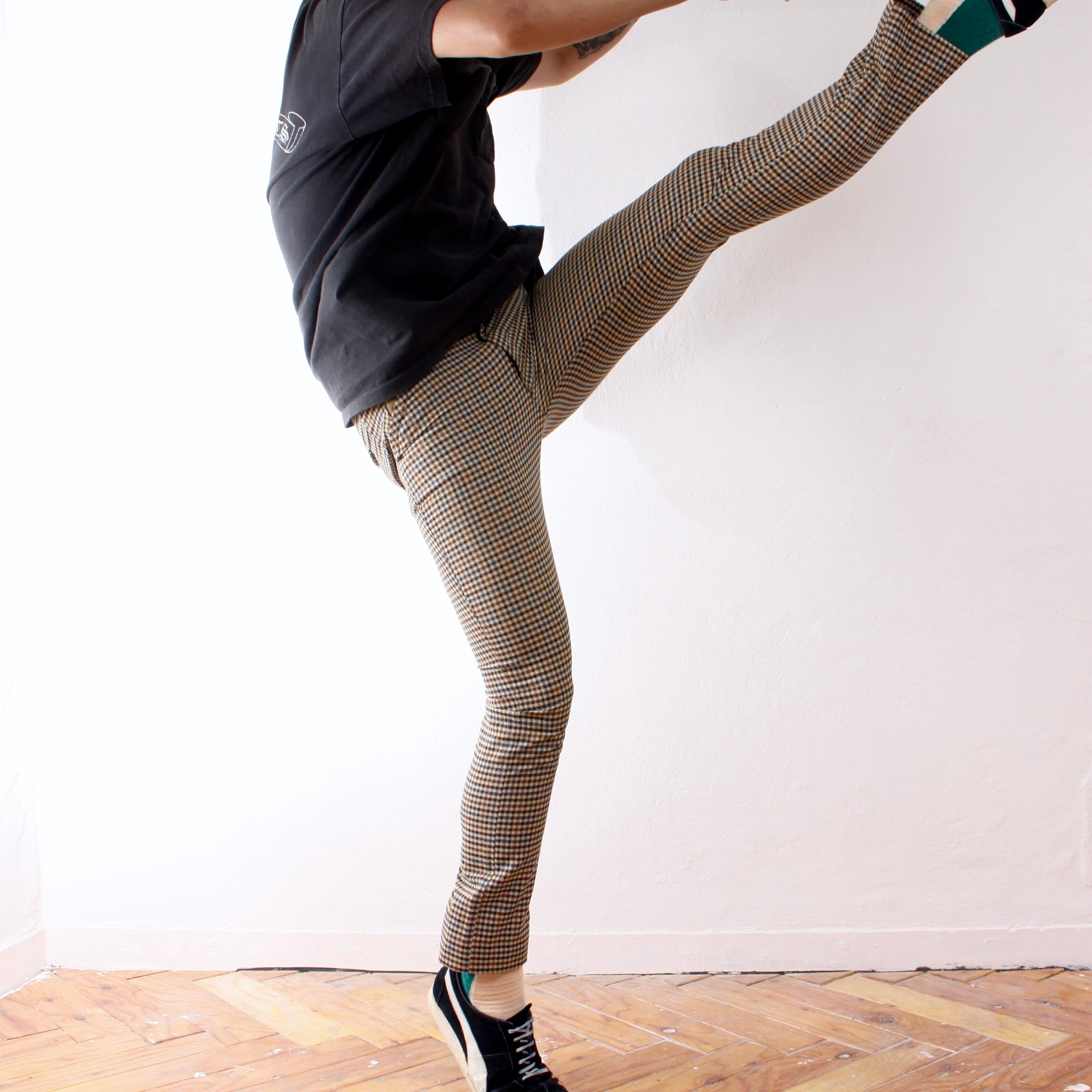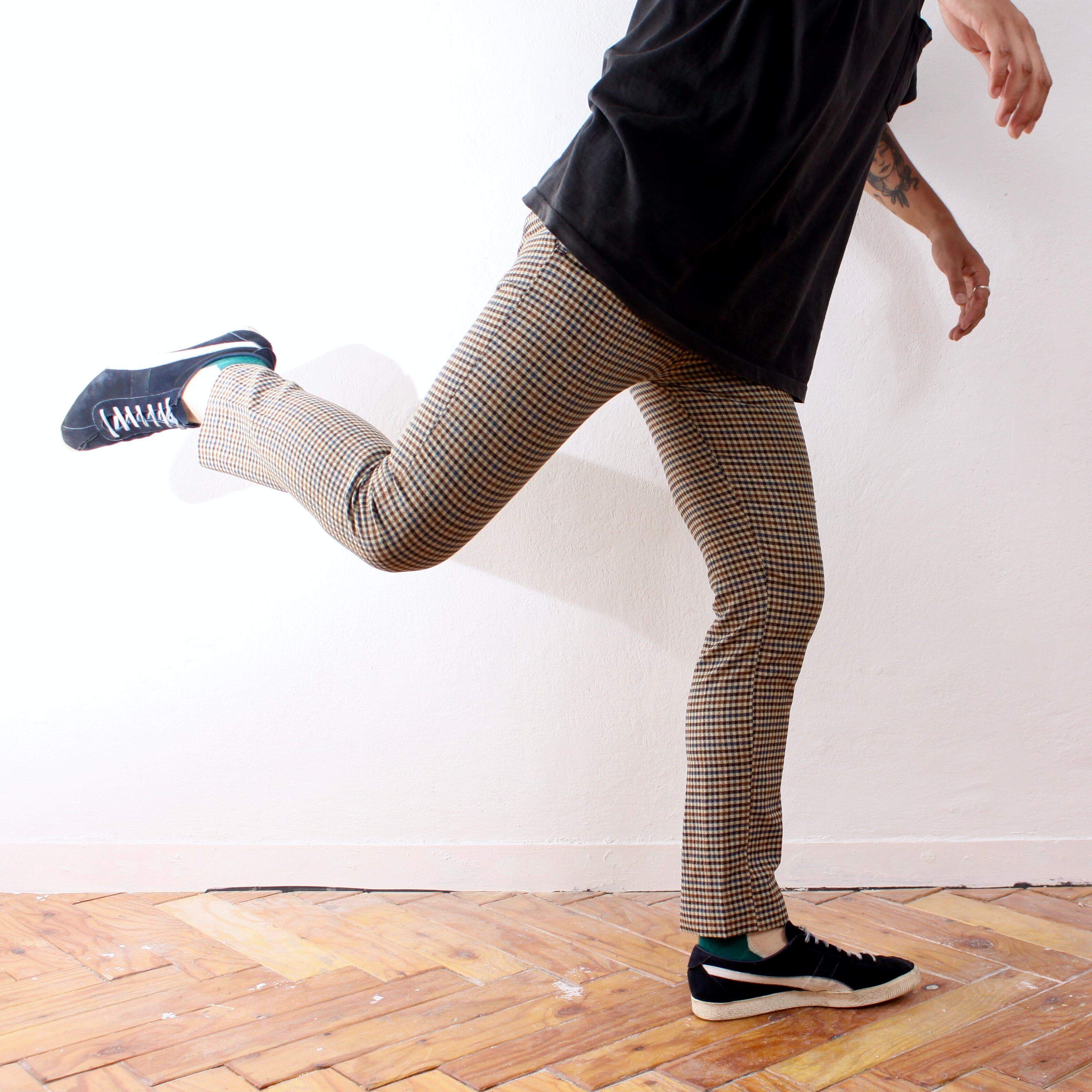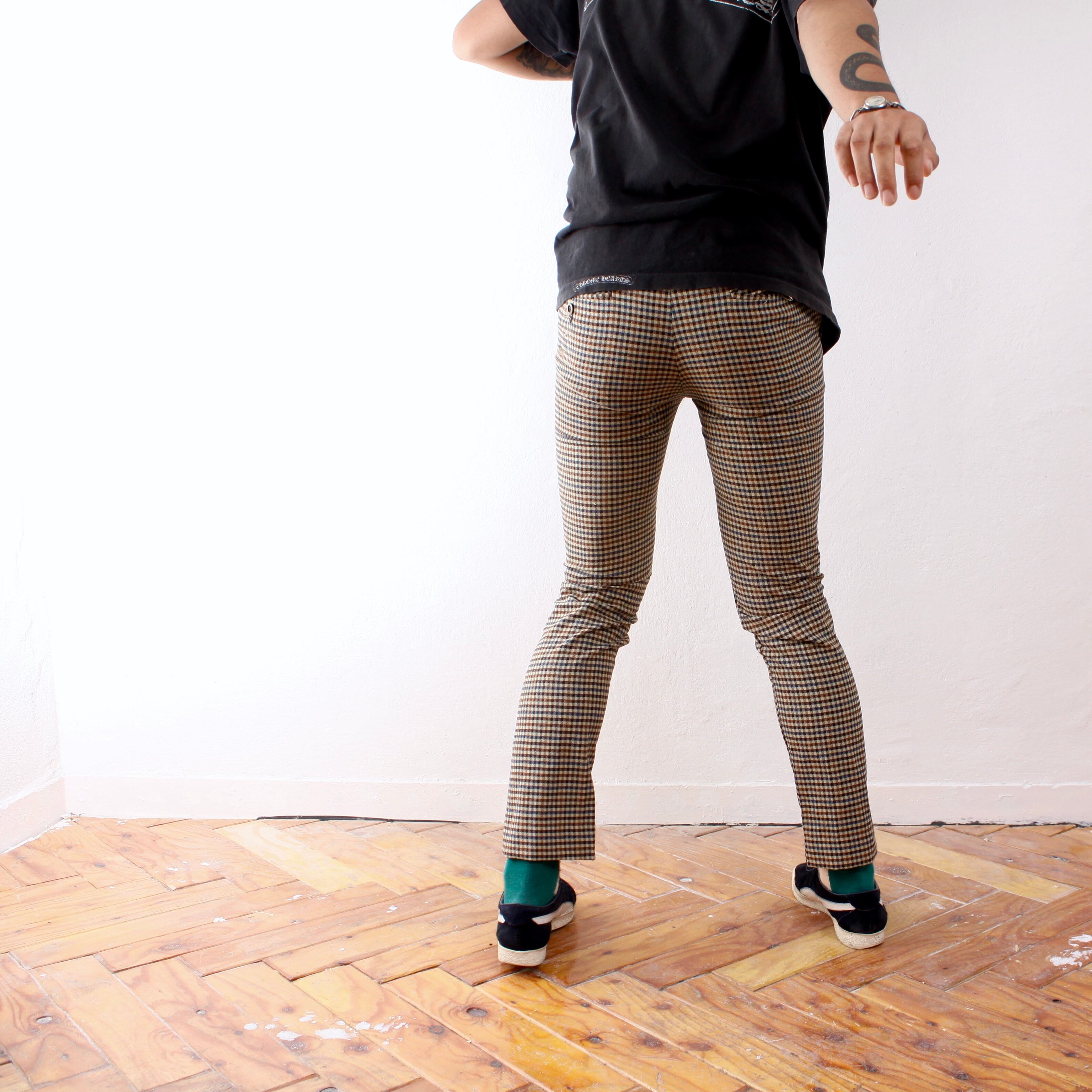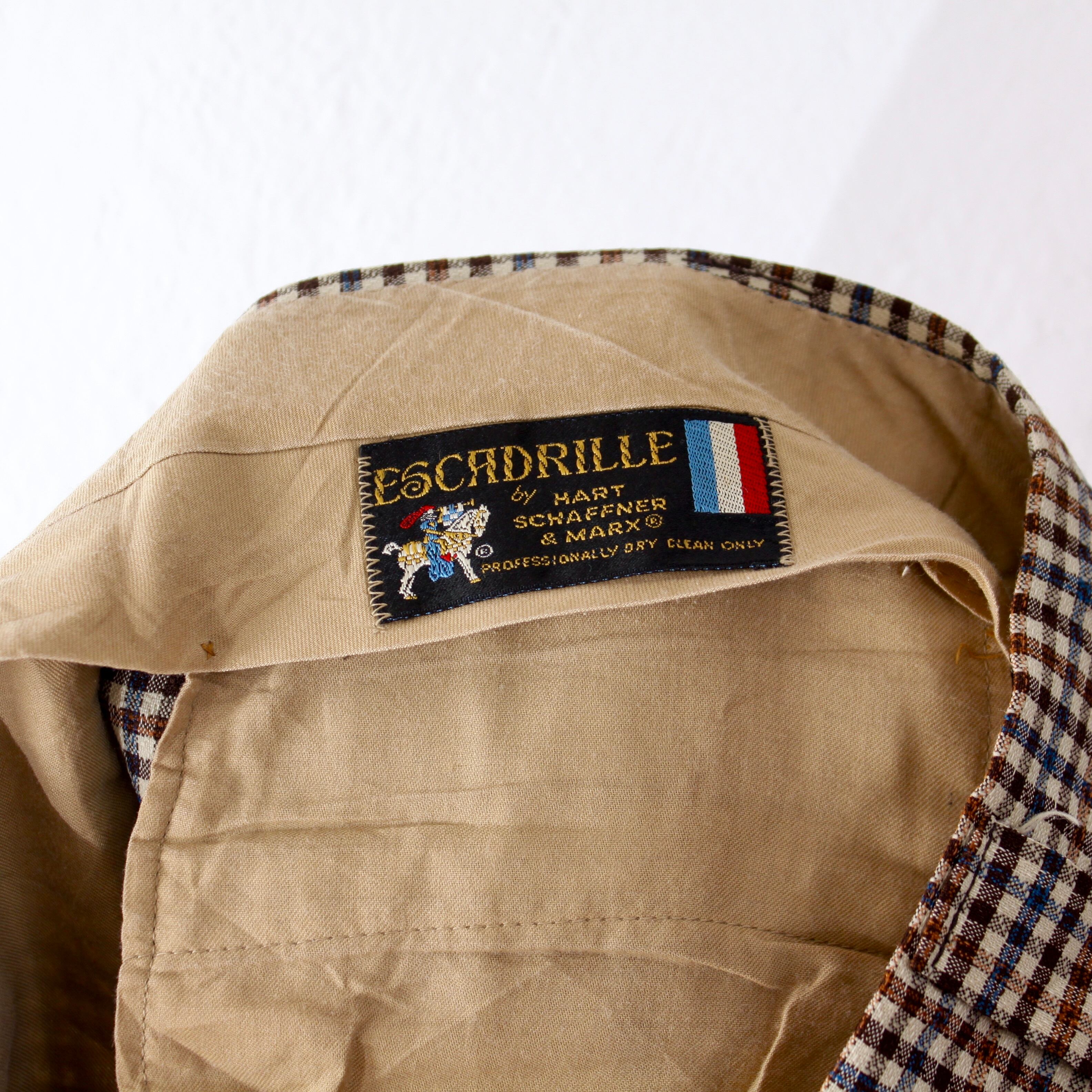 0038. 1970's skinny poly slacks hart schaffner & marx ブラウン チェック スキニー スラックス 70s 70年代 vintage 古着
