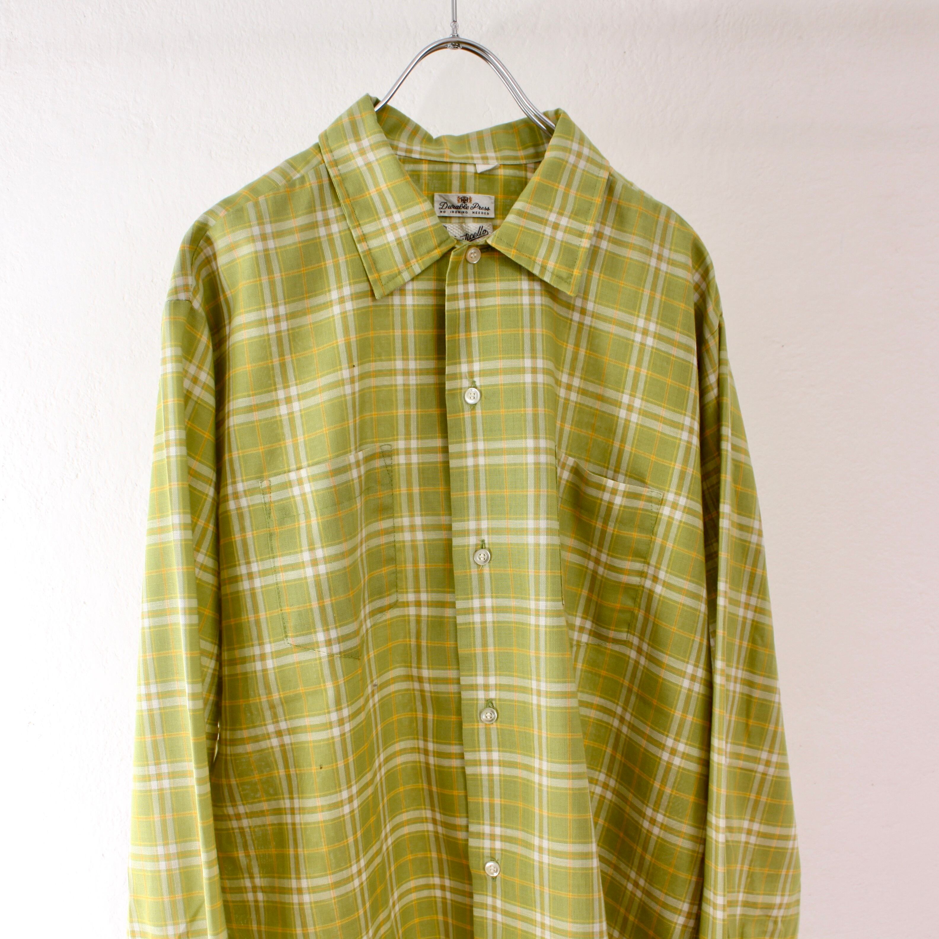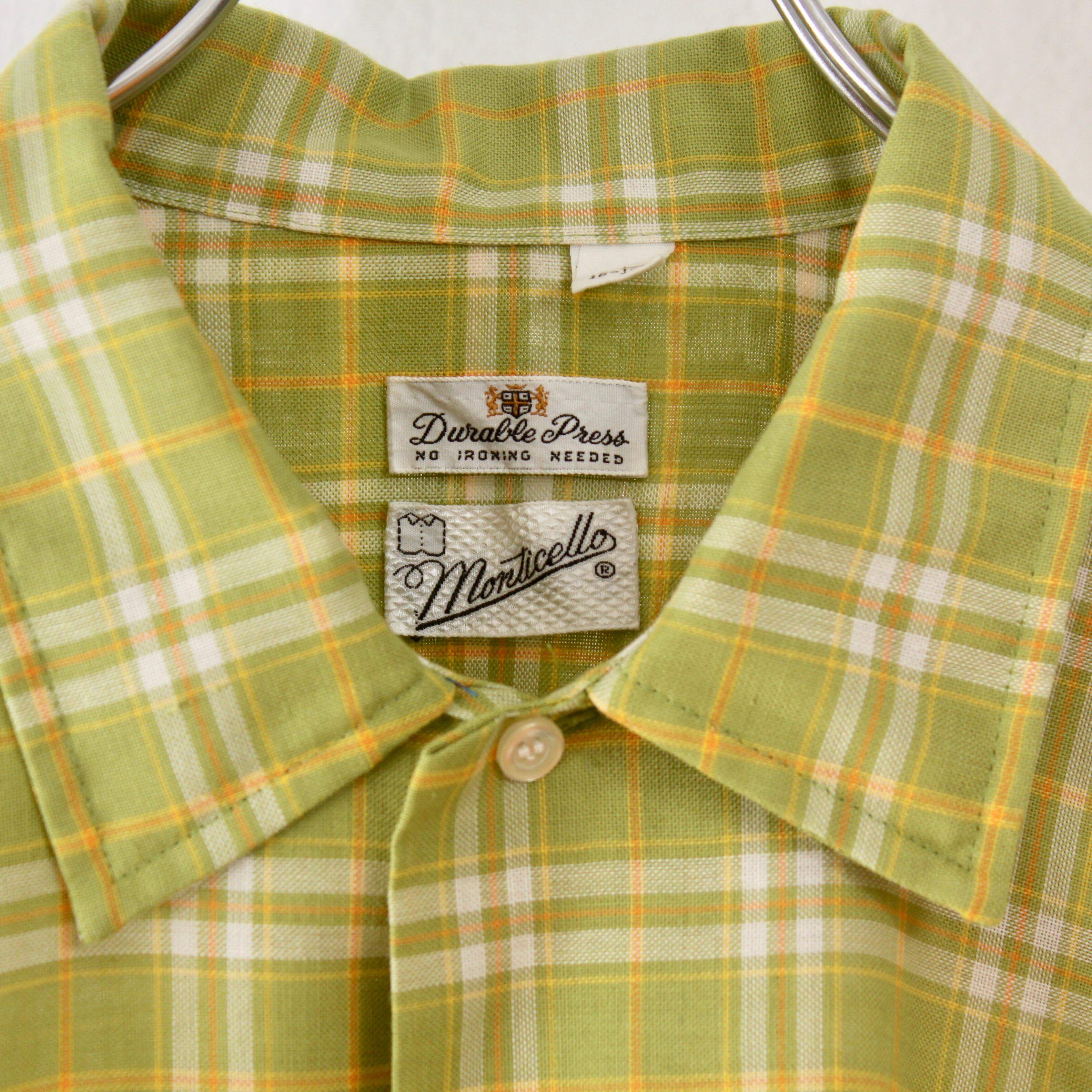 0025. 1960's monticello checker box shirt グリーン チェック 長袖 ボックスシャツ 60s 60年代 vintage 古着