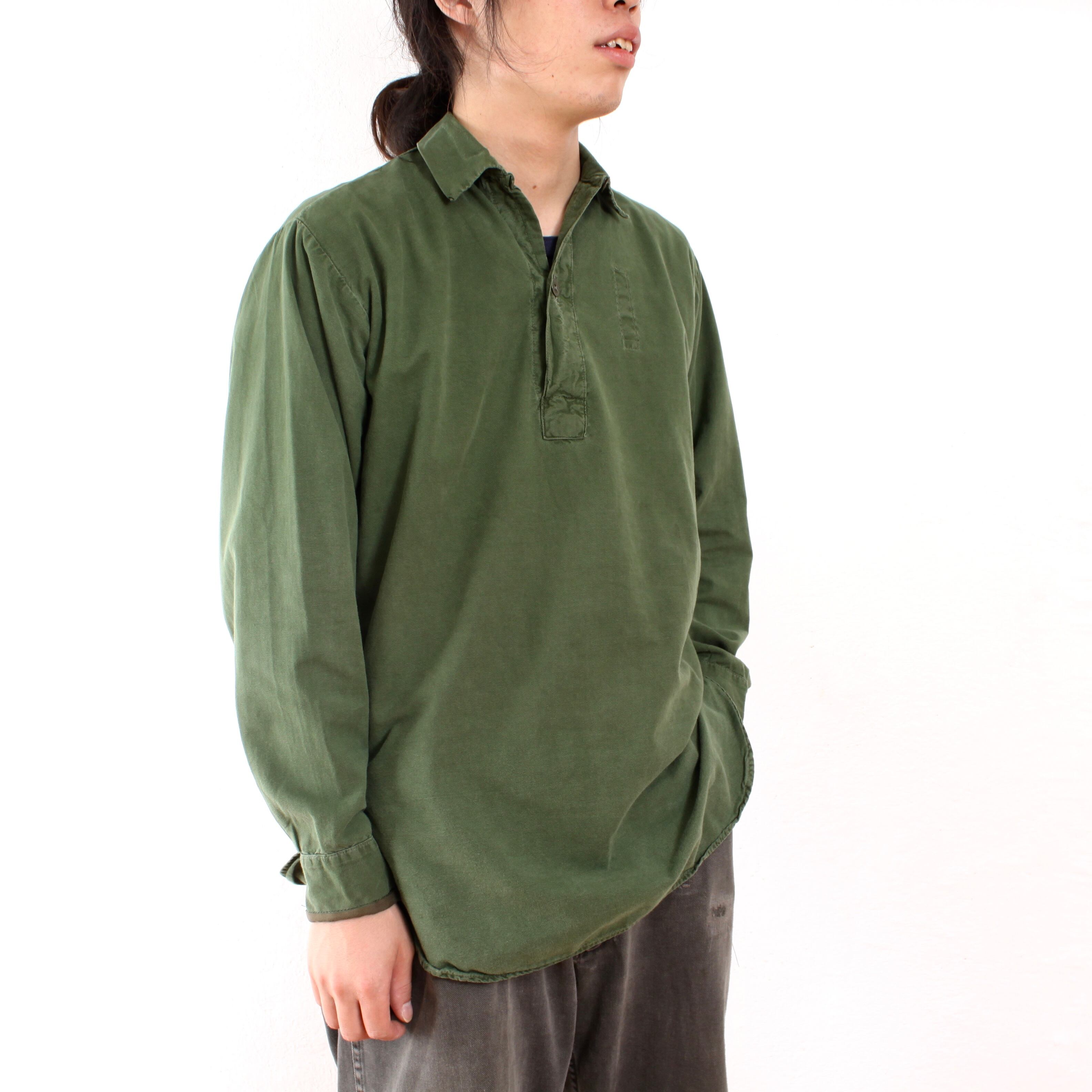 0043. 1970's Swedish military M55 pullover shirt グリーン スウェーデン軍 長袖 プルオーバーシャツ スリーピングシャツ ユーロミリタリー 70s 70年代 euro vintage 古着