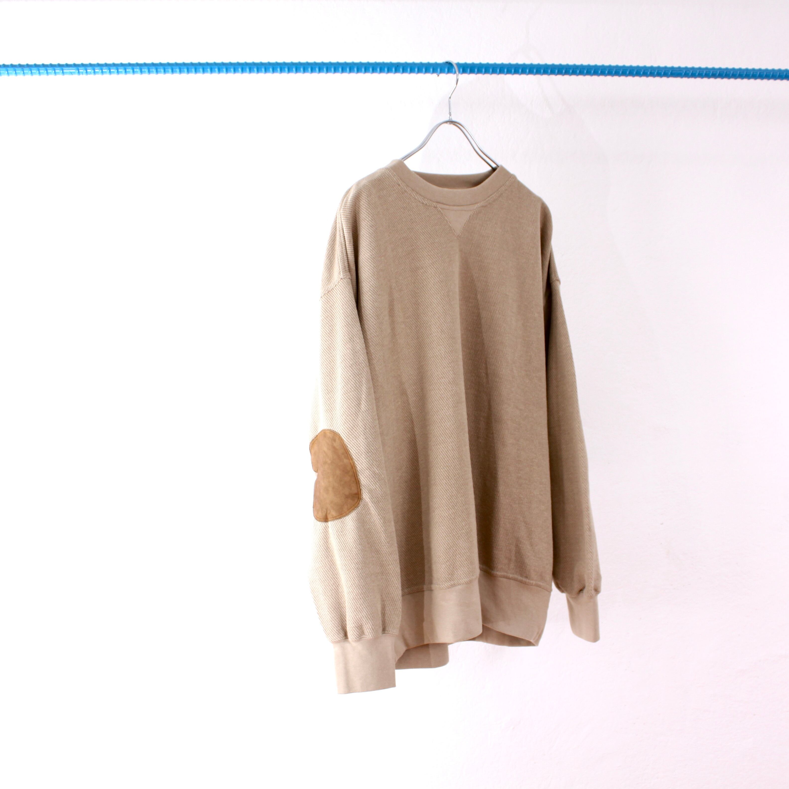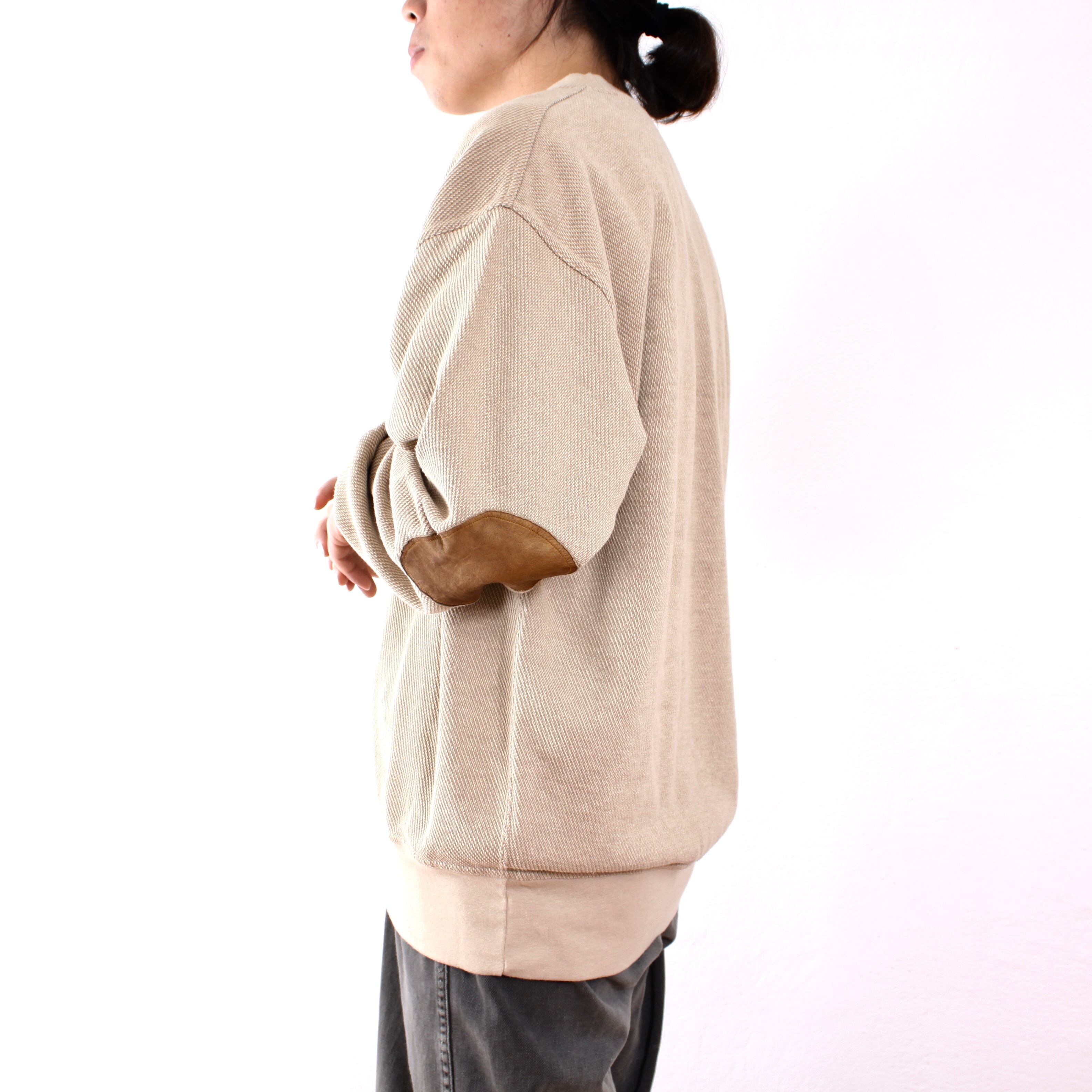 0027. ORVIS moss stitch sweat ベージュ 鹿の子編み スウェット カットソー エルボーパッチ 古着
