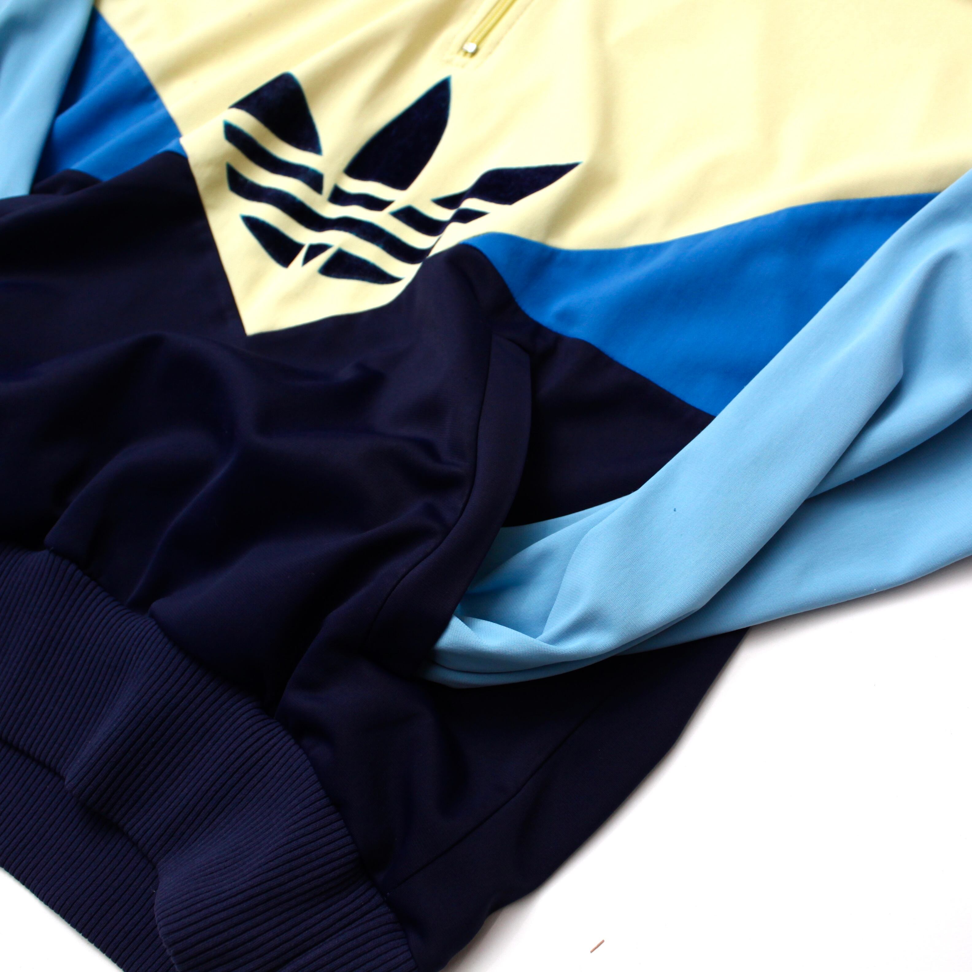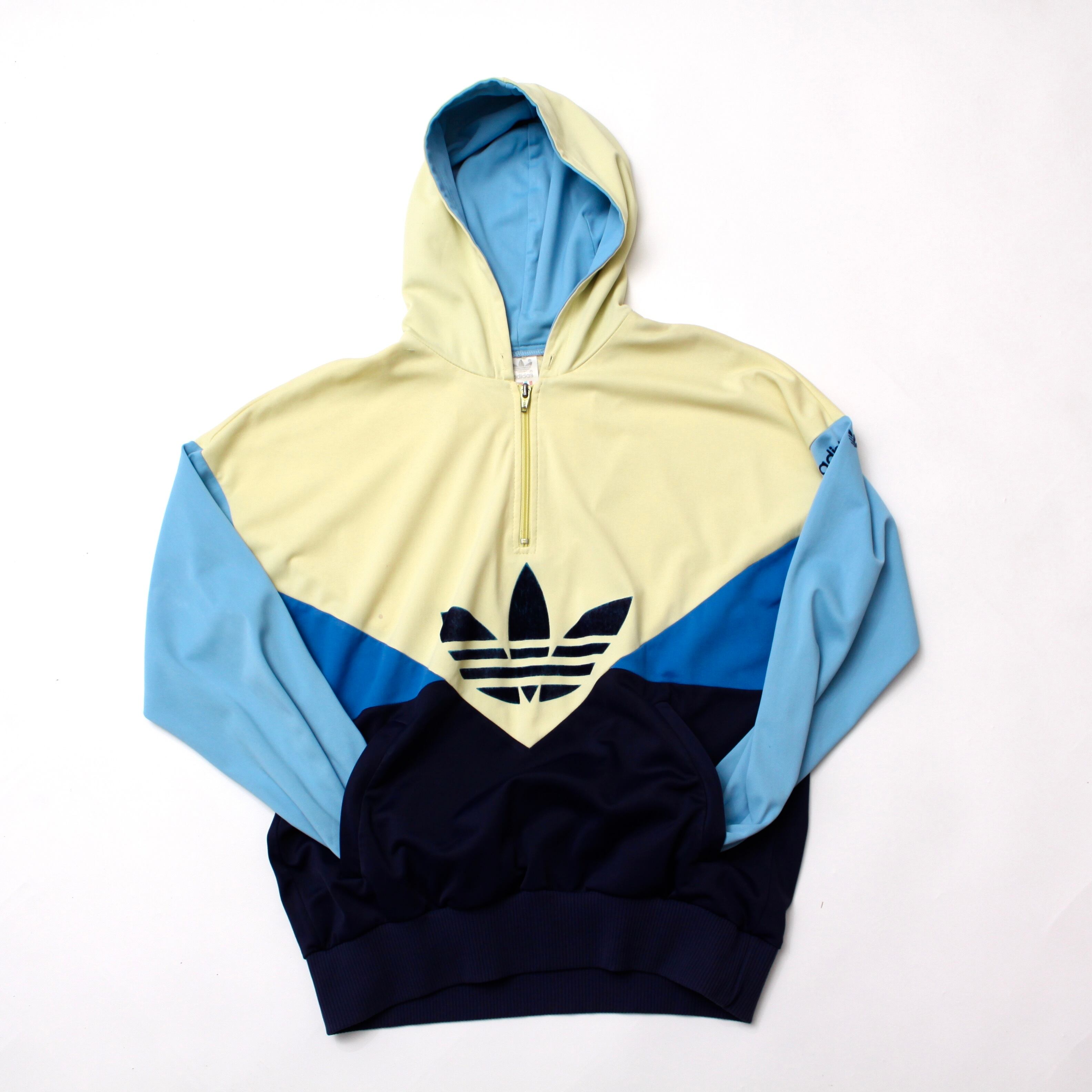 0044. 1980's adidas jersey pullover ブルー イエロー ジャージプルオーバー アノラックパーカ トレフォイル 万国旗タグ Austria製 80s 80年代 euro vintage ユーロ古着