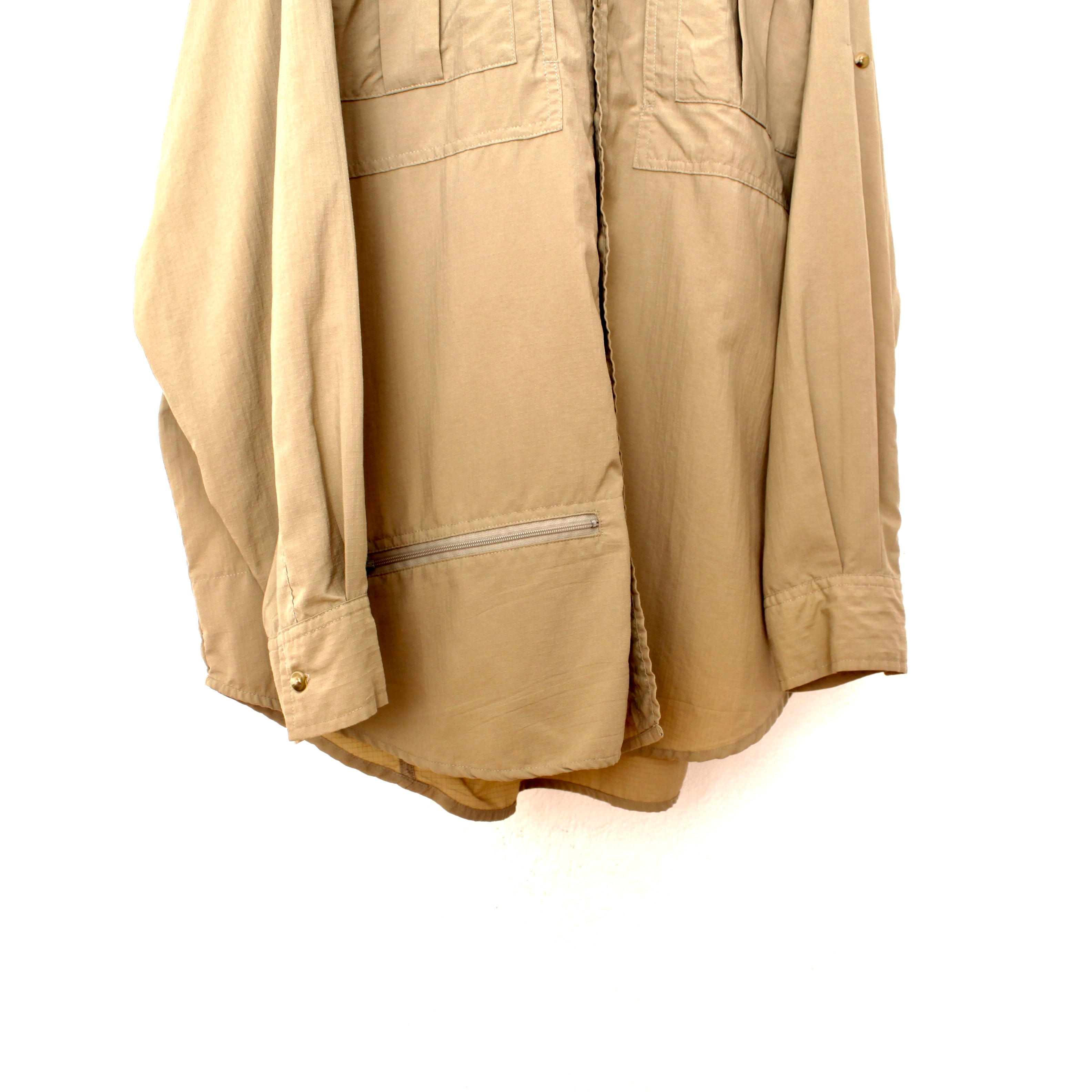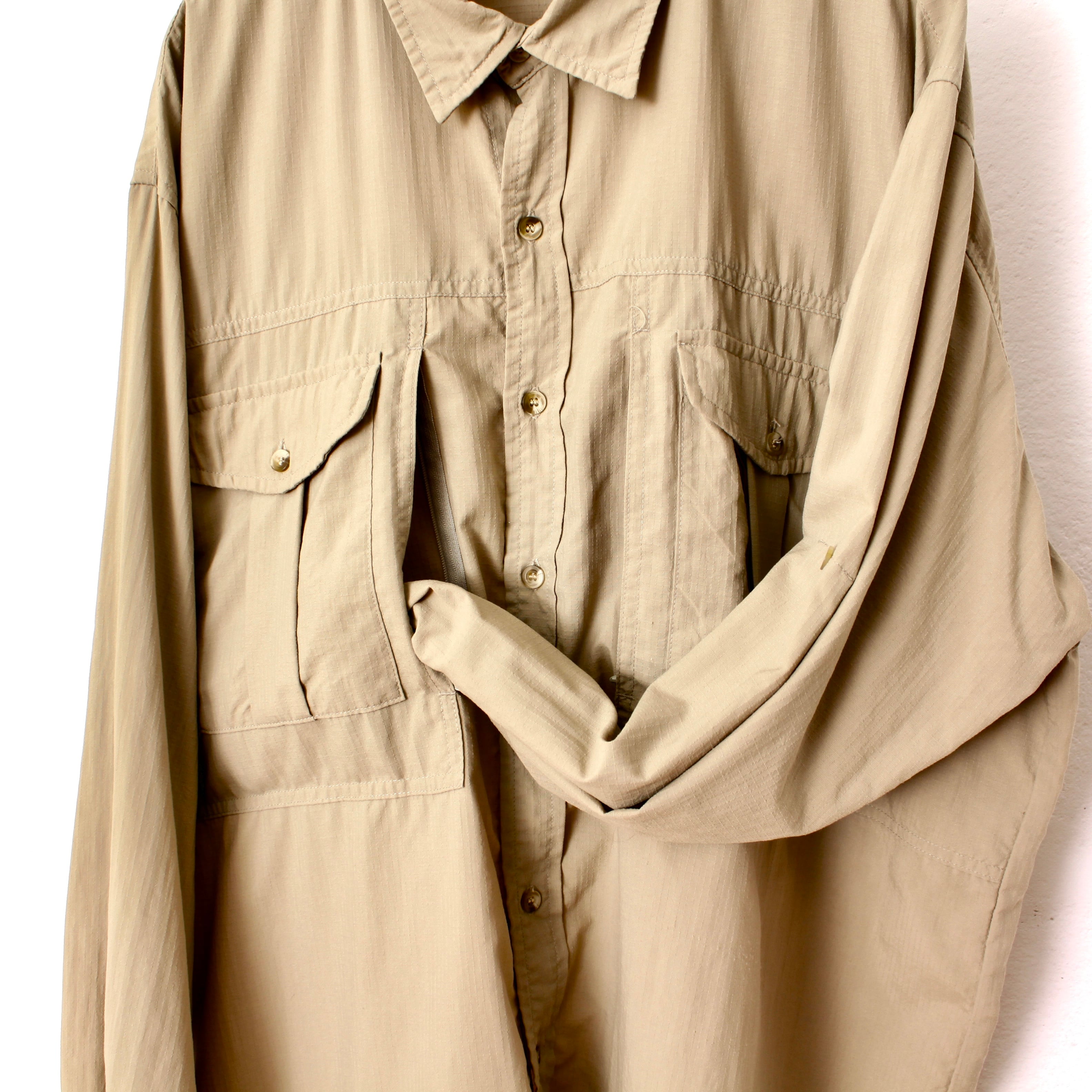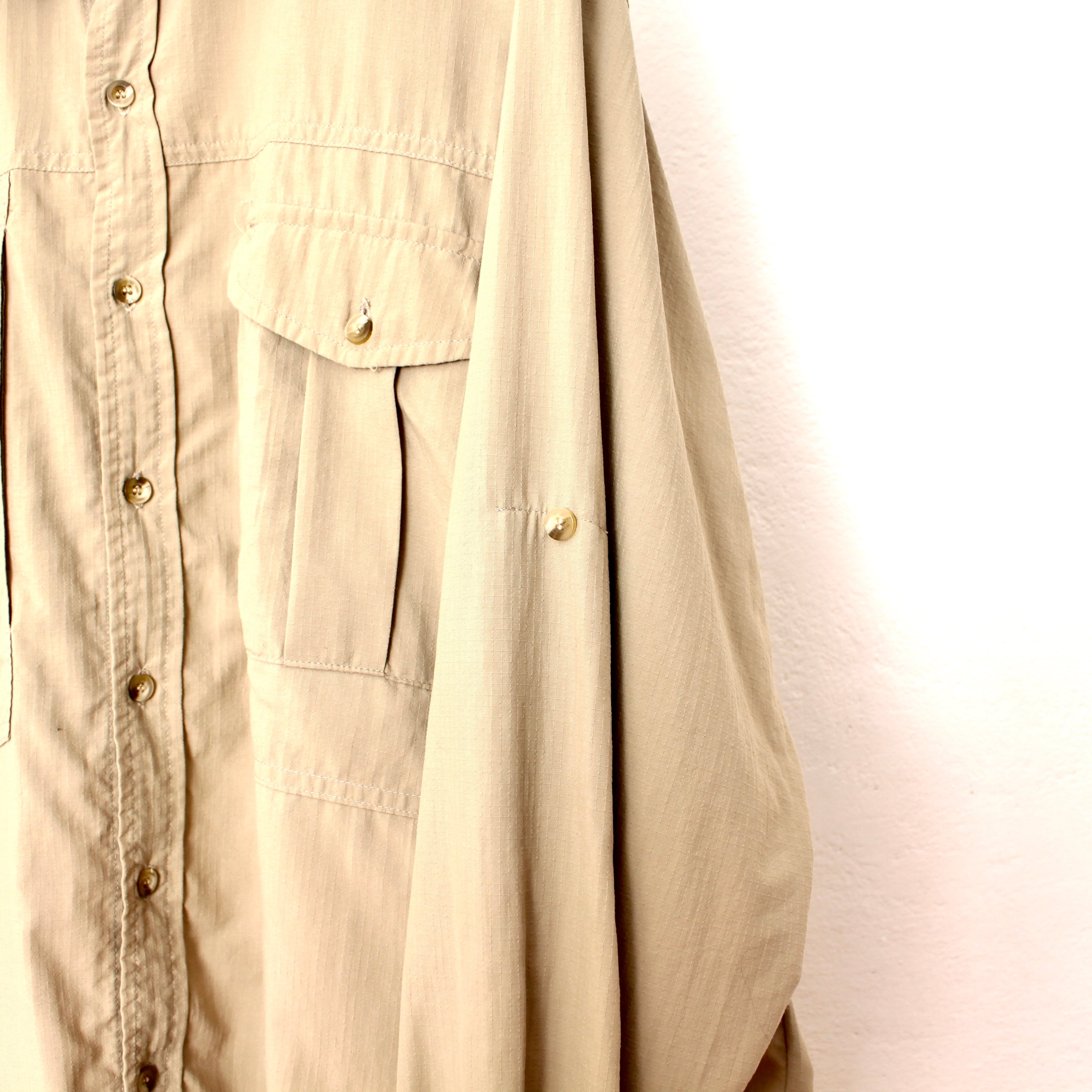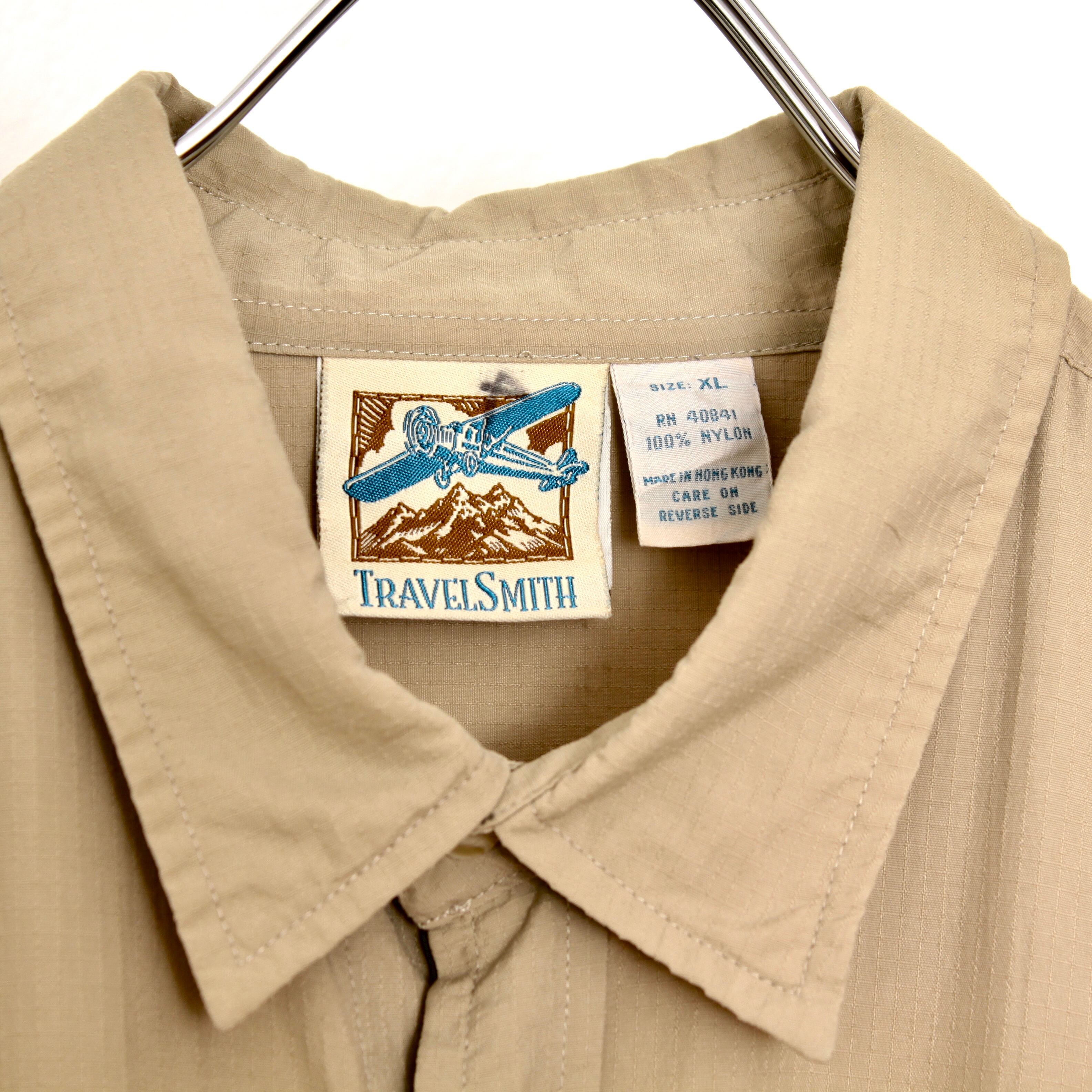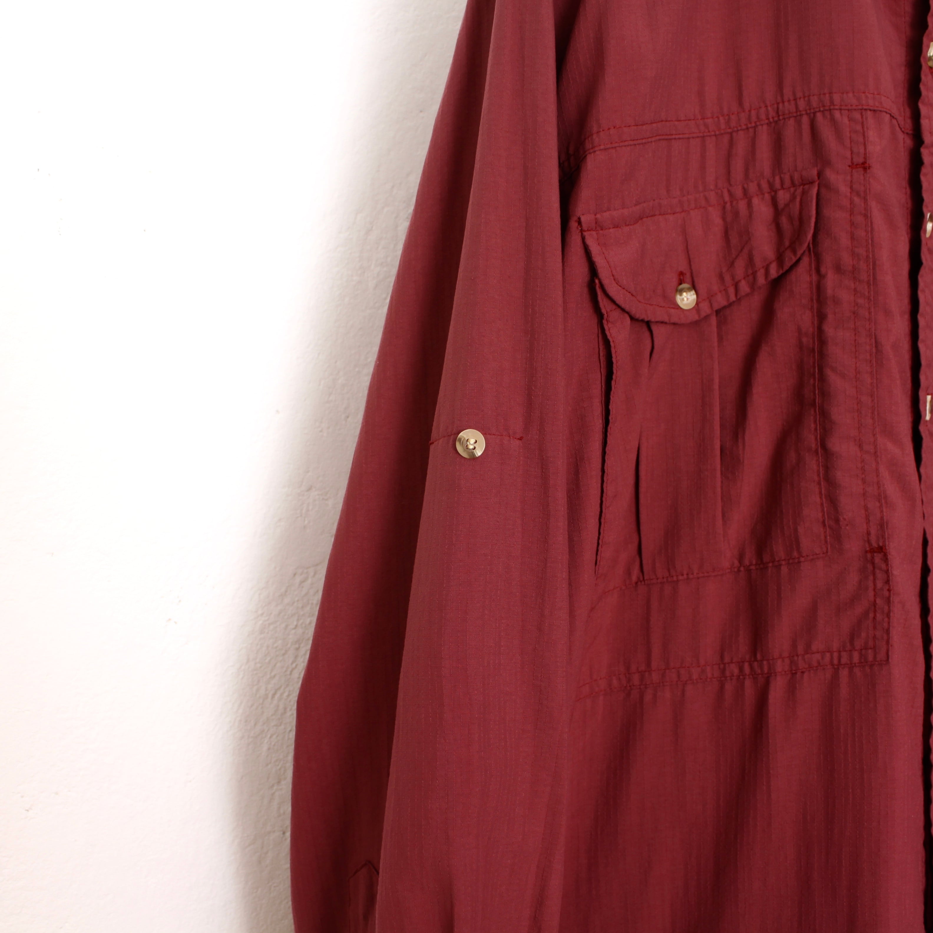 0072. travel smith nylon gimmick shirt バーガンディー ベージュ 長袖 シャツ ナイロンリップストップ 古着