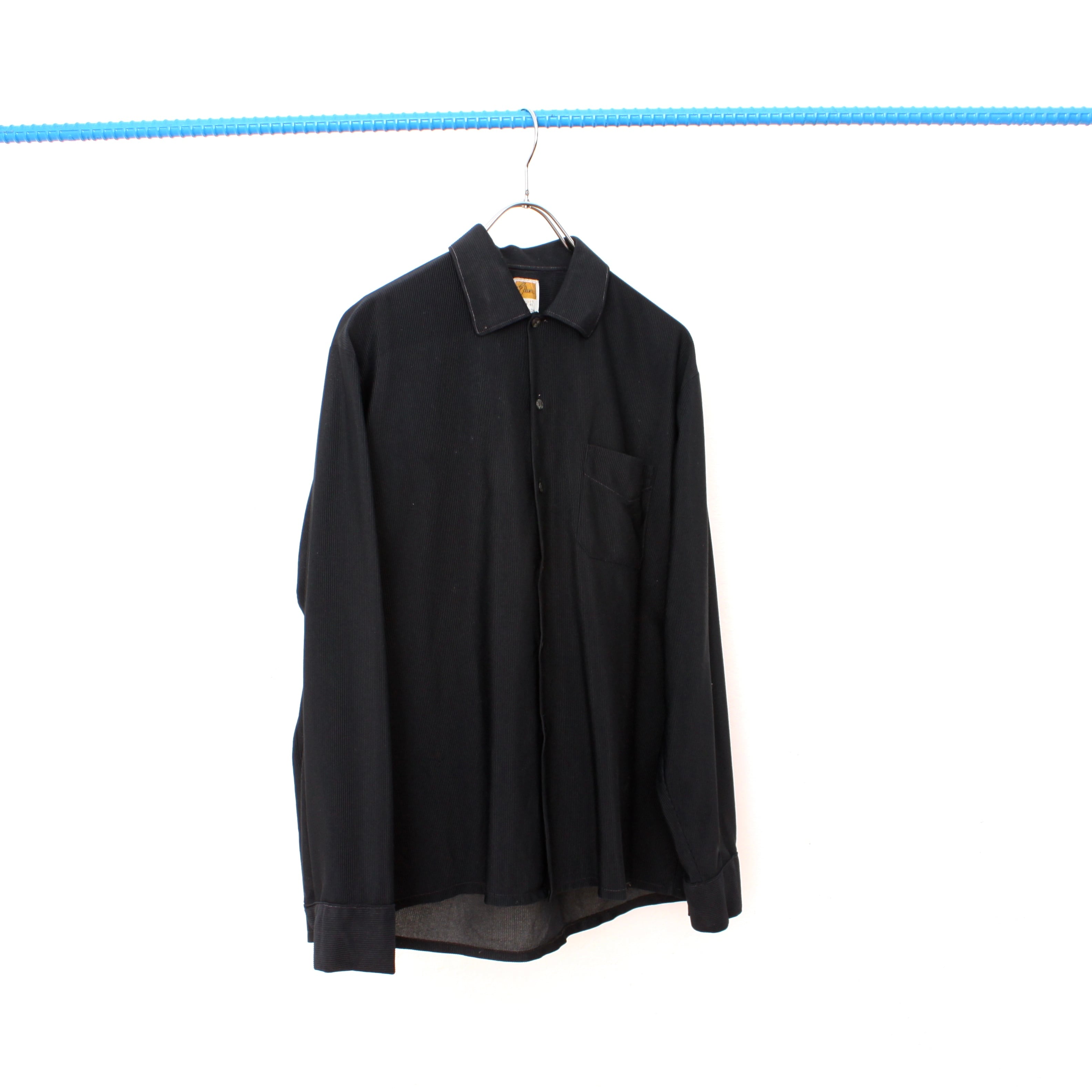 0067. 1960's euro box shirt ブラック 長袖 ボックスシャツ 60s 60年代 vintage ユーロ古着