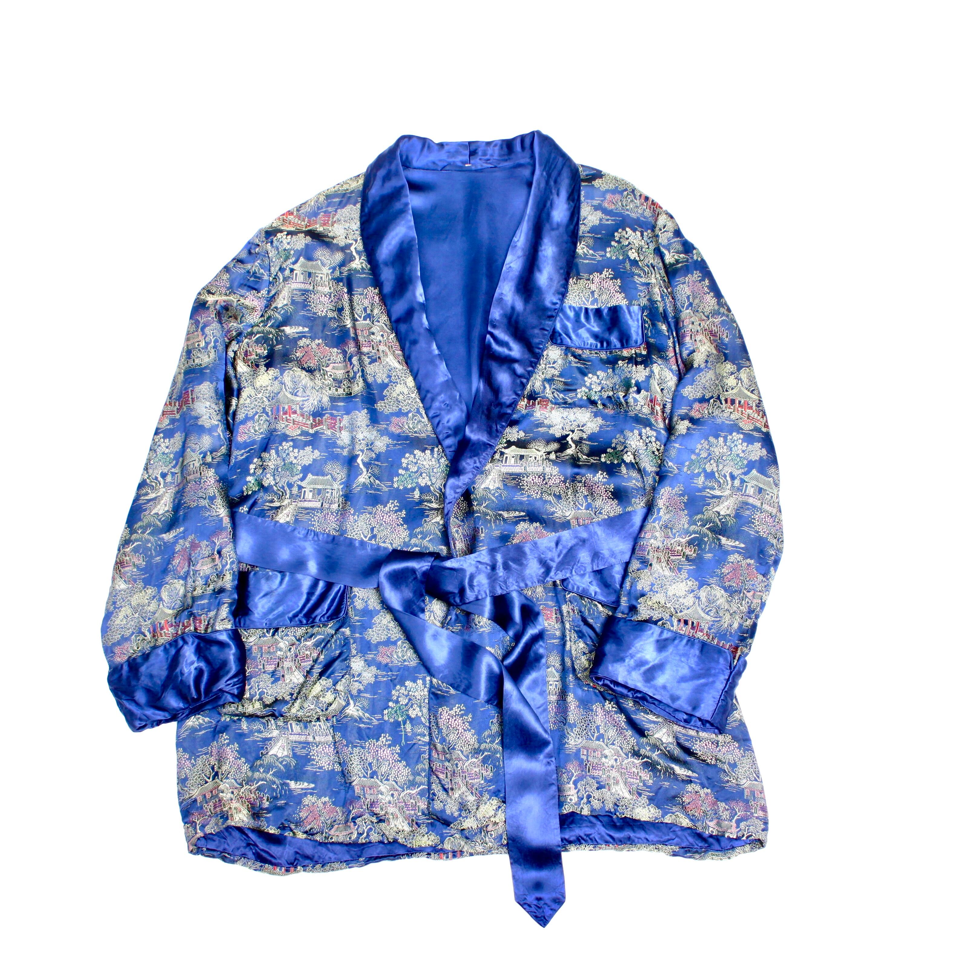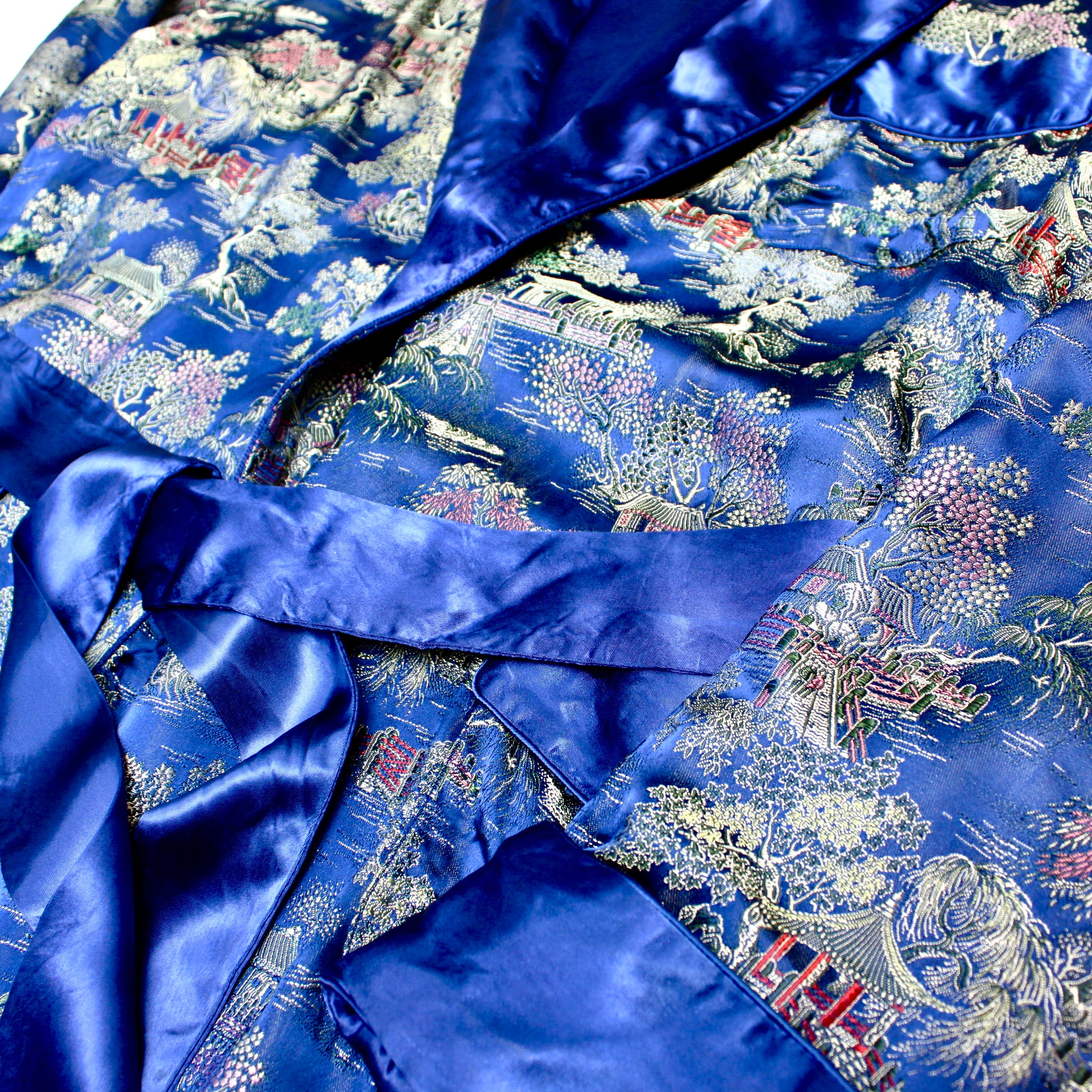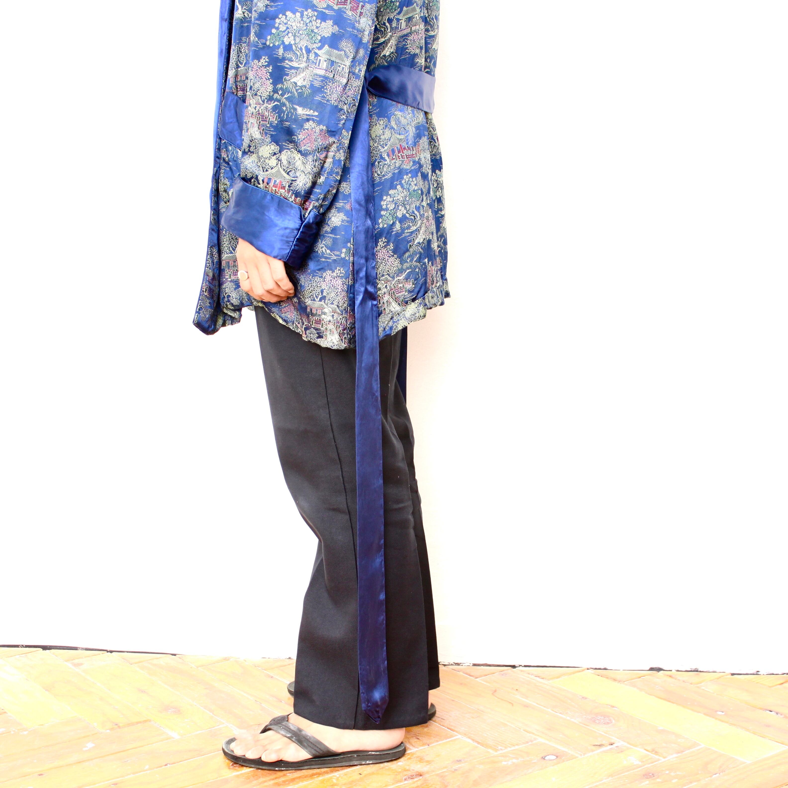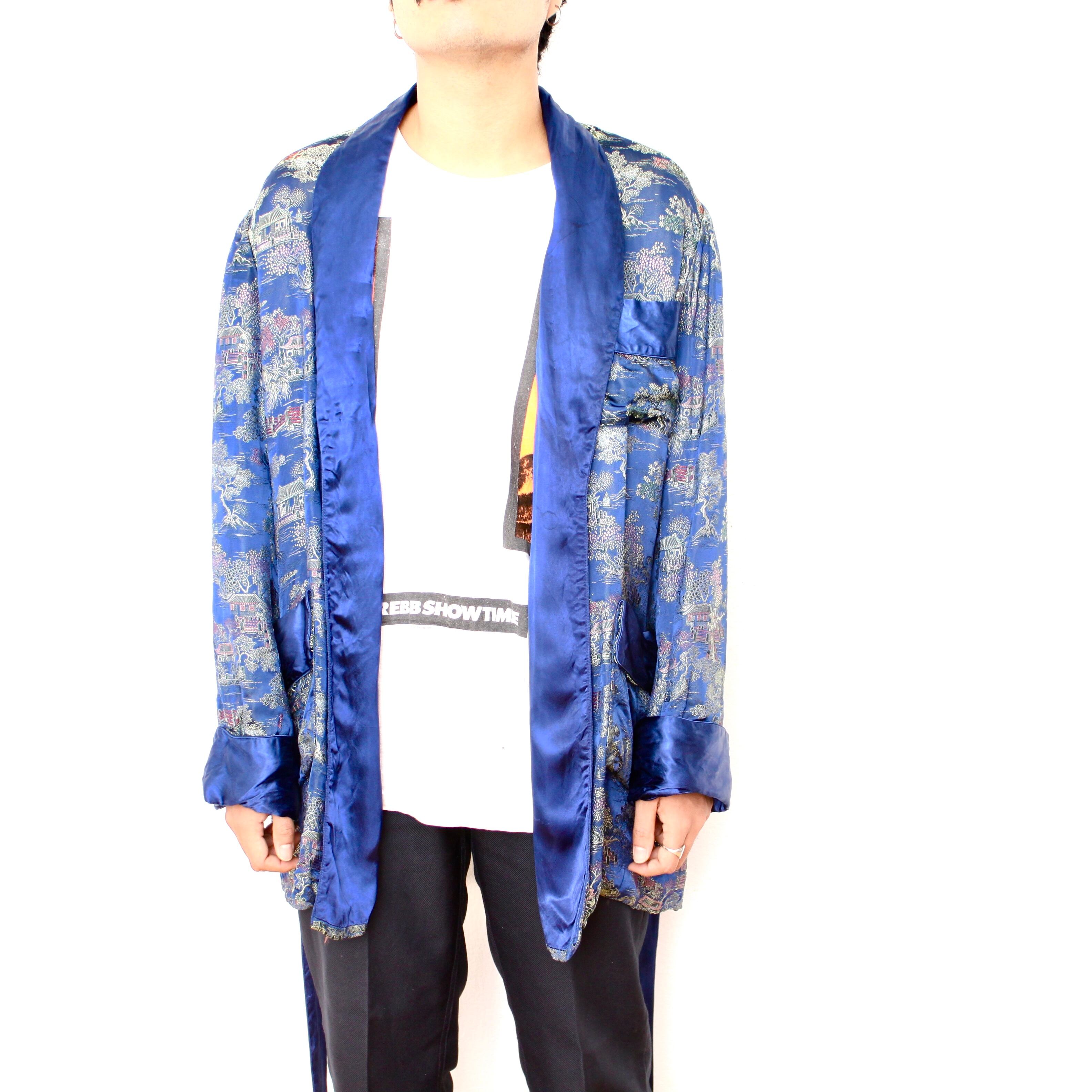 0064. vintage souvenir gown ブルー 刺繍 着物 スカガウン スーベニア 古着