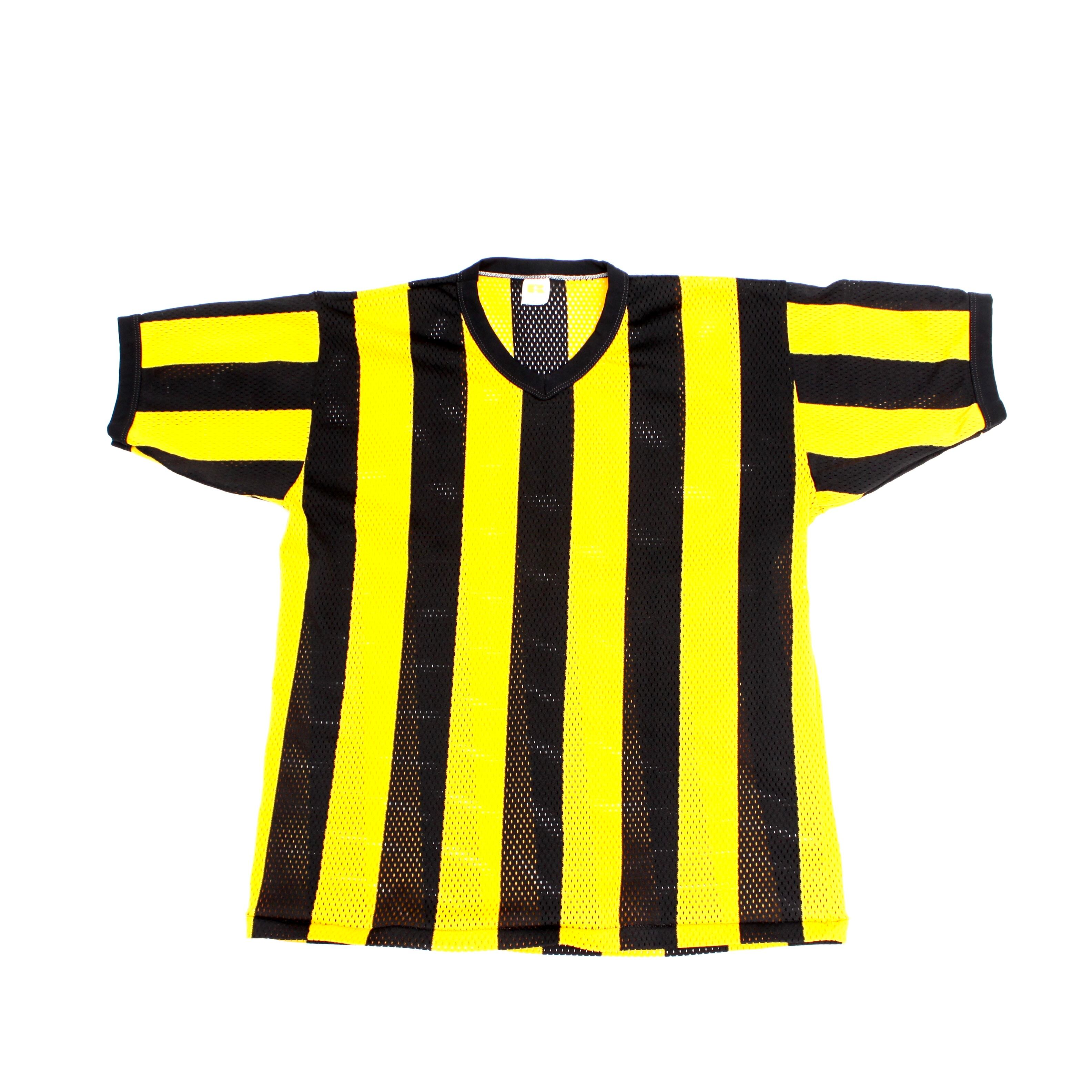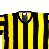 0060. 1970's russell mesh tee ブラック イエロー 太ストライプ レフェリーシャツ メッシュTシャツ ラッセル USA製 70s 70年代 vintage 古着