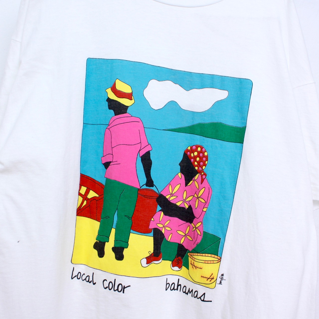 0079. 1980's local color art tee ホワイト アート プリントTシャツ 80s 80年代 USA製 hanes vintage 古着
