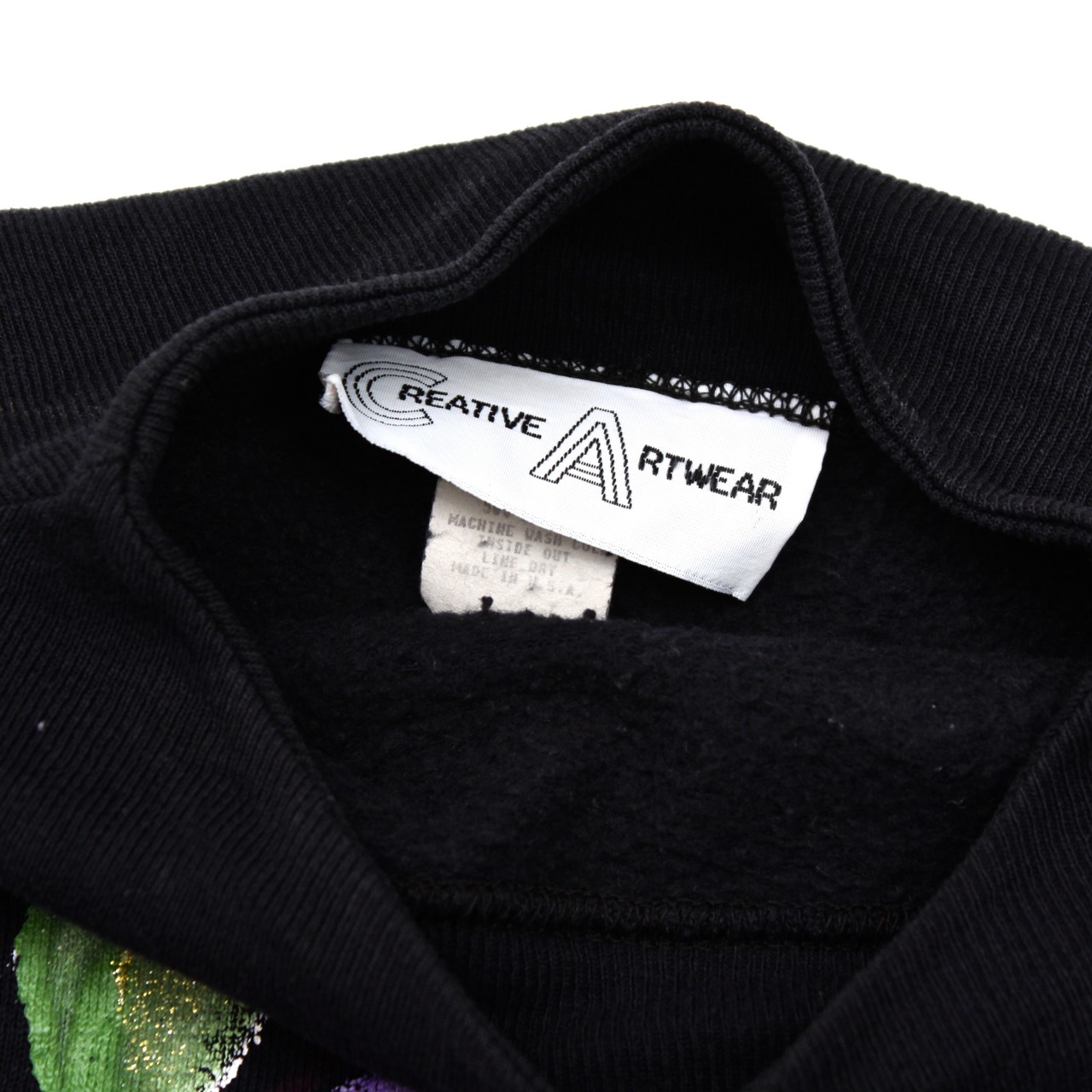 0080. 1990's handpainted sweat ブラック ハンドペイント 手描きアート モックネック 90s 90年代 USA製 vintage 古着