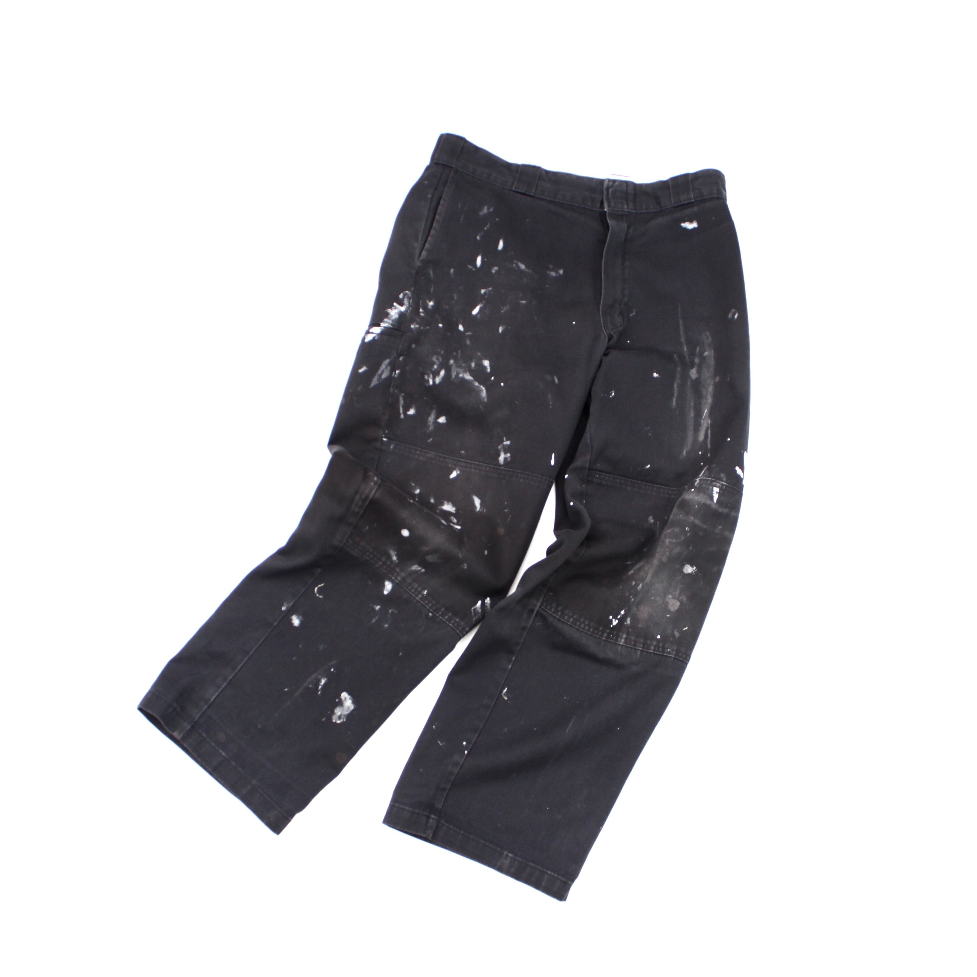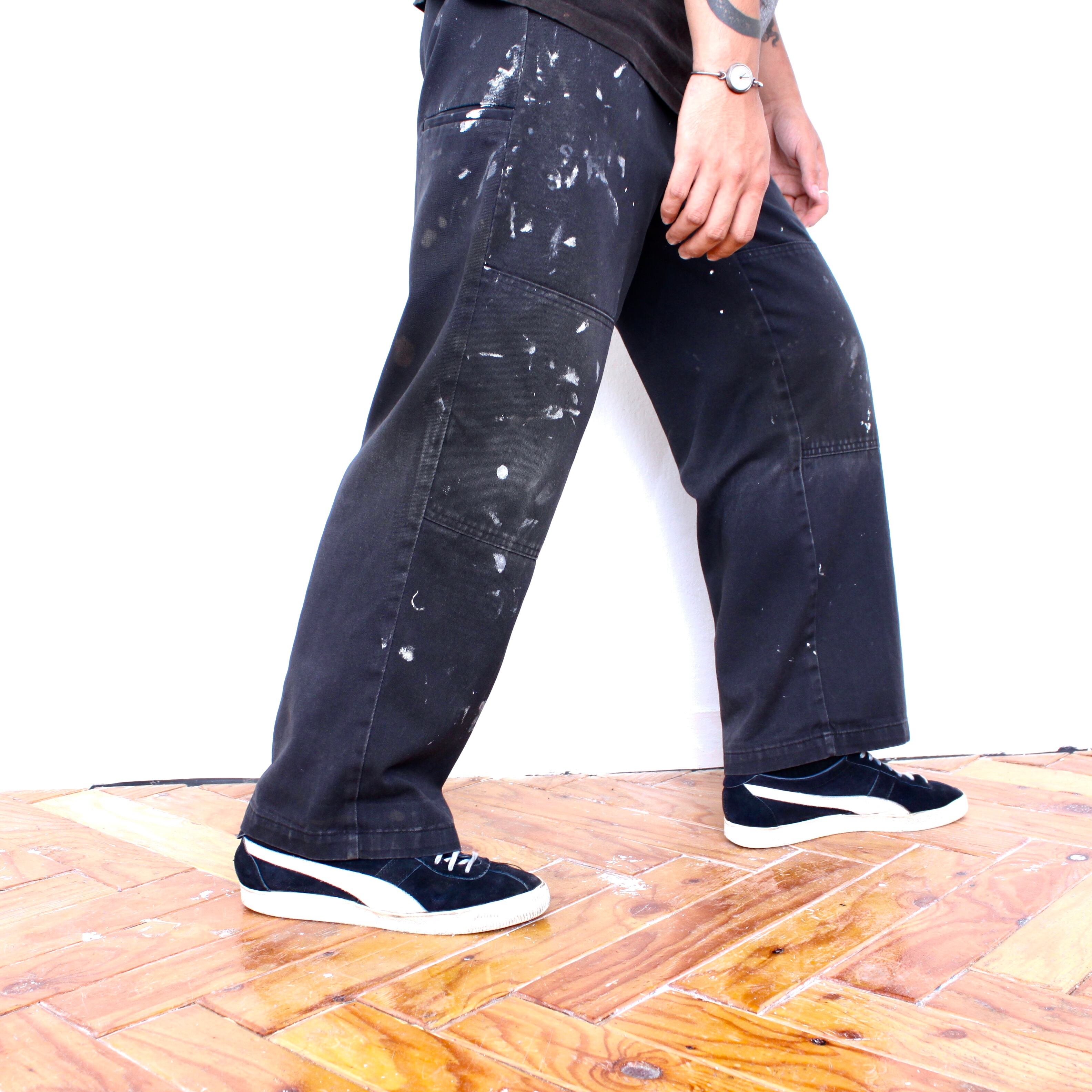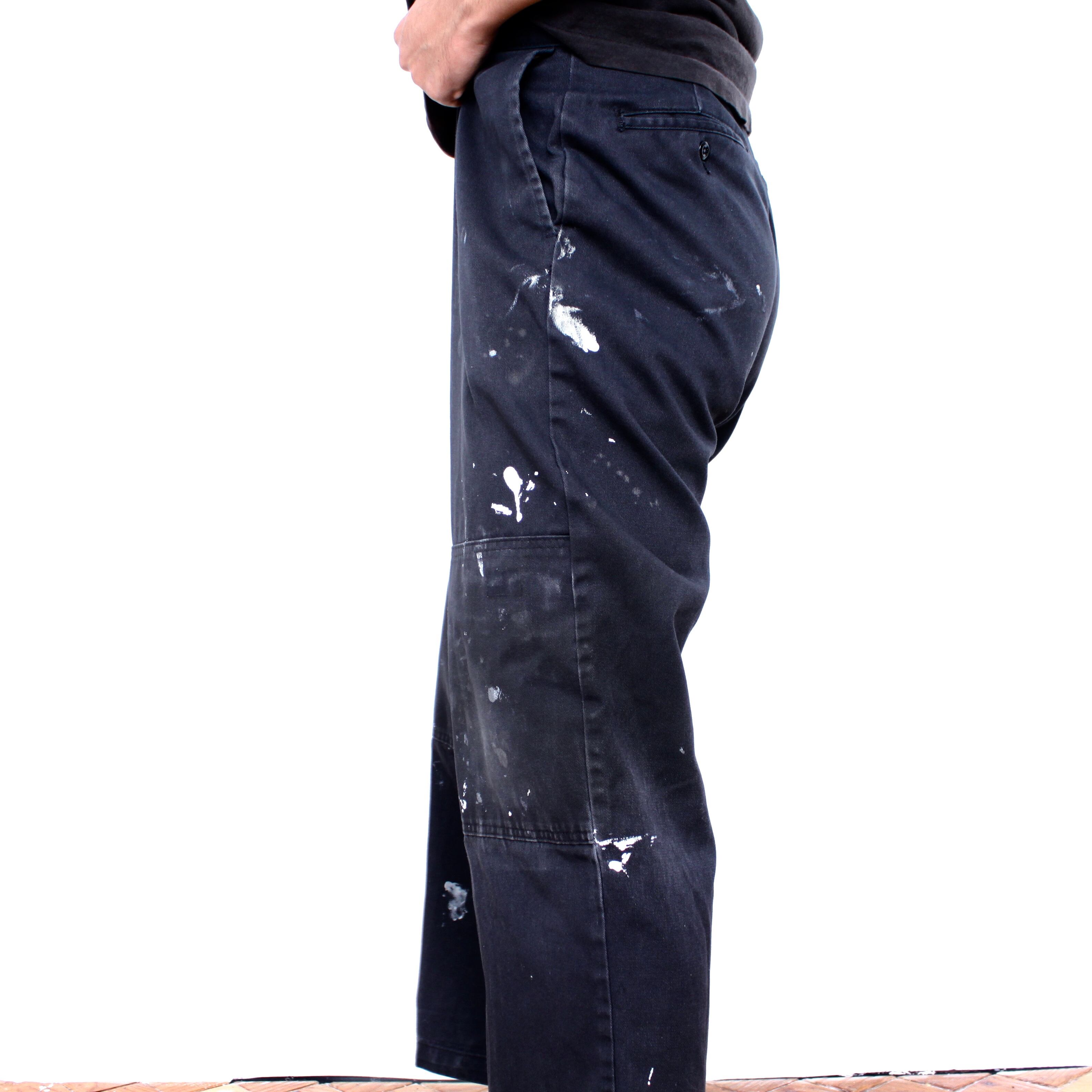 0085. dickies double knee with painting ブラック ワークパンツ ダブルニー ペンキ ディッキーズ 古着