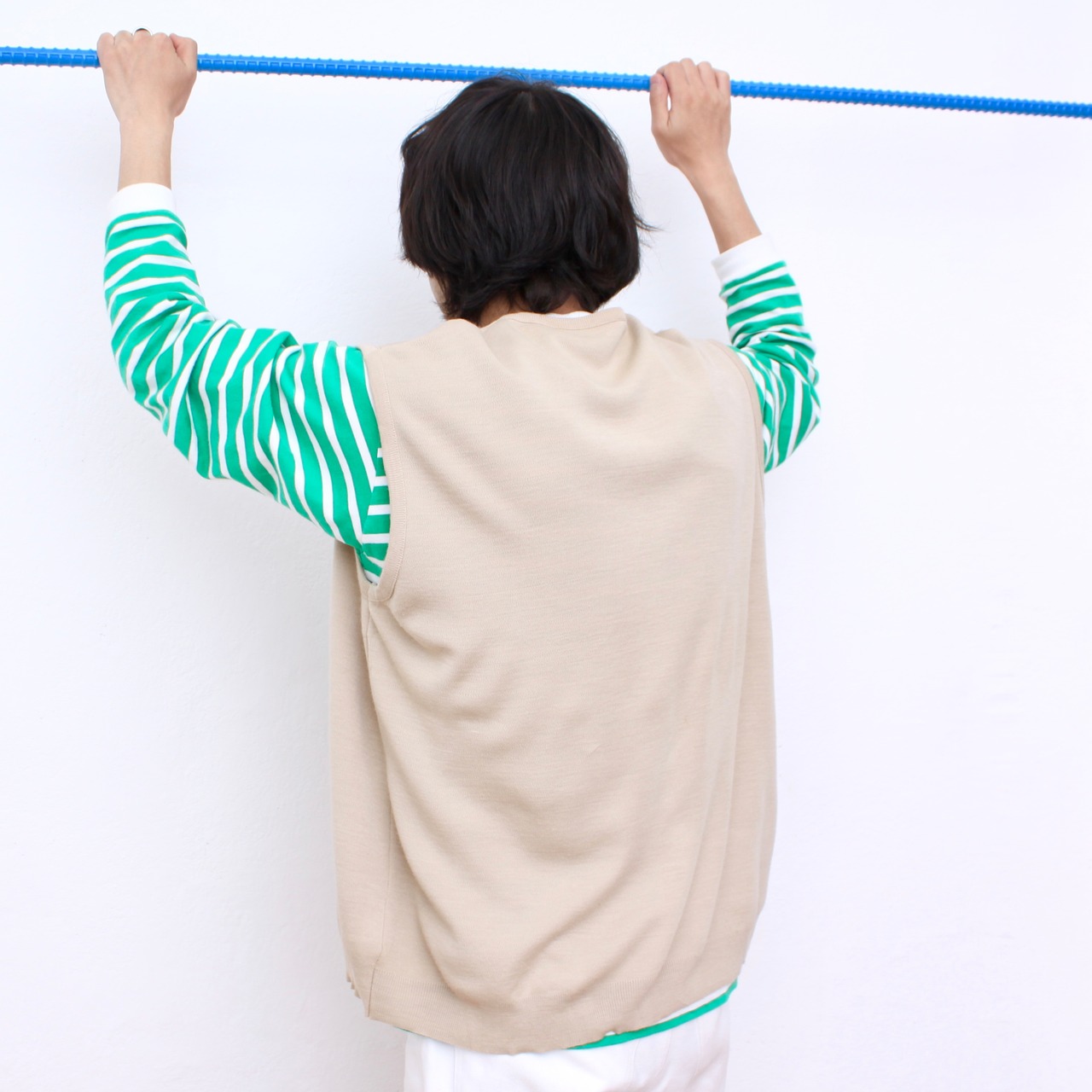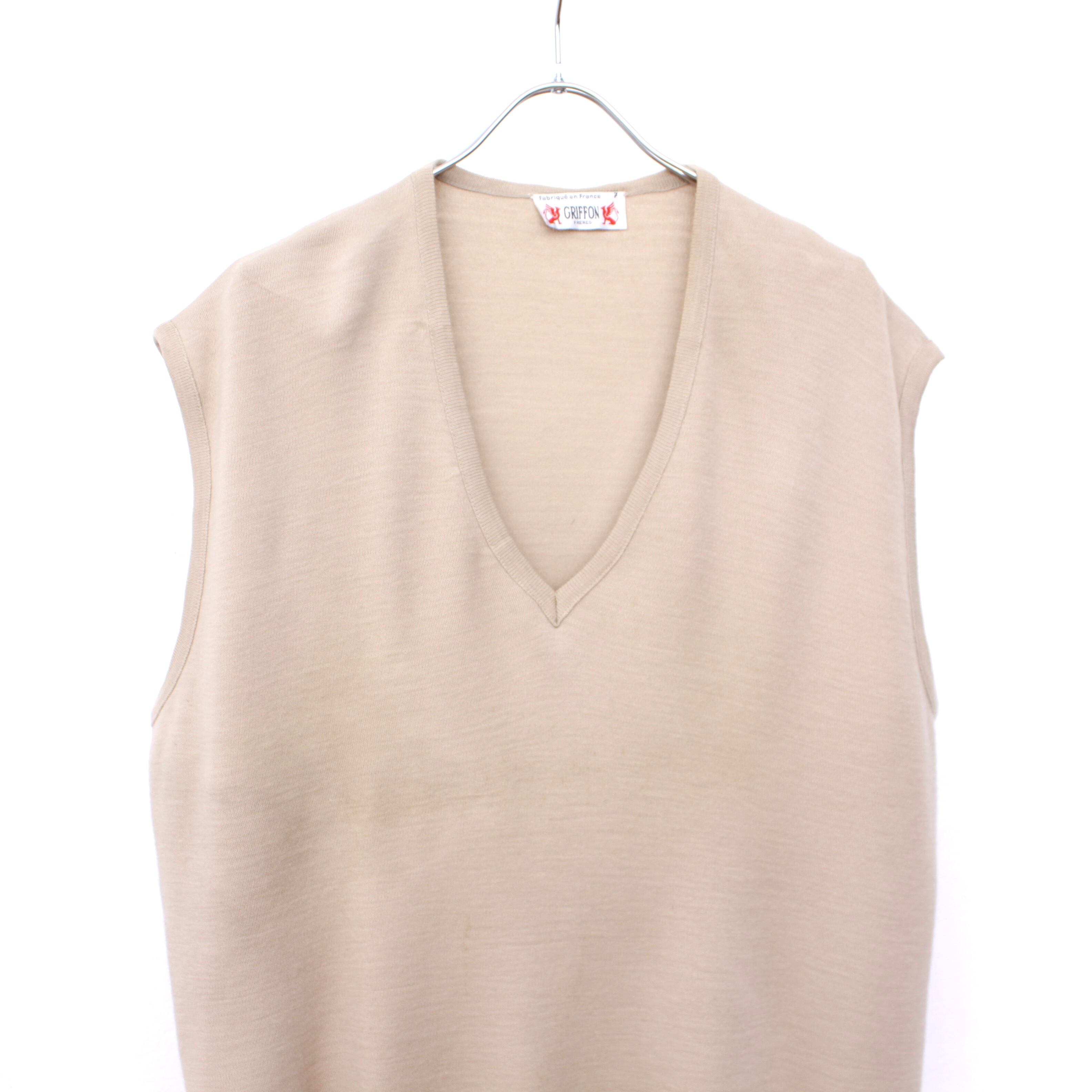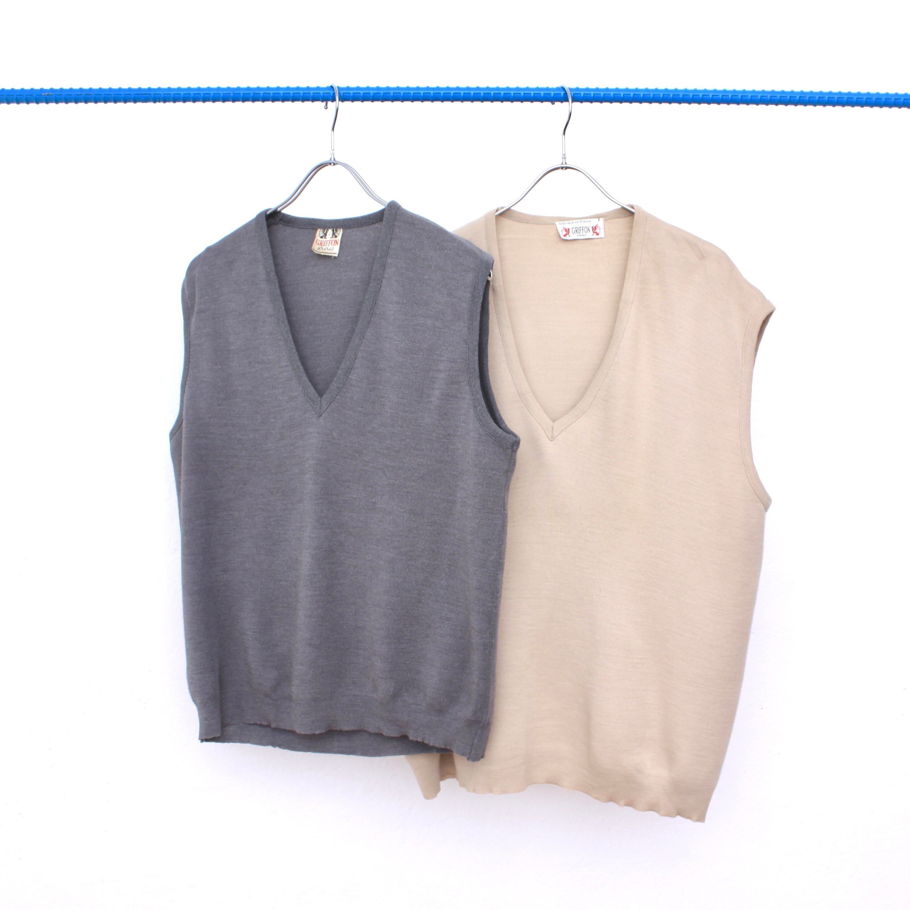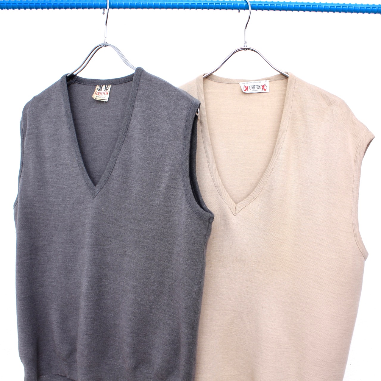 0095. 1970's GRIFFON FRERES Franch Knit Vest ベージュ チャコール 70s 70年代 ニットベスト フランス ヨーロッパ vintage ヴィンテージ ユーロ古着 古着
