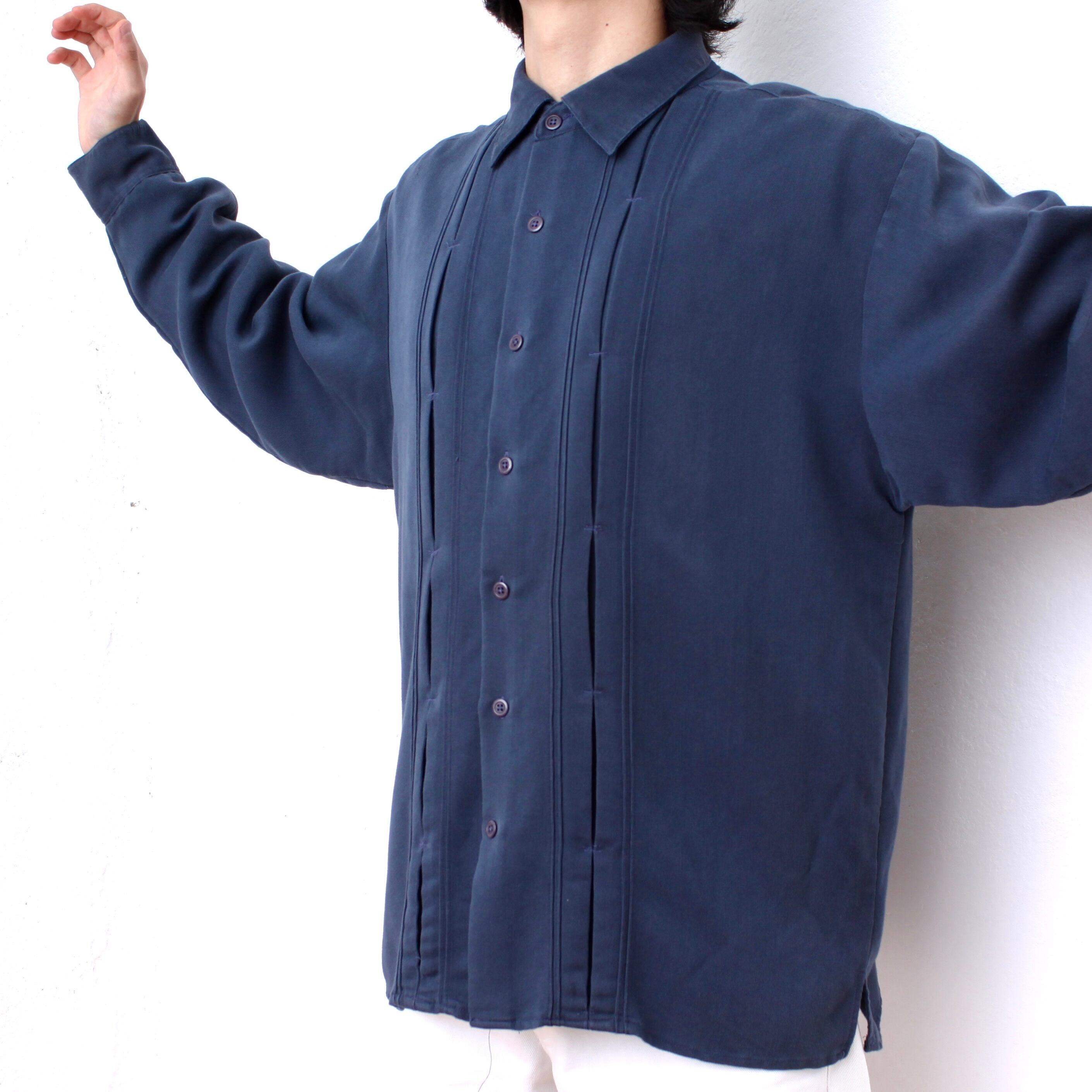 0096. 1990's LINEA DOME Rayon/Polyester Pleats Shirt 90s 90年代 シャツ vintage ヴィンテージ us古着 古着