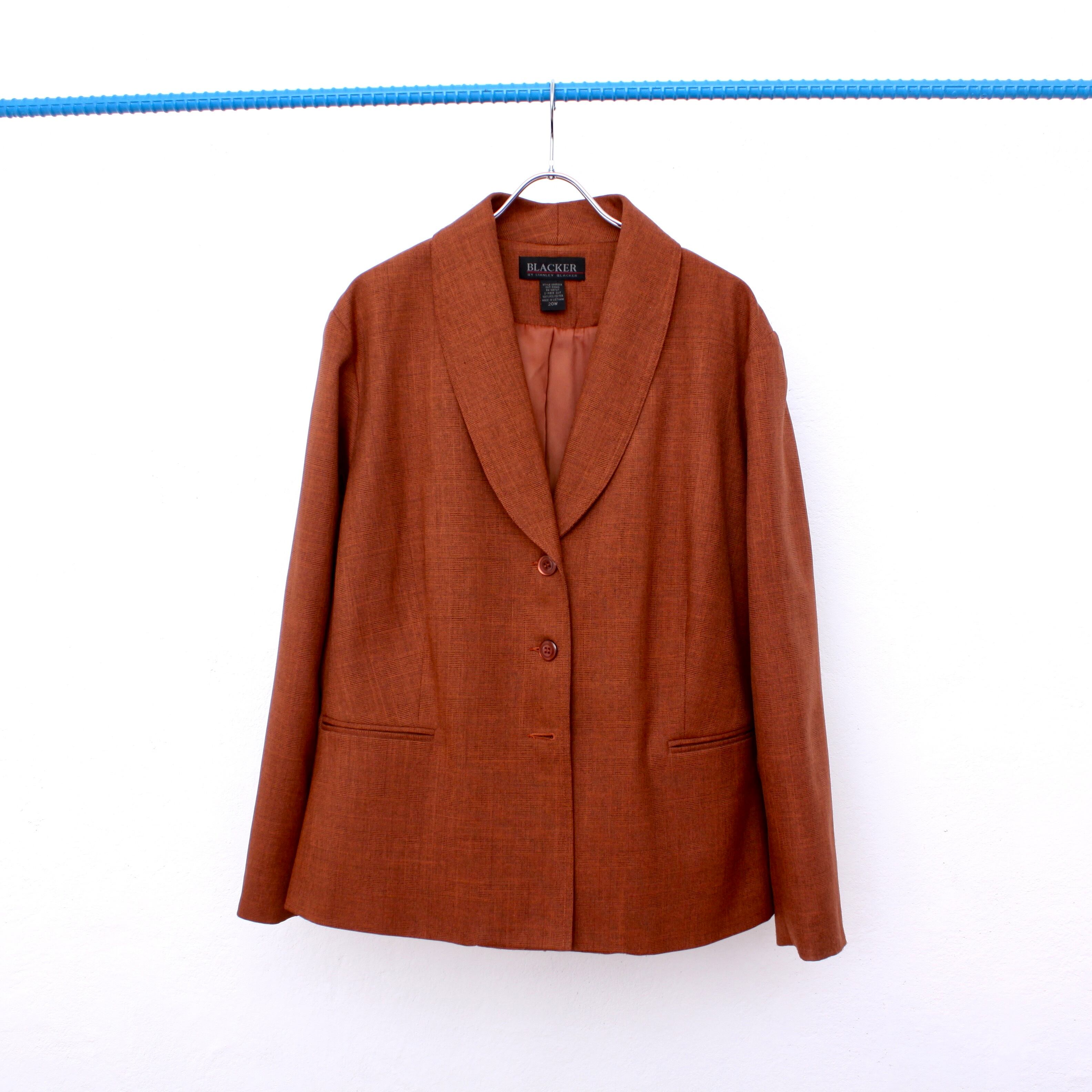 0099. shawl collar tailored jacket オレンジ 織り柄 チェック ショールカラー テーラードジャケット 古着