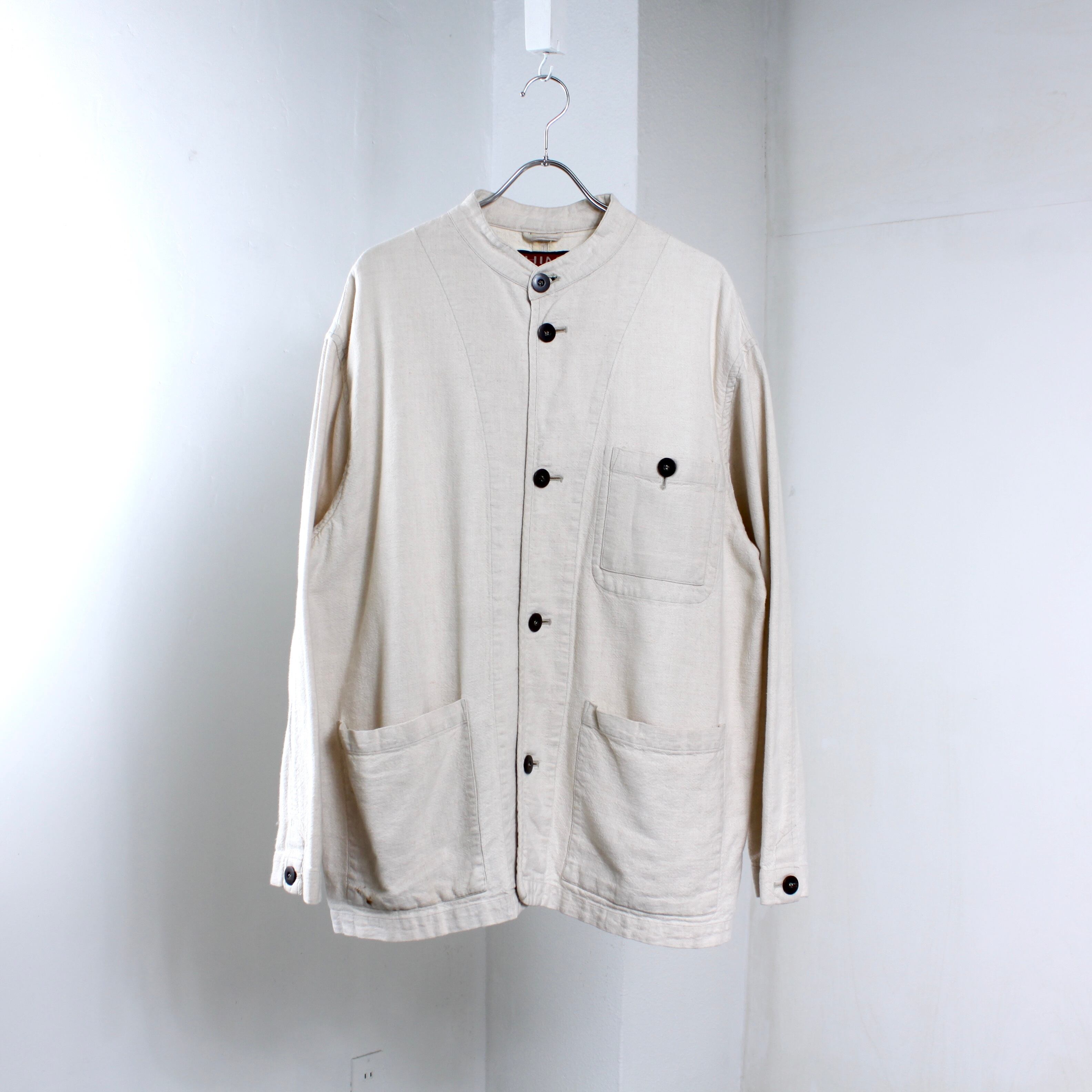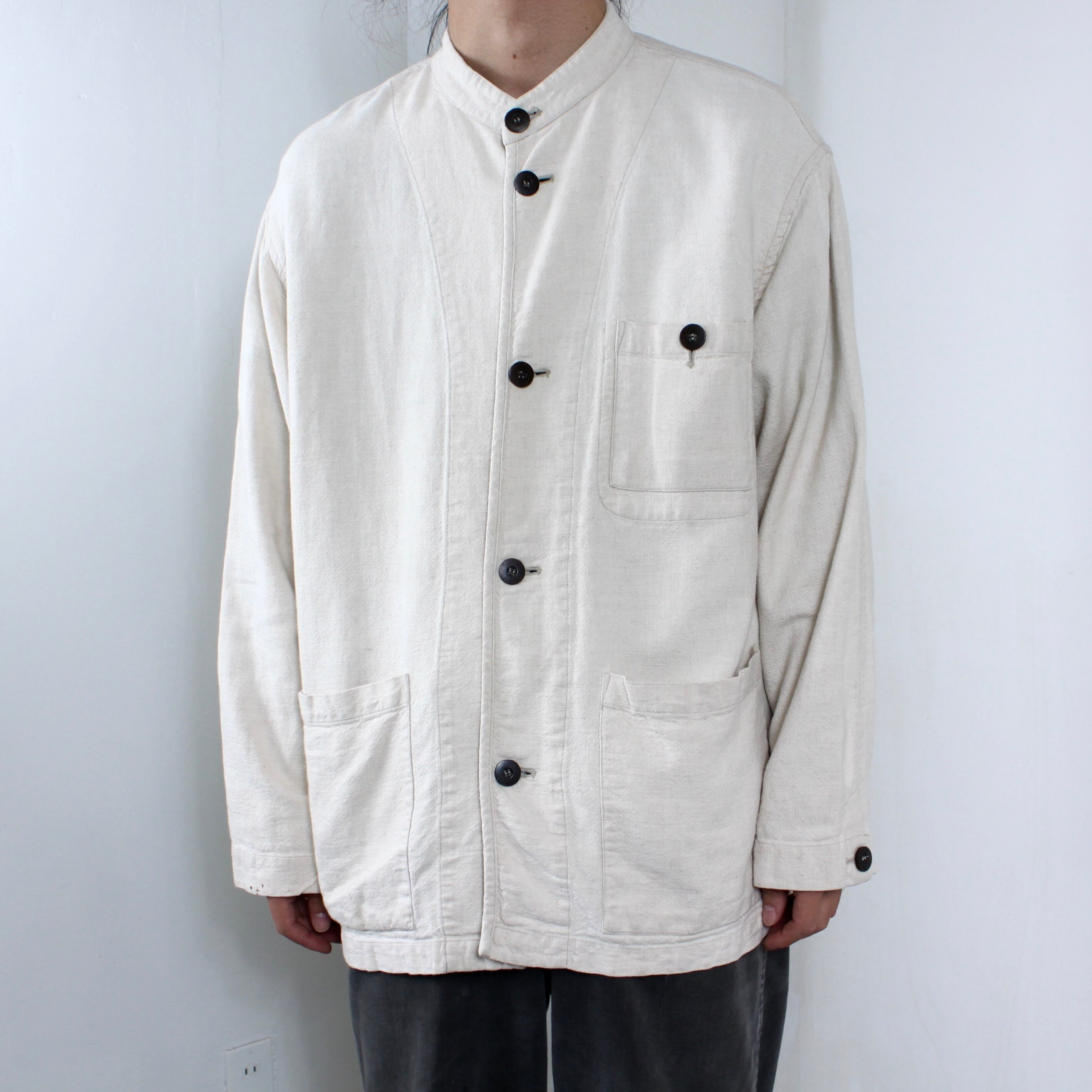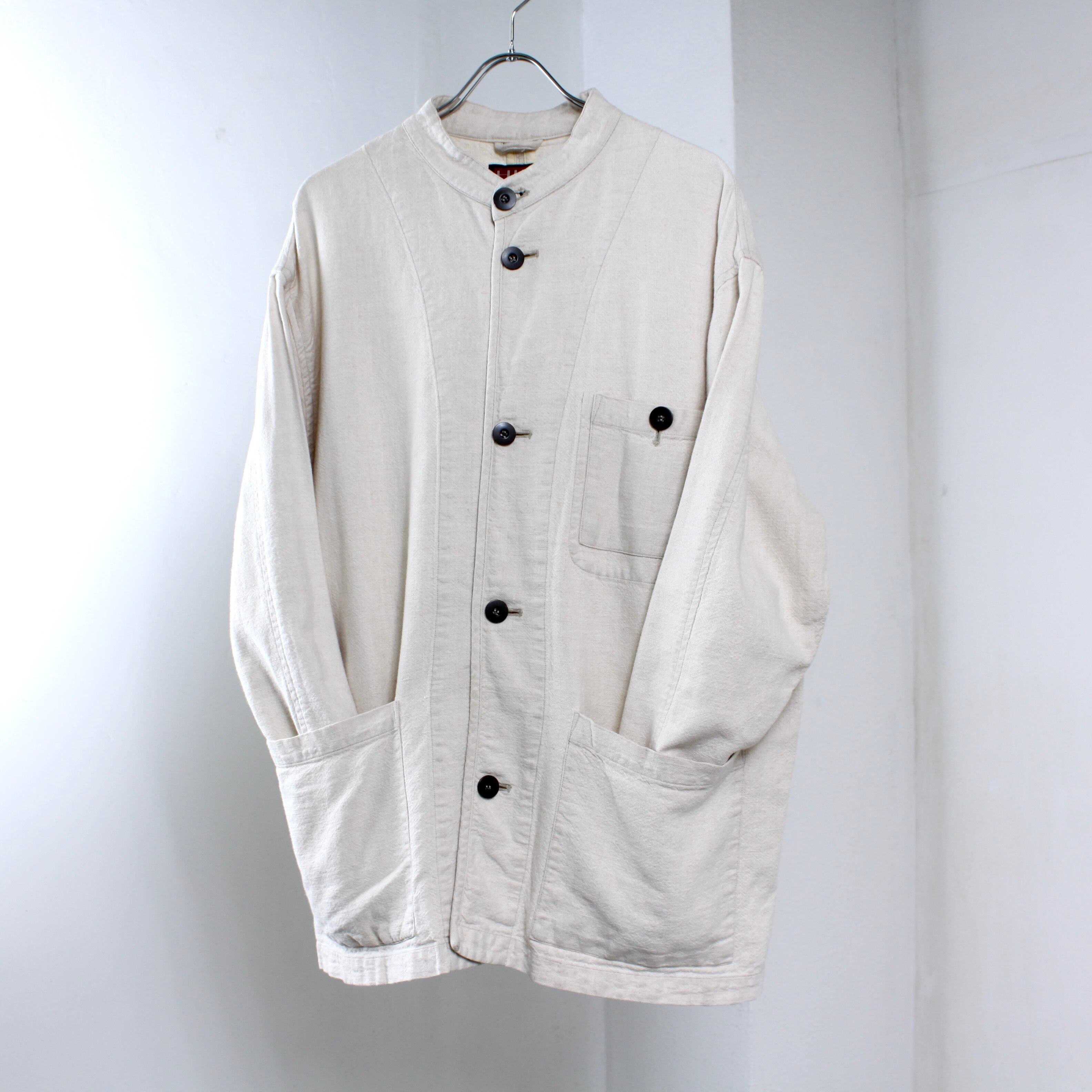 0279. 1990's linen/cotton standcollar chore jacket 90s 90年代 チョアジャケット カバーオール vintage ヴィンテージ us古着 古着