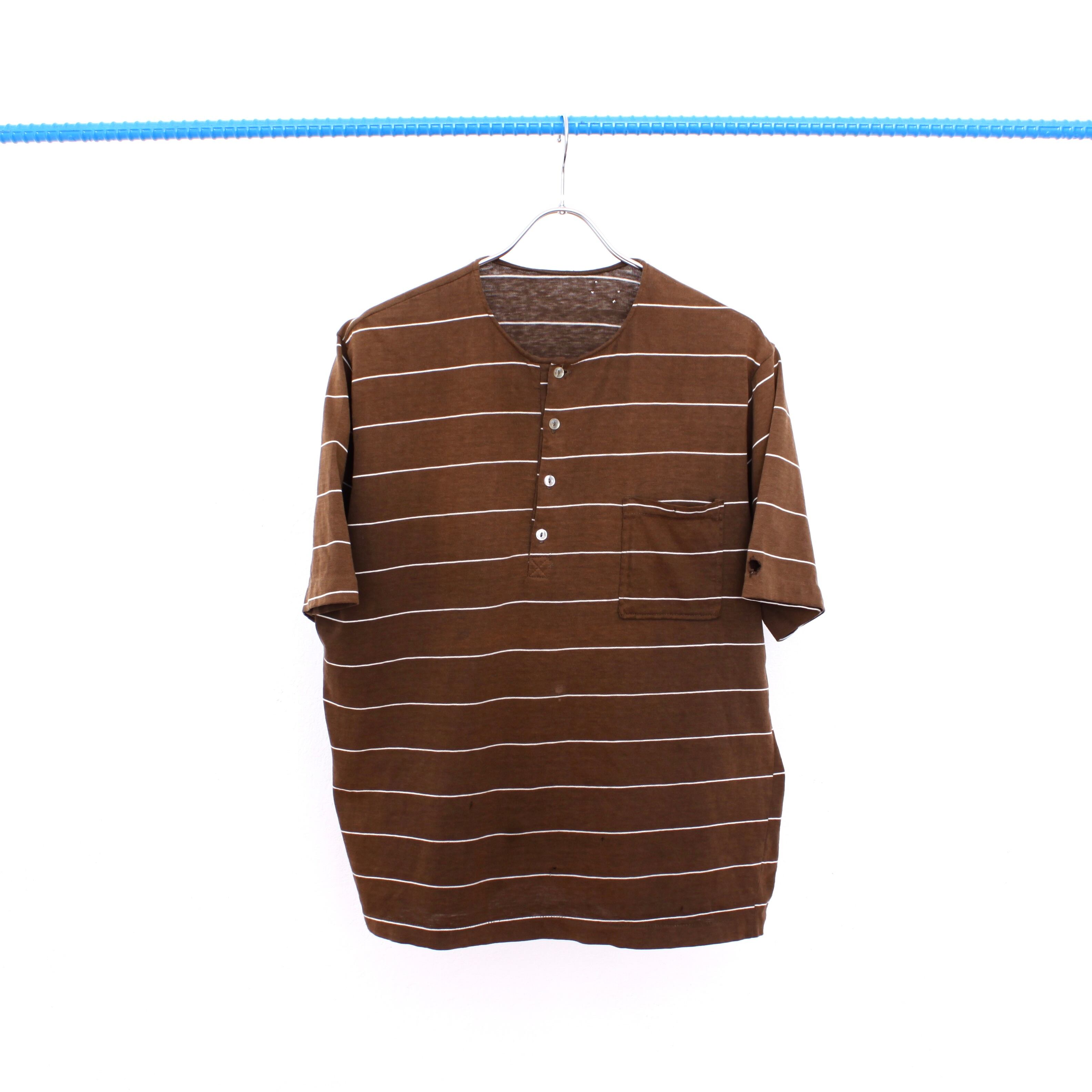 0178. 1960's henryneck tee ブラウン ボーダー ヘンリーネック Tシャツ 60s 60年代 vintage 古着