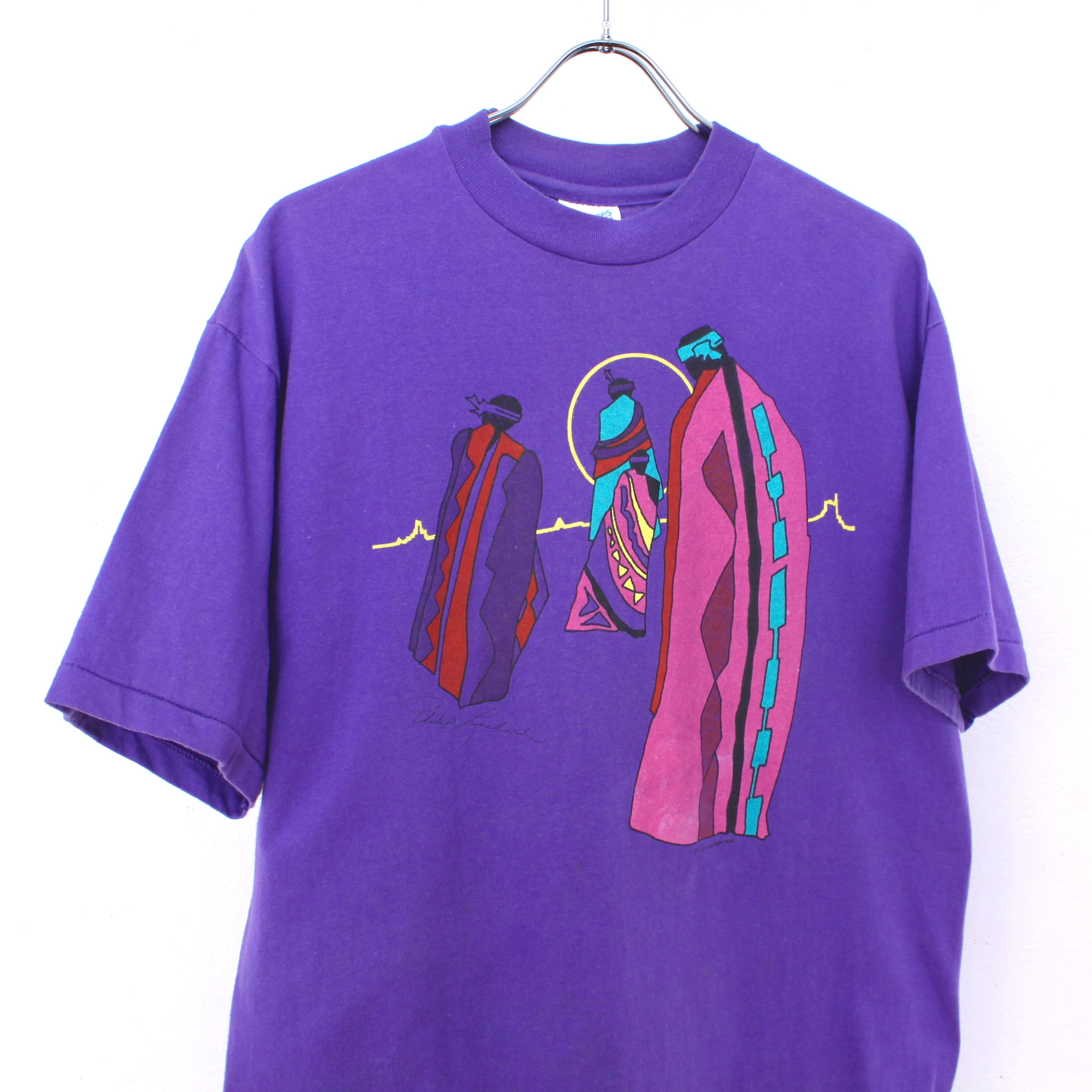 0177. 1990's native art tee パープル アート プリントTシャツ ネイティブ 90s 90年代 USA製 hanes vintage 古着
