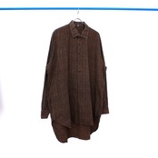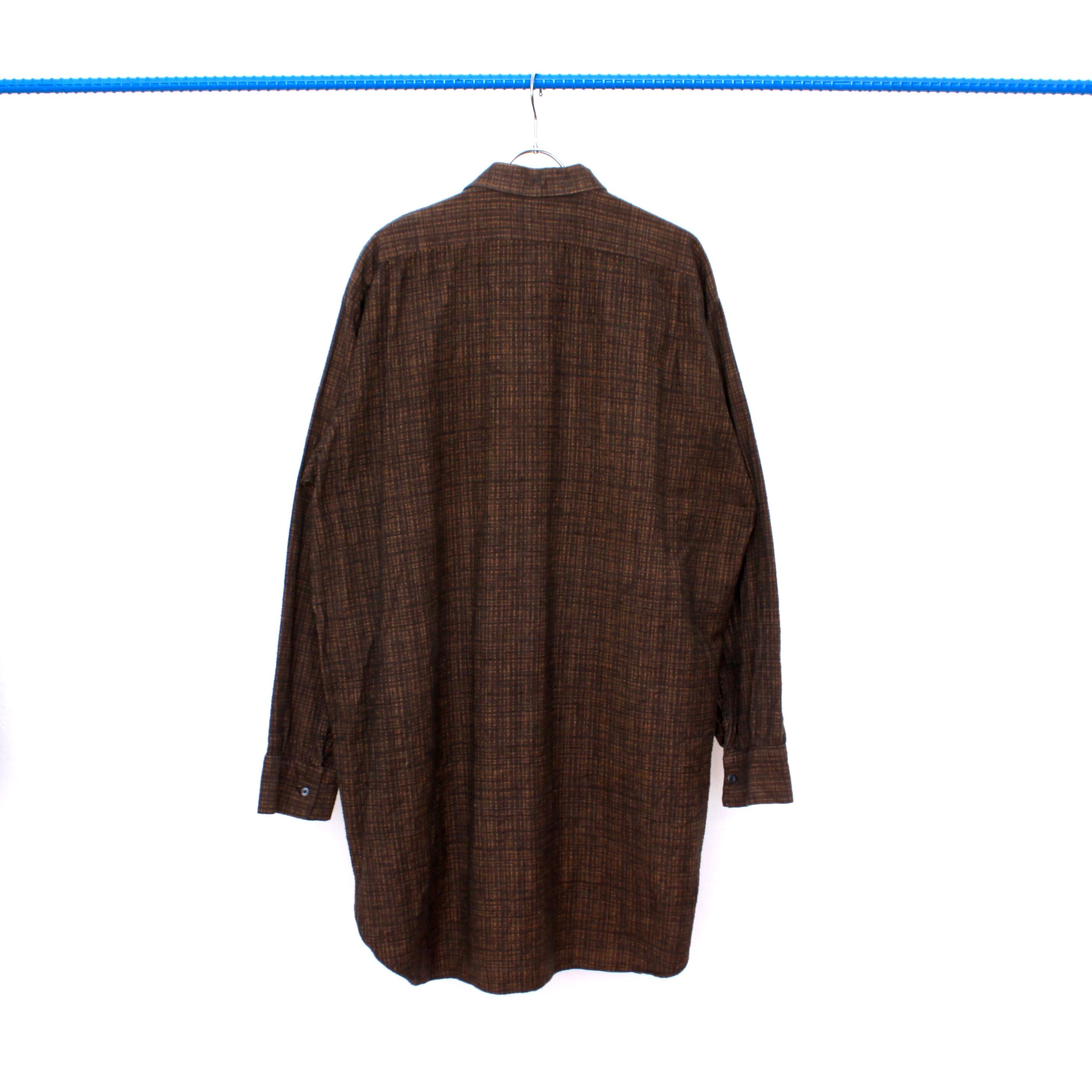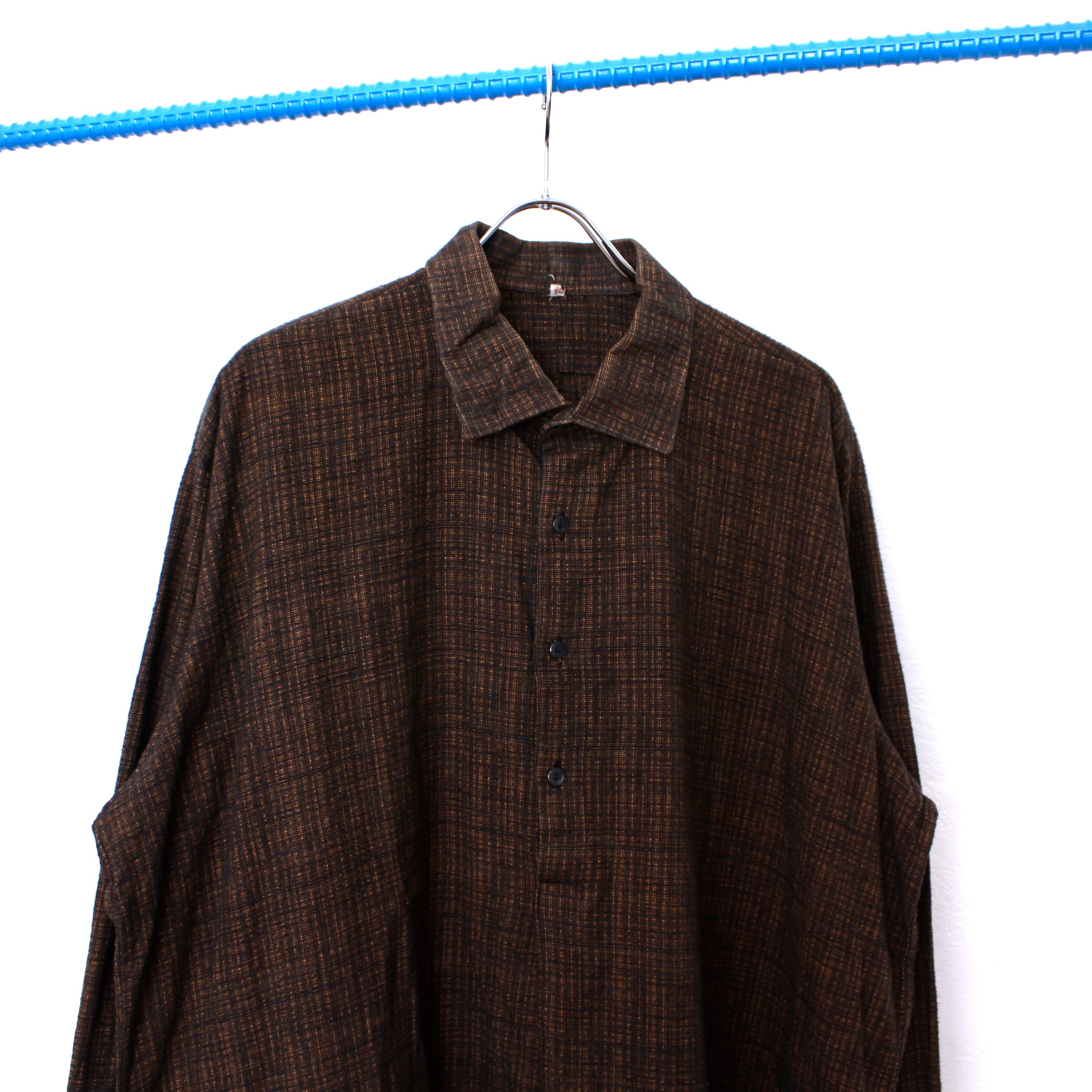 0265. euro vintage pullover shirt オレンジ ブラック ネップ プルオーバー グランパシャツ ユーロ古着