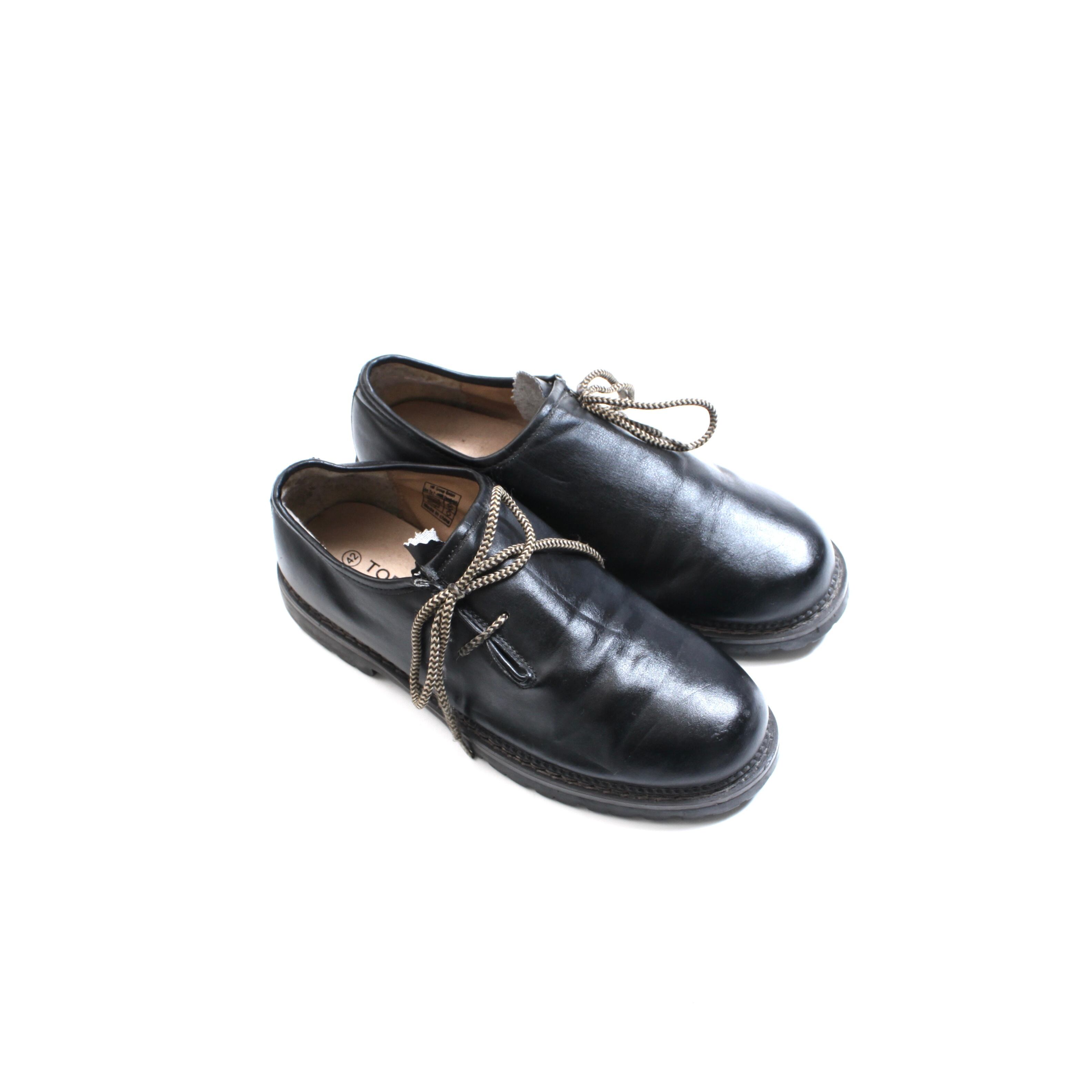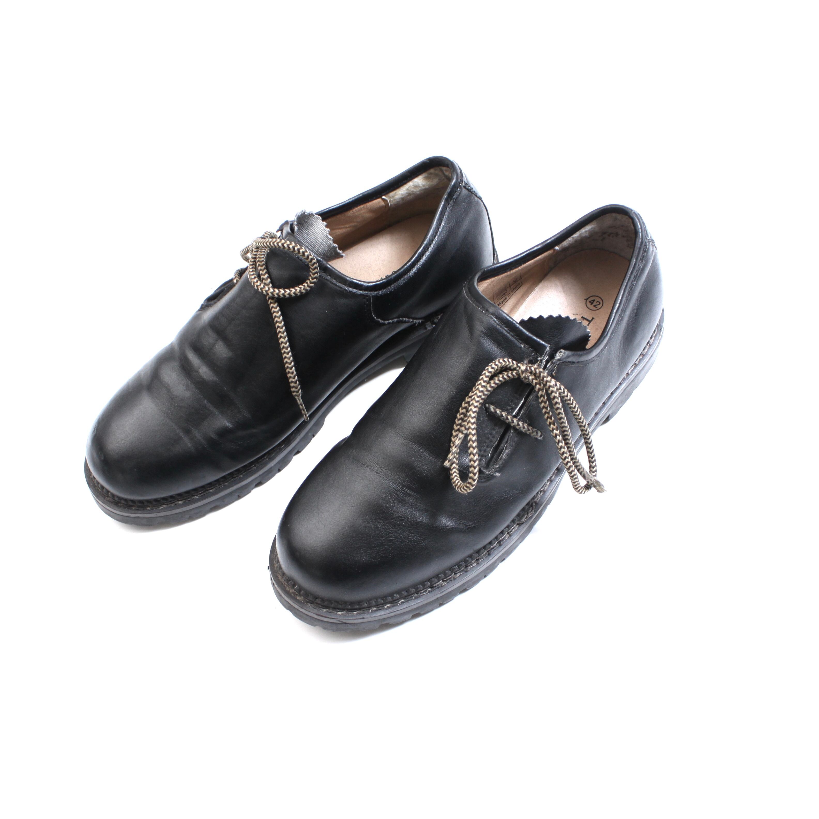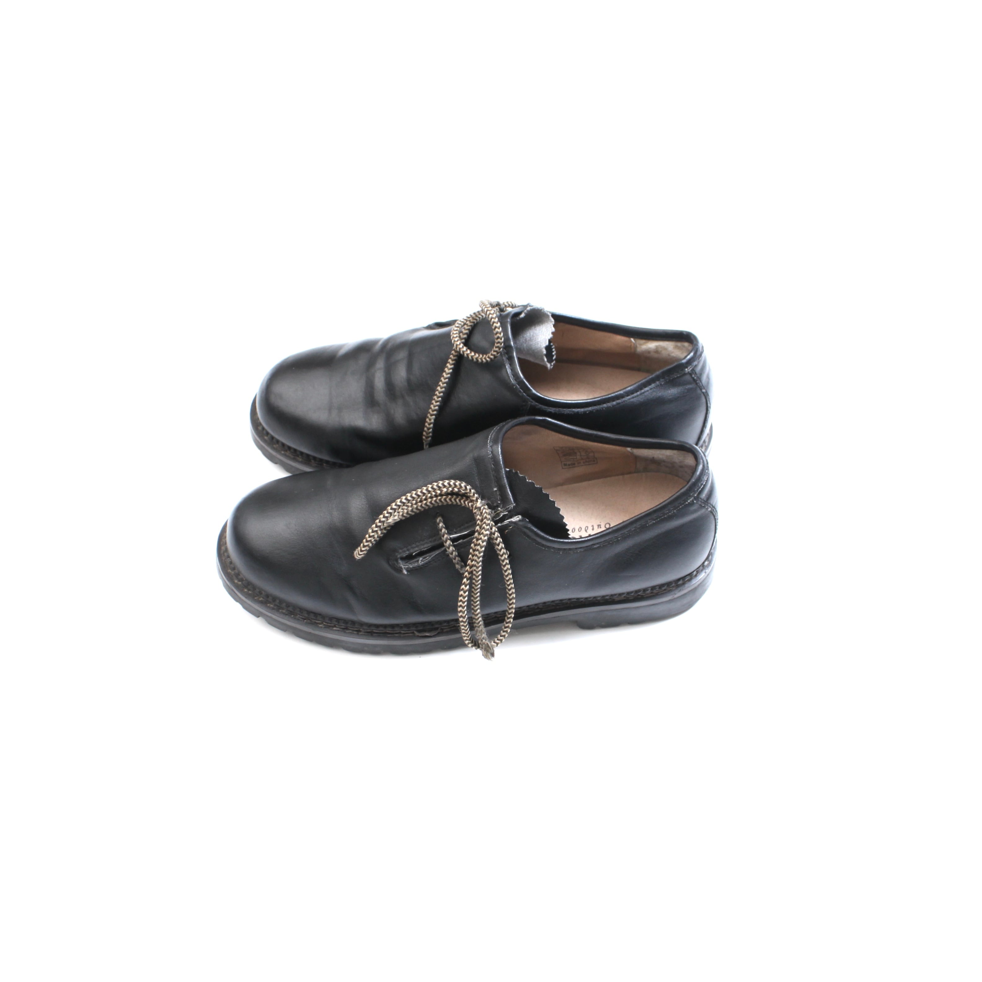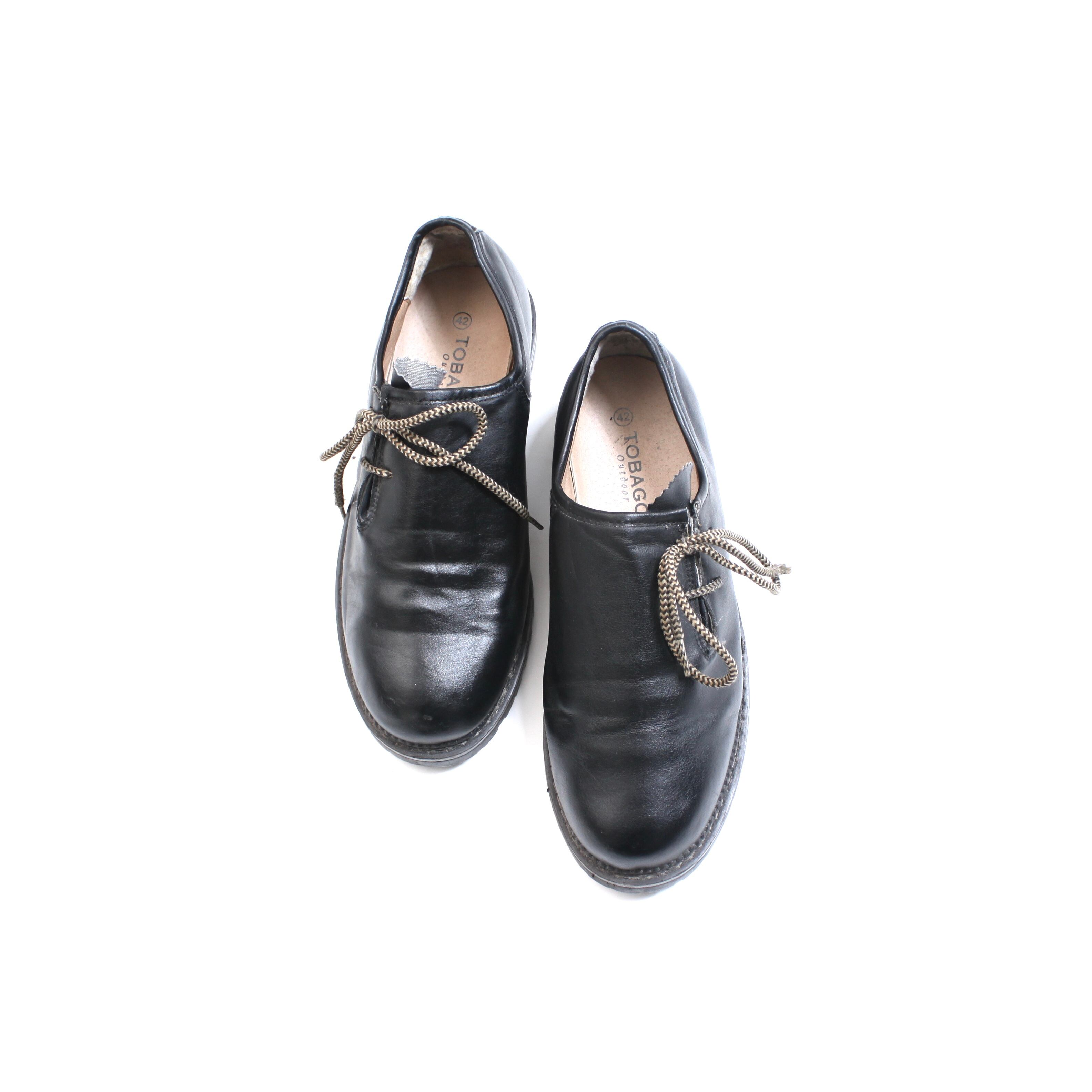 0216. Tyrolean shoes ブラック レザーシューズ チロリアン 革靴 26cm ユーロ古着