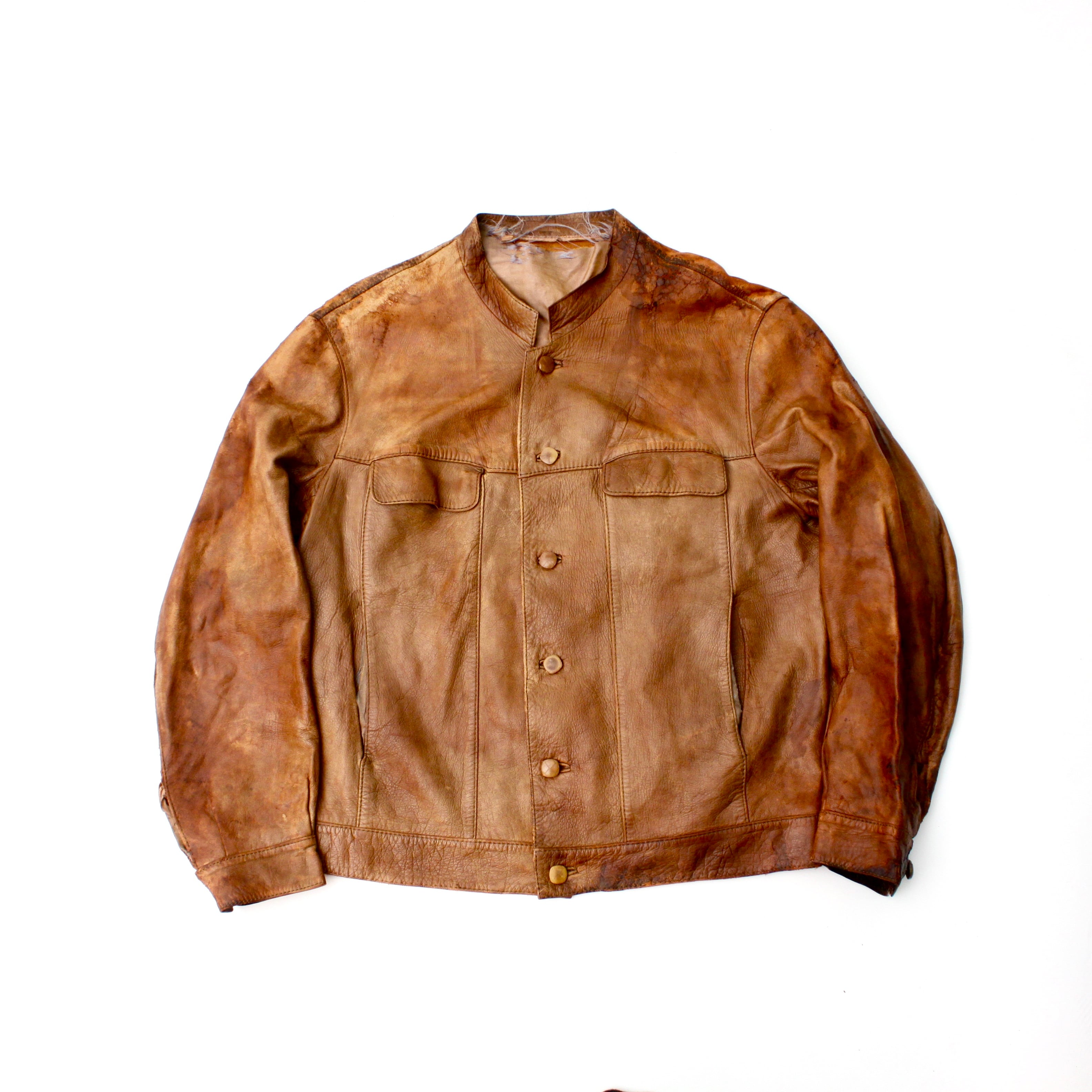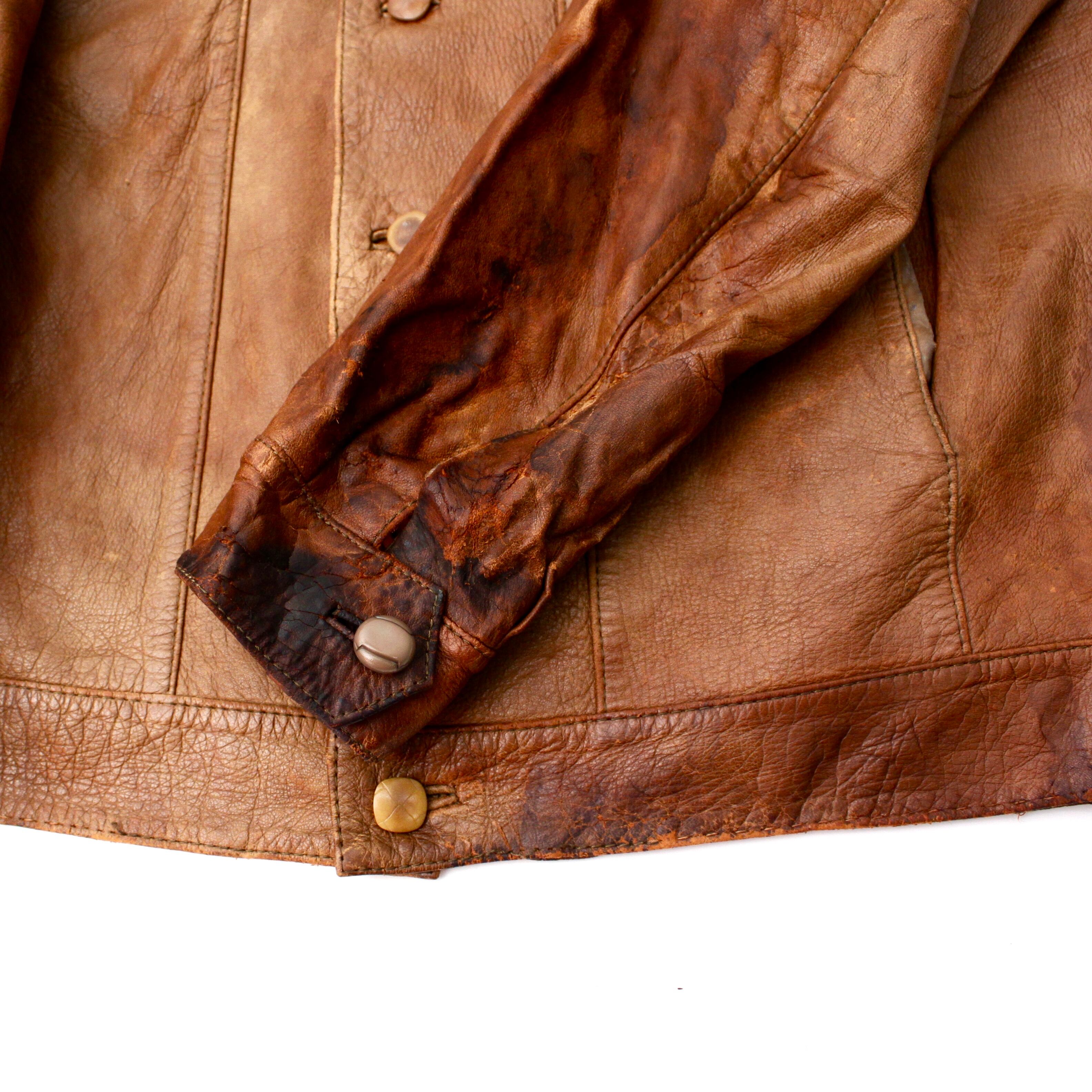0243. late 1960's moliner s.a. wornout leather jacket spain 60s 60年代 レザージャケット スペイン 襤褸 vintage ヴィンテージ ユーロ古着 古着