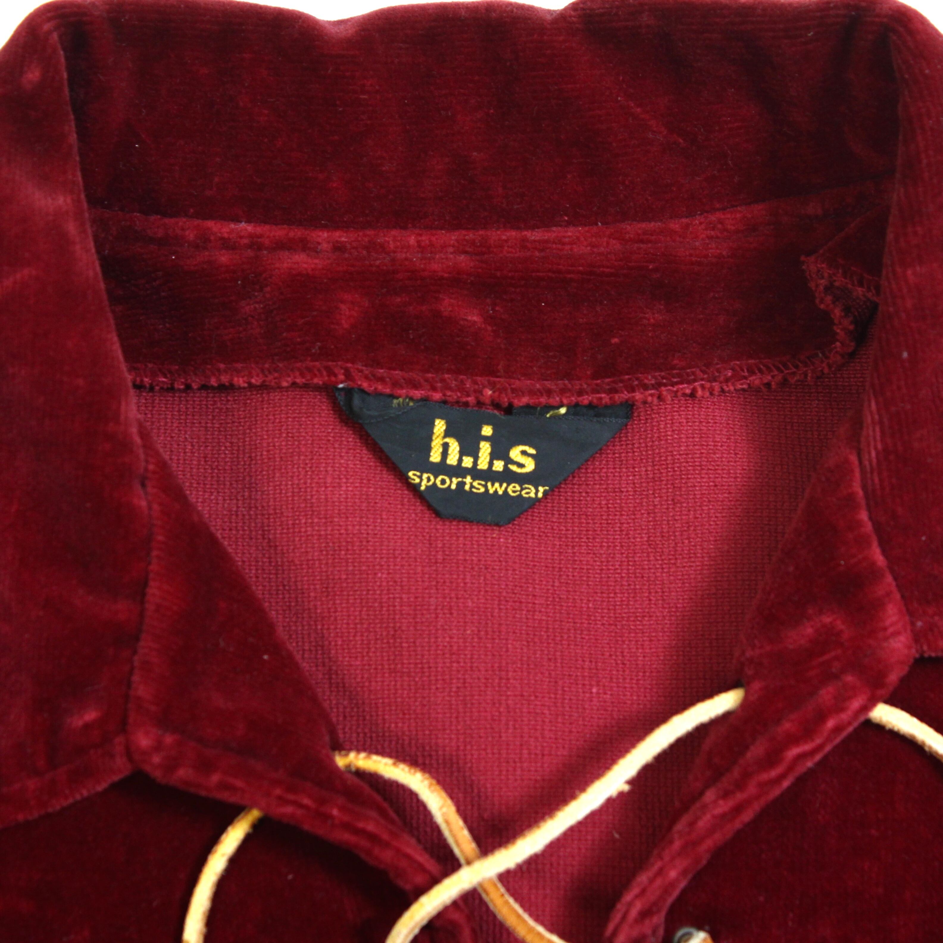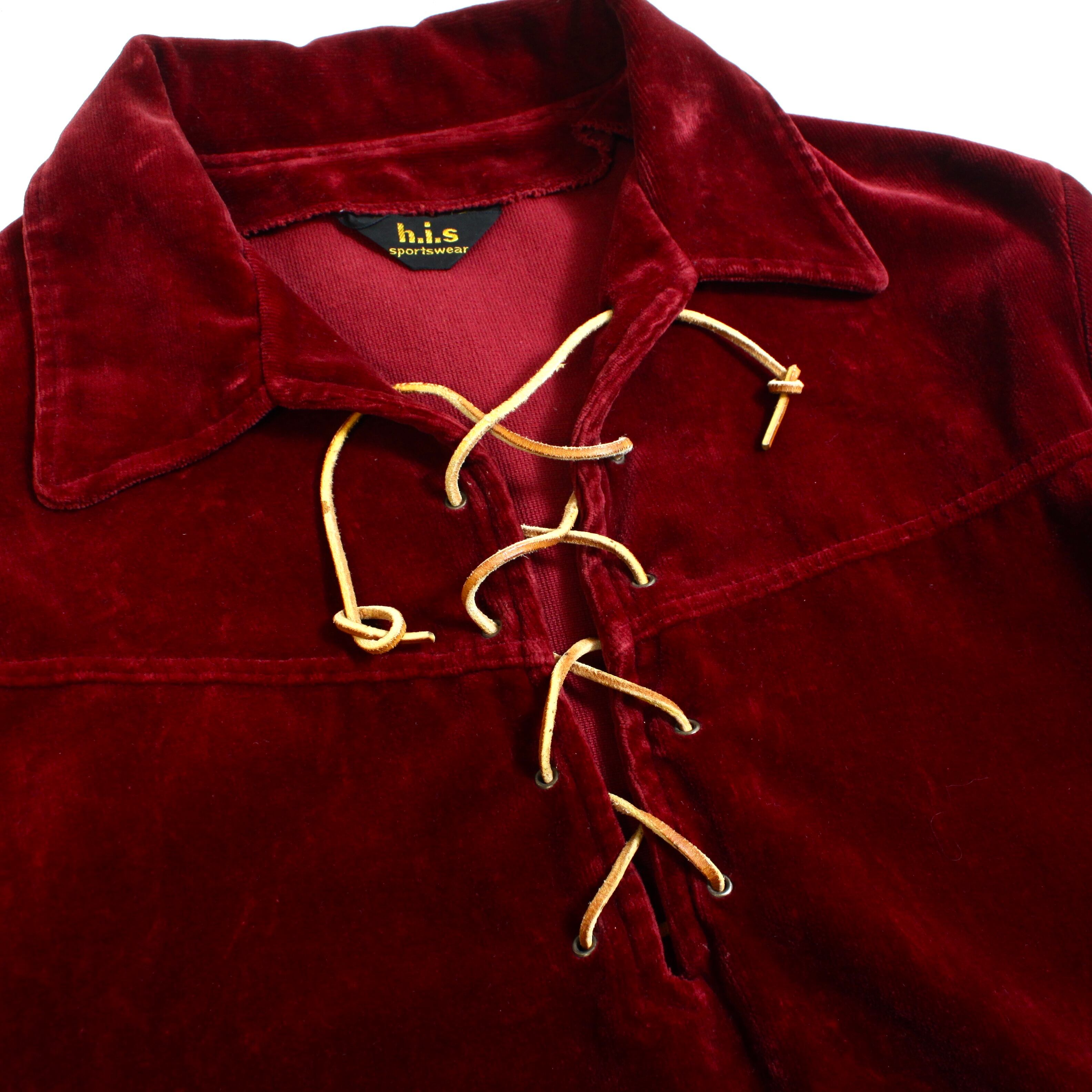 0257. 1960's h.i.s laceup shirt ボルドー ベロア プルオーバー レースアップシャツ 60s 60年代 vintage 古着