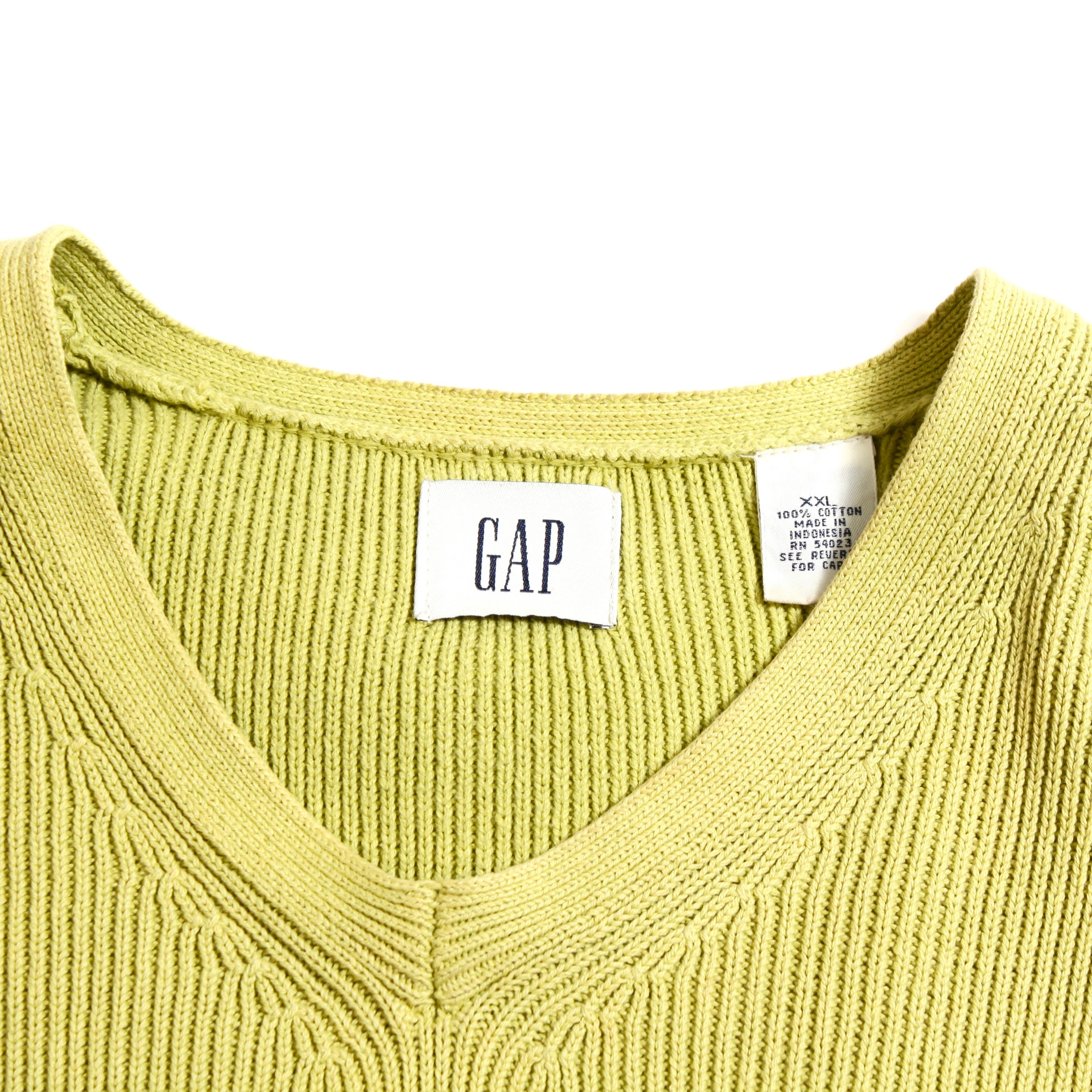 0271. 1990's gap 綺麗なミドリのコットンセーター 90s 90年代 ギャップ vネック コットンニット vintage ヴィンテージ us古着 古着