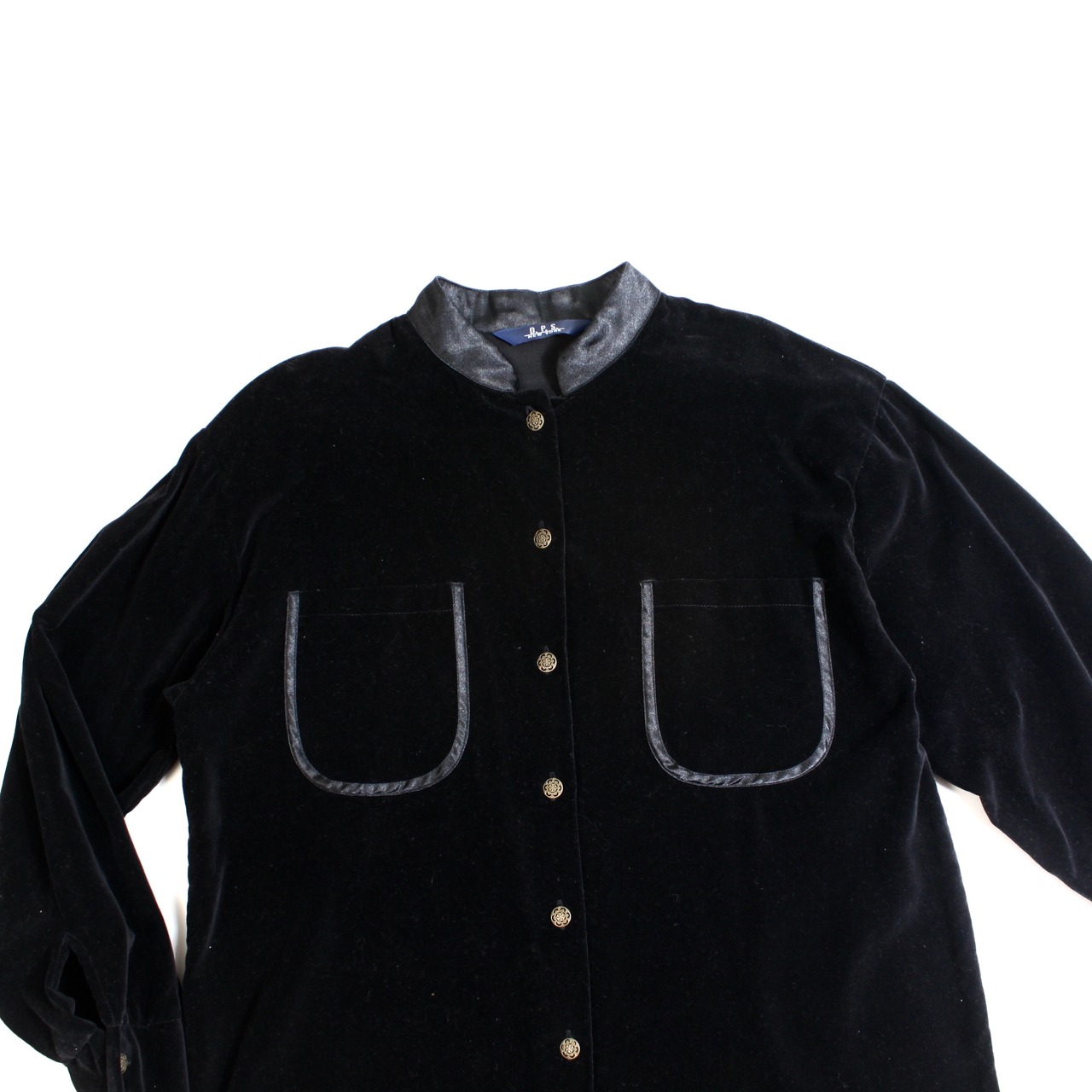 0296. 1990's black velvet mao collar shirt 90s 90年代 ベルベット ベロア マオカラー シャツ vintage ヴィンテージ us古着 古着