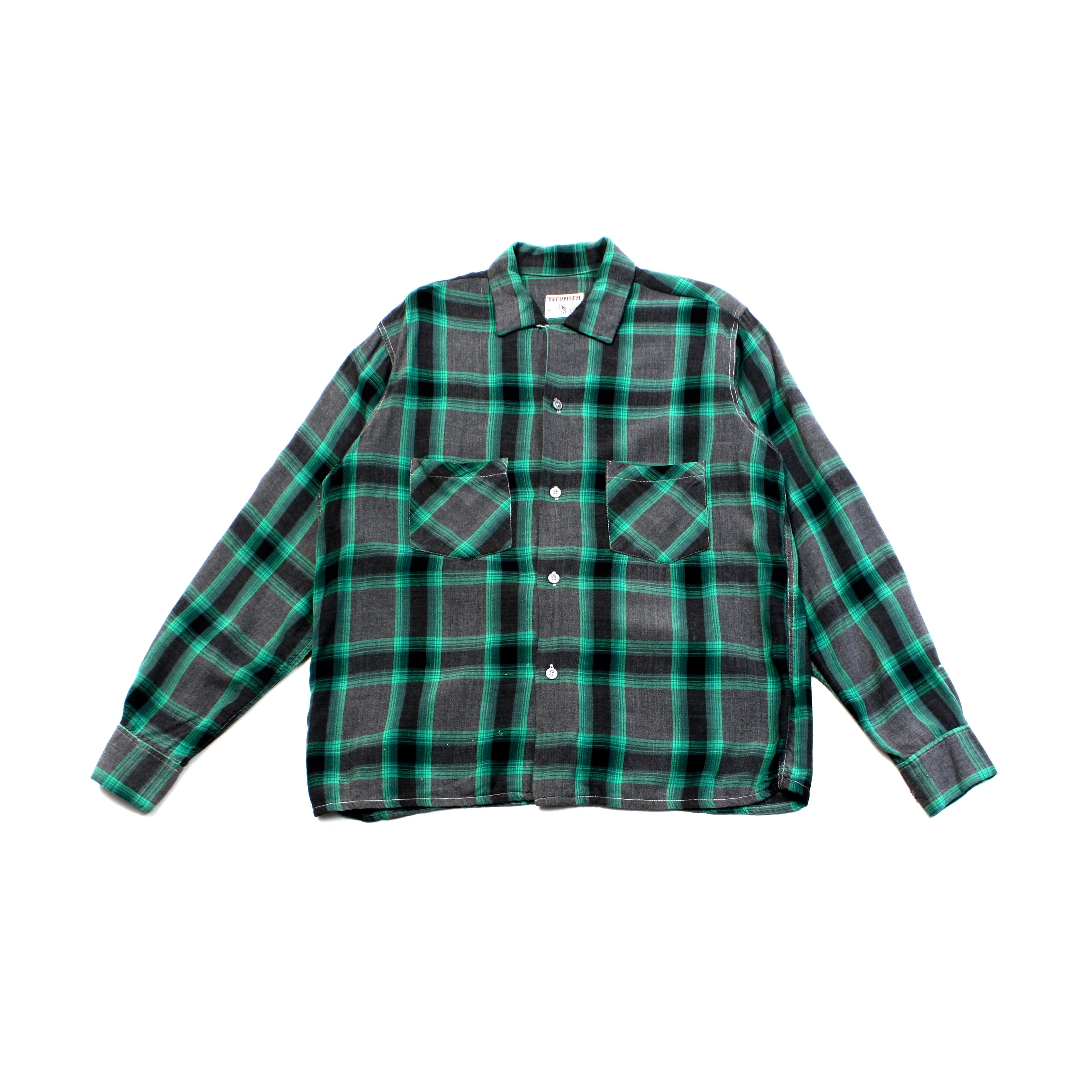 0352. ~1960's green check rayon box shirt グリーン グレー チェック レーヨンシャツ 開襟 60s 60年代 vintage 古着
