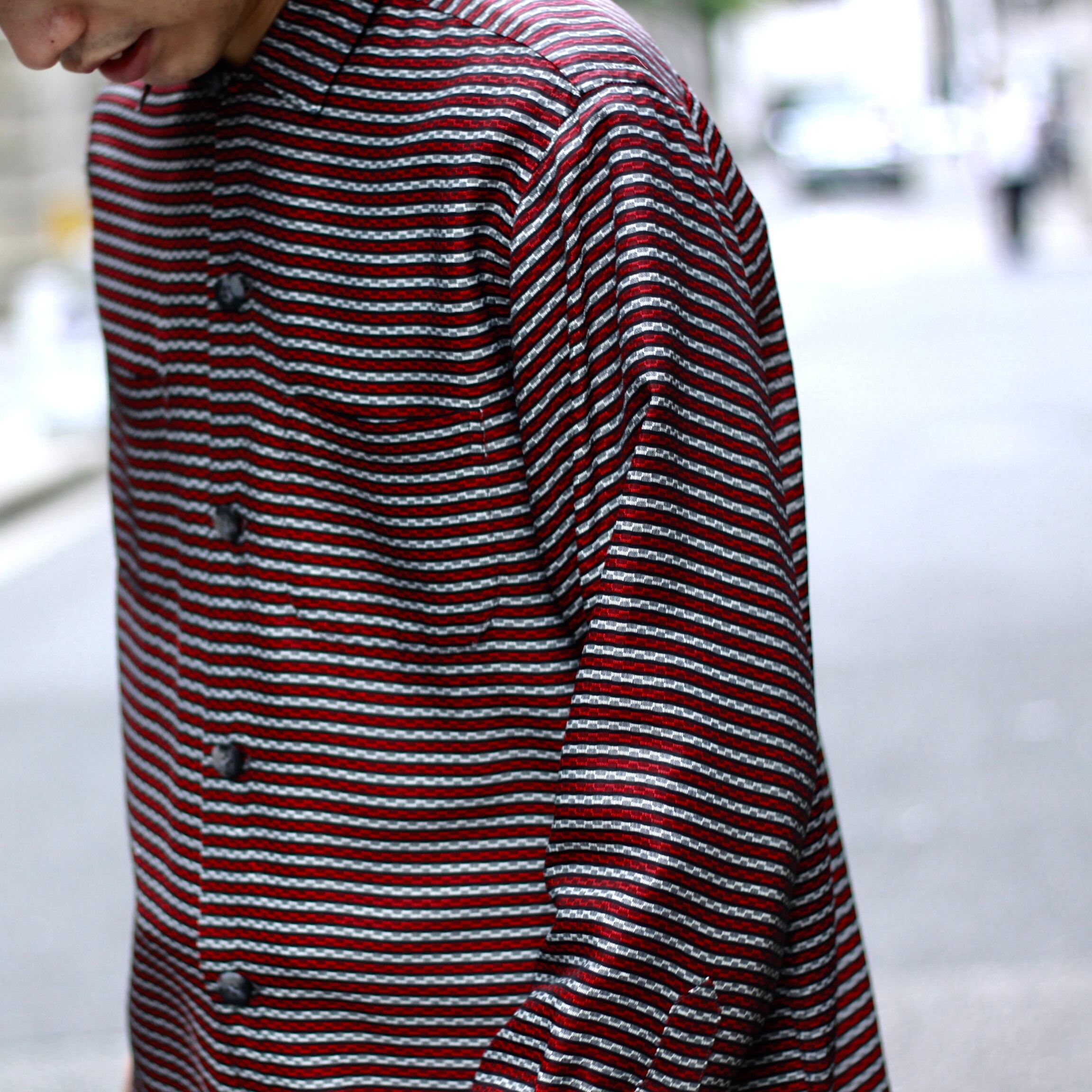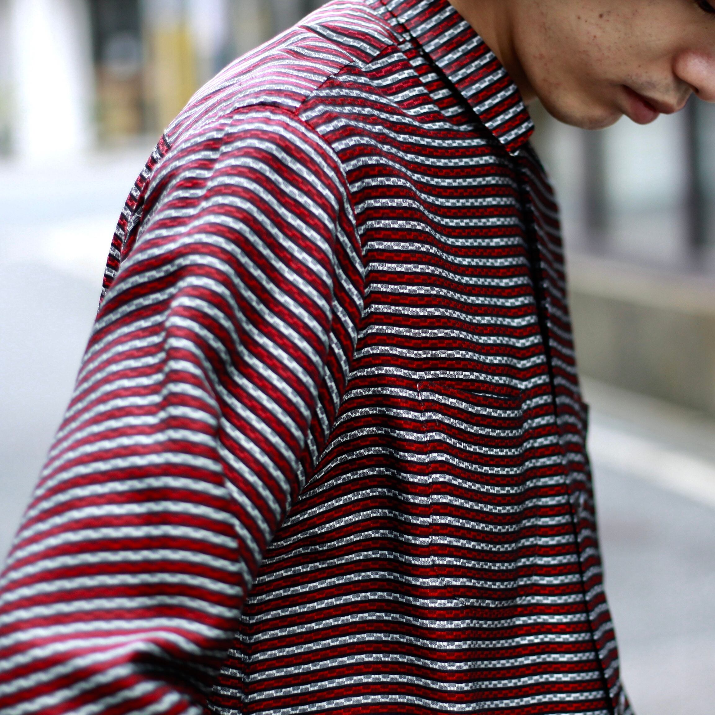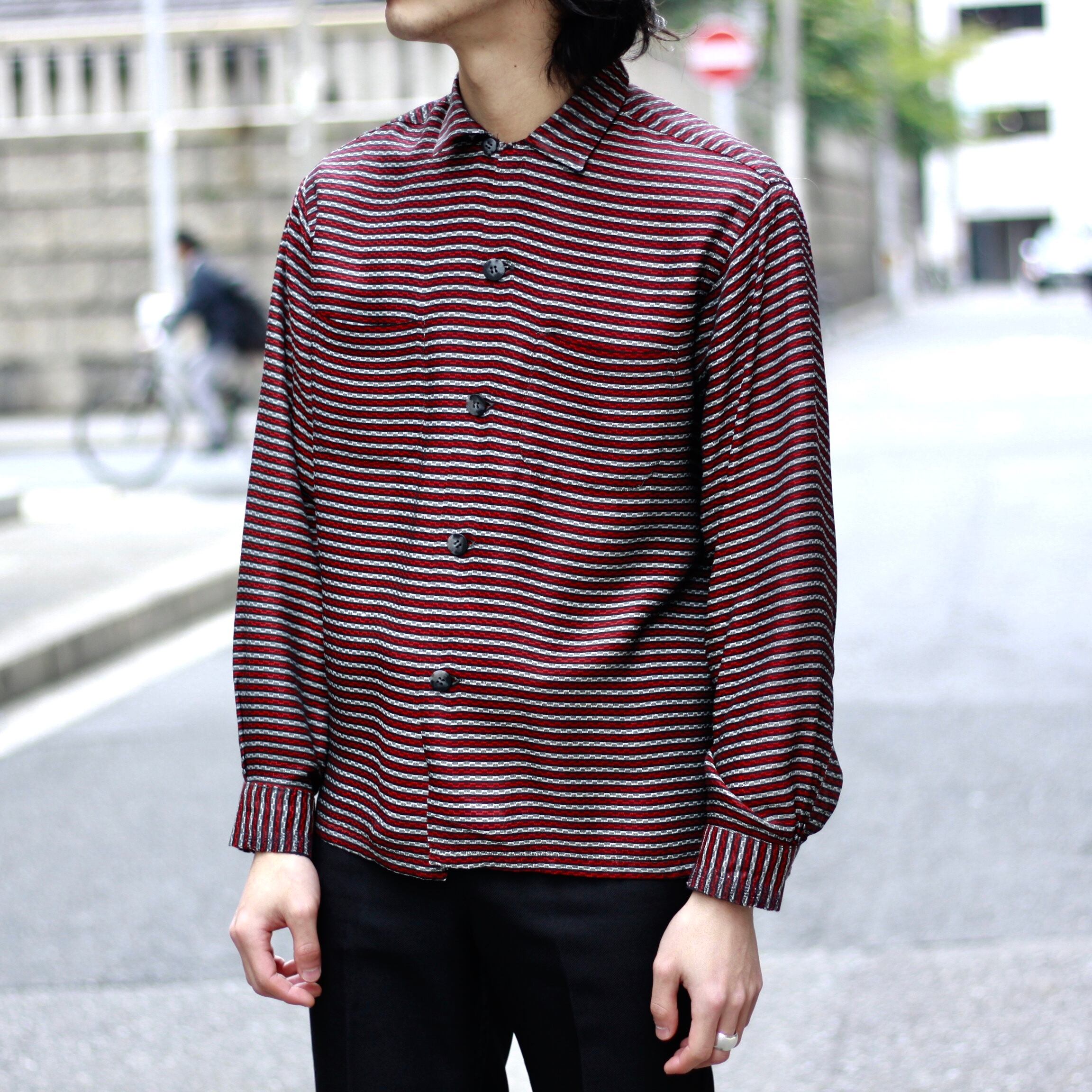 0354. 1960's jacquard rayon box shirt made in Canada レッド ブラック 織り柄 レーヨンシャツ 開襟 60s 60年代 vintage 古着