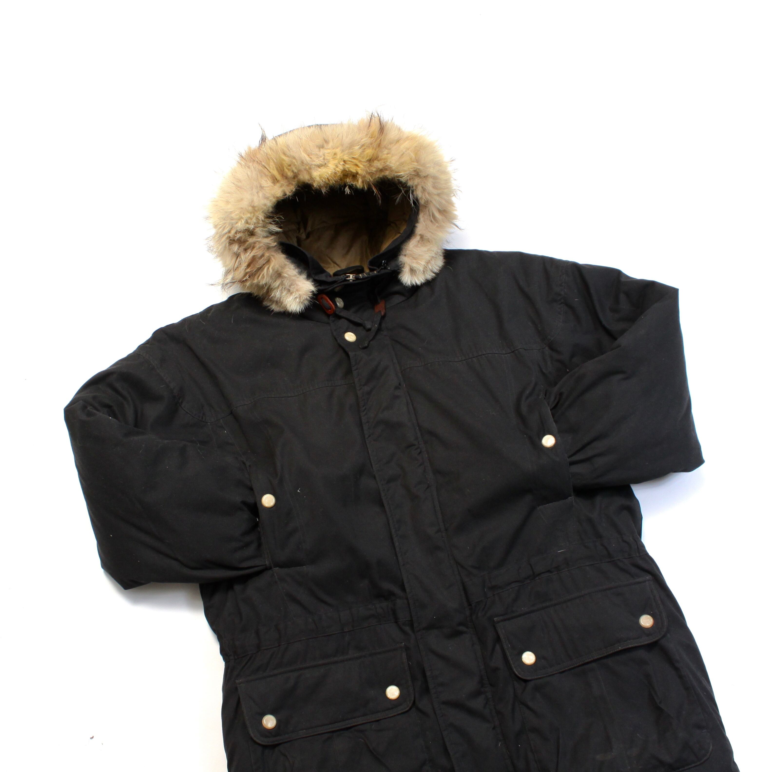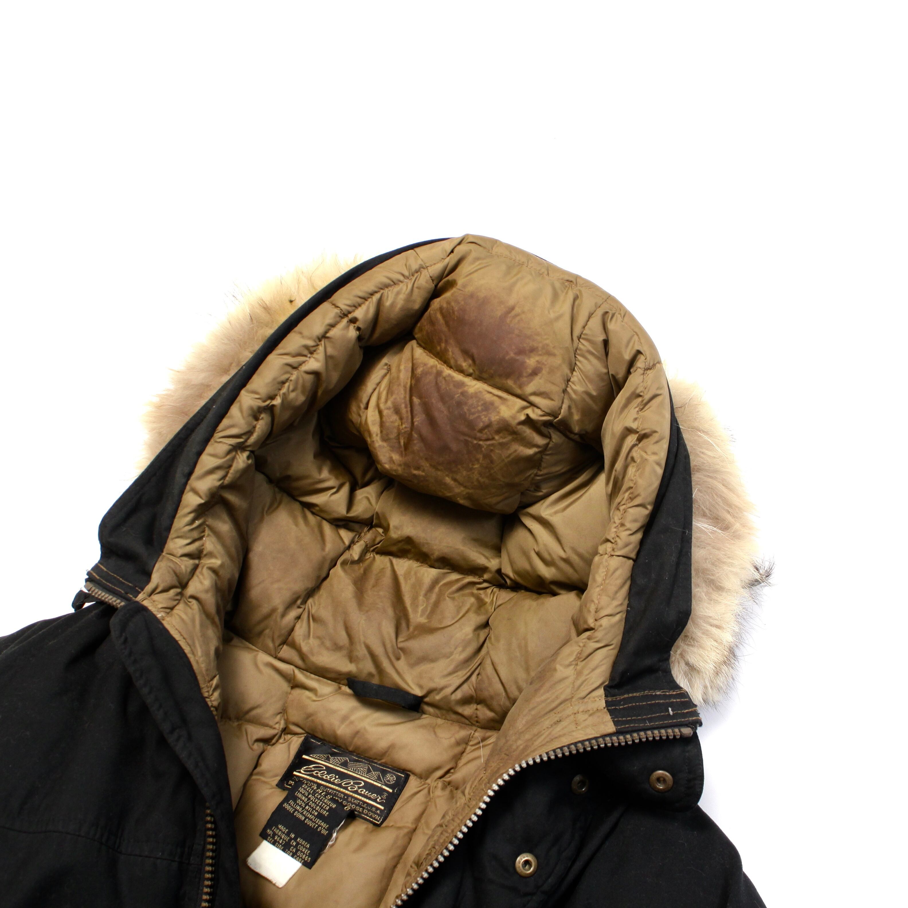 0380. 1980's eddie bauer down parka ブラック ダウンジャケット パーカ ファーフード脱着可 エディーバウアー 黒タグ 80s 80年代 vintage 古着